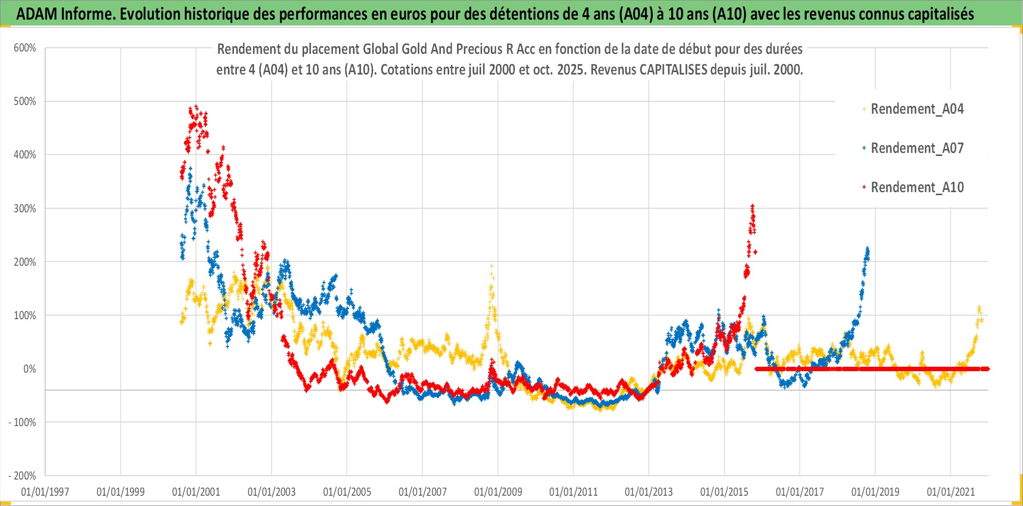 Site dédié aux investisseursPage dédiée sur site financeAnalyse des valorisations hebdomadaires du fonds Global Gold And Precious R Acc. Cet actif est cote en EUR. Les valorisations couvrent les semaines 2000W31 a 2025W44. Les revenus de cet actif financier sont pris en compte depuis la semaine 2000W31. La note globale ESG de cet actif est estimee a 3.0 (apres rebasage entre 0 et 20).