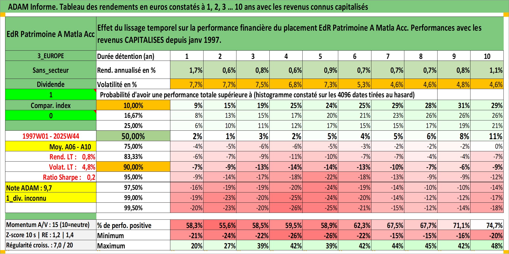Site dédié aux investisseursPage dédiée sur site financeAnalyse des valorisations hebdomadaires du fonds EdR Patrimoine A Matla Acc. Cet actif est cote en EUR. Les valorisations couvrent les semaines 1997W01 a 2025W44. Les revenus de cet actif financier sont pris en compte depuis la semaine 1997W01. La note ESG de cet actif n'est pas connue.