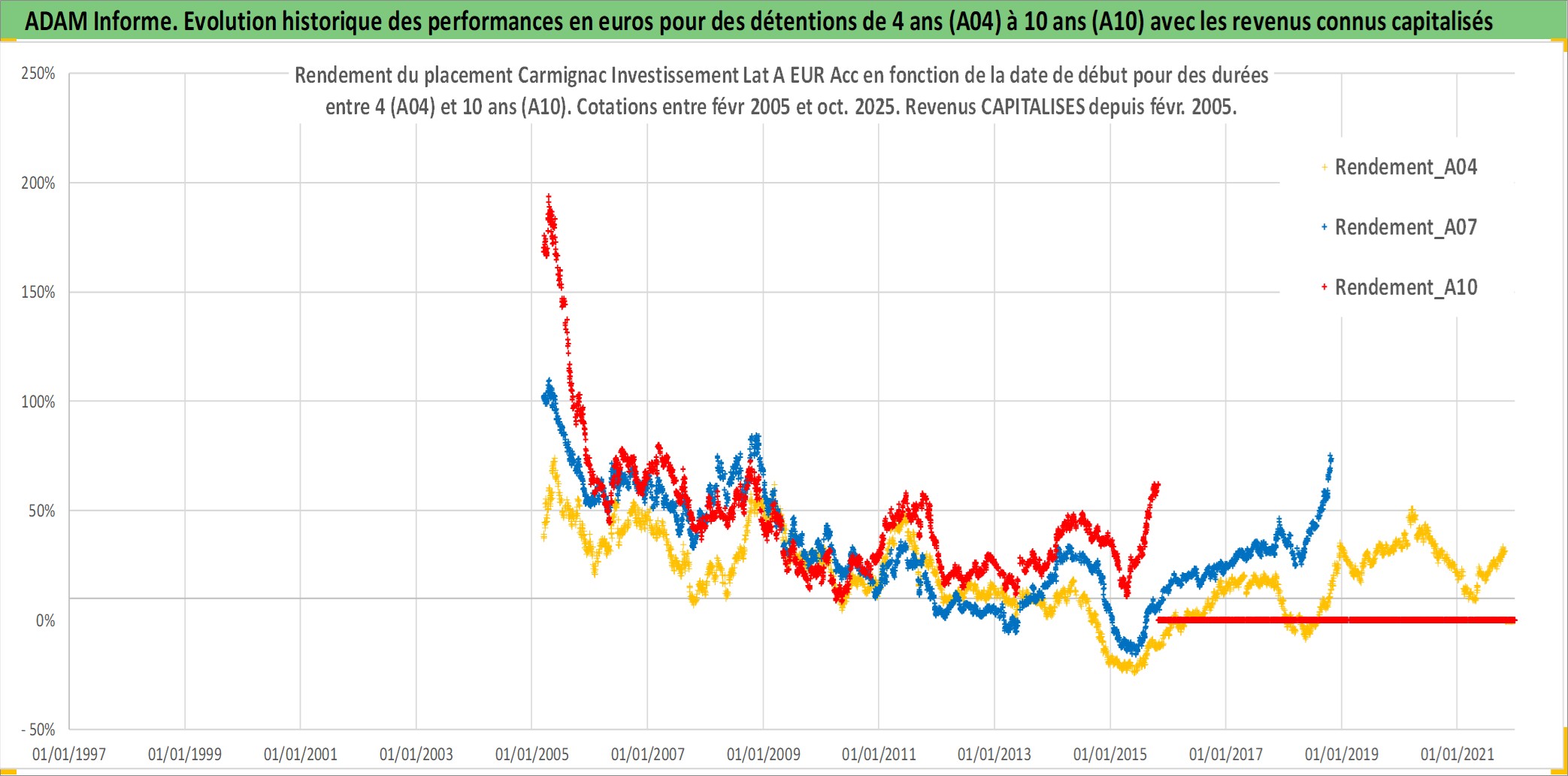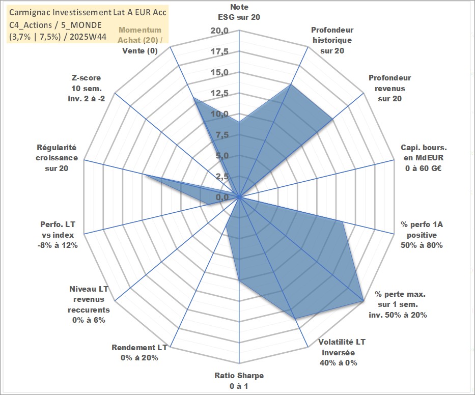 Site dédié aux investisseursPage dédiée sur site financeAnalyse des valorisations hebdomadaires du fonds Carmignac Investissement Lat A EUR Acc. Cet actif est cote en EUR. Les valorisations couvrent les semaines 2005W09 a 2025W44. Les revenus de cet actif financier sont pris en compte depuis la semaine 2005W09. La note globale ESG de cet actif est estimee a 9.0 (apres rebasage entre 0 et 20).