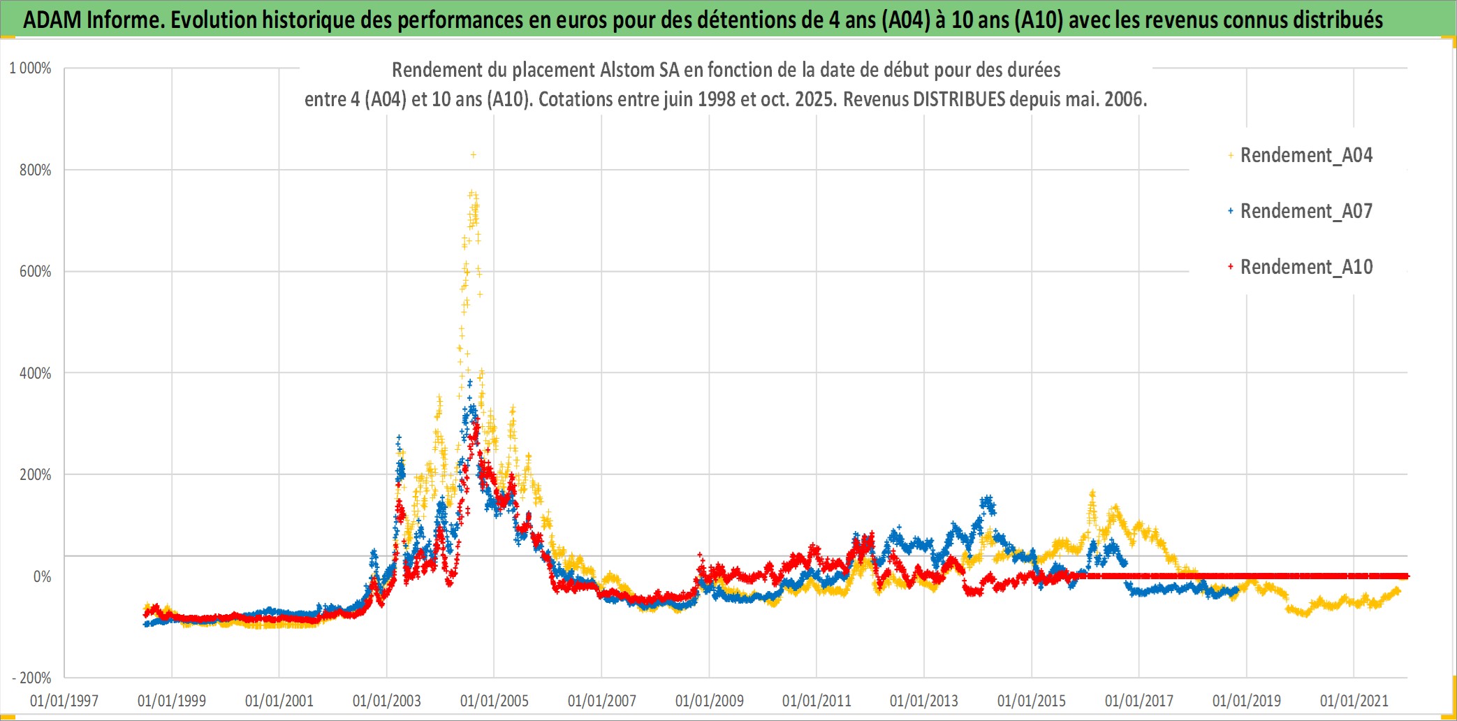 Site dédié aux investisseursPage dédiée sur site financeAnalyse des valorisations hebdomadaires de l'action Alstom SA. Cet actif est cote en EUR. Les valorisations couvrent les semaines 1998W26 a 2025W44. Les revenus de cet actif financier sont pris en compte depuis la semaine 2006W20. La note globale ESG de cet actif est estimee a 11.0 (apres rebasage entre 0 et 20).