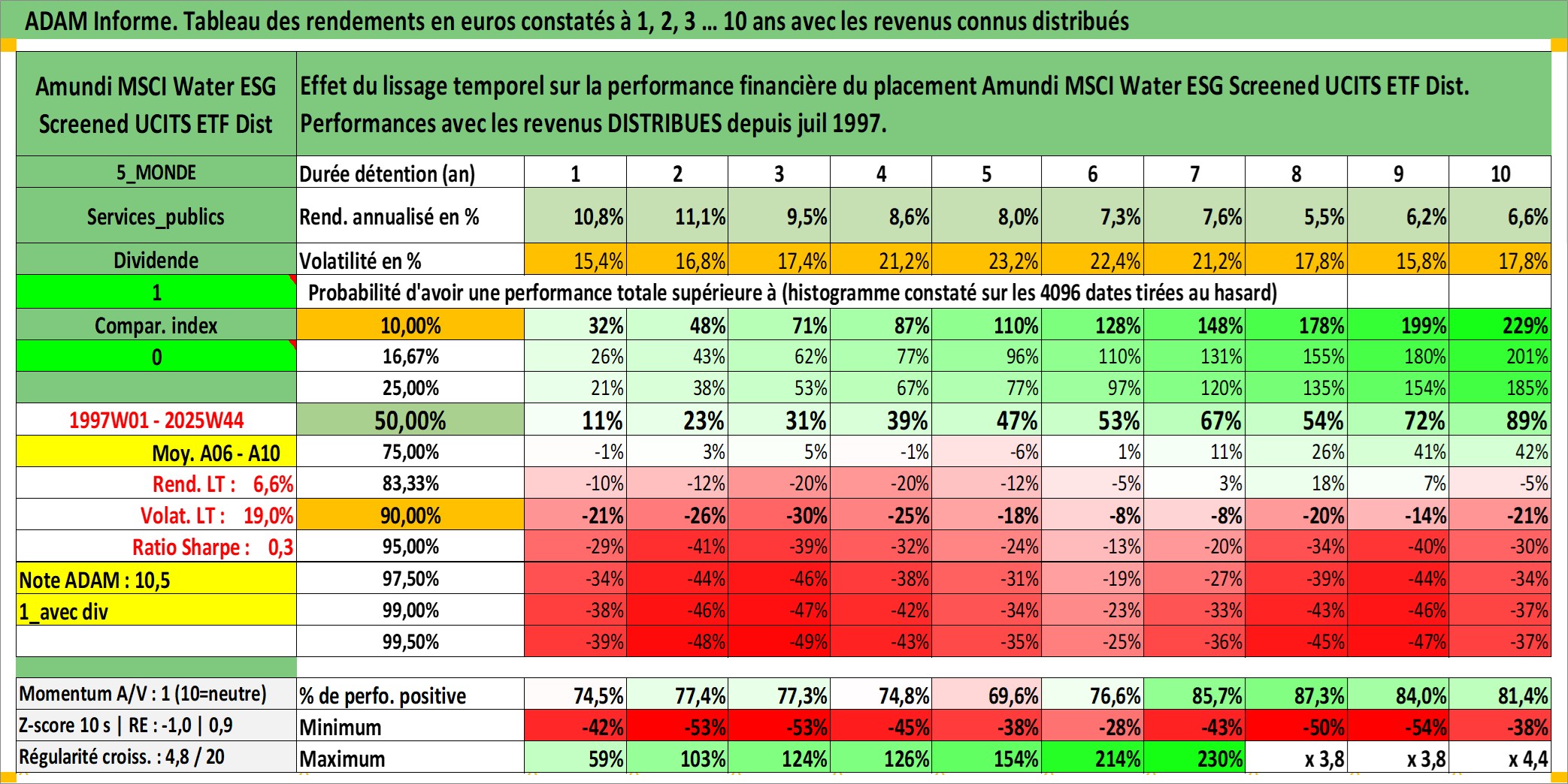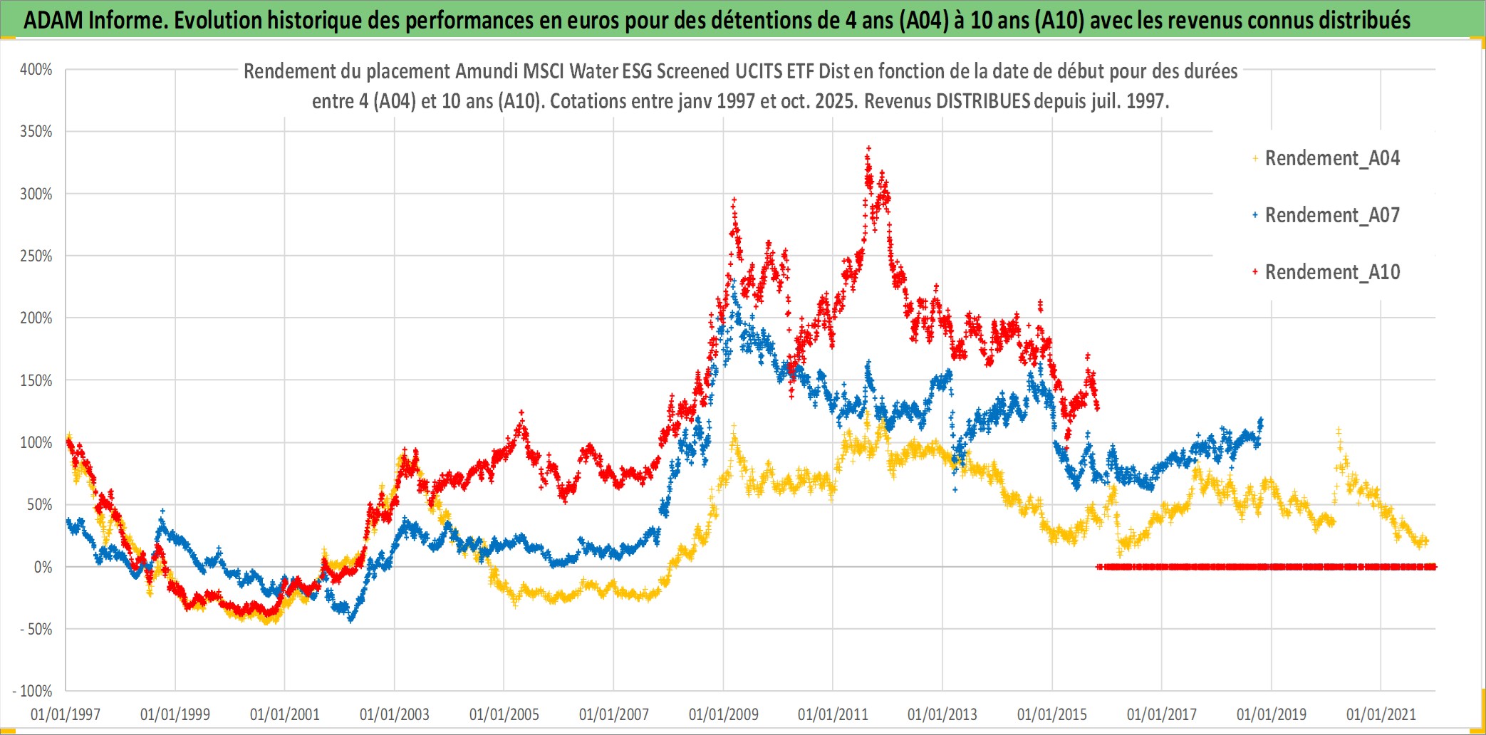 Site dédié aux investisseursPage dédiée sur site financeAnalyse des valorisations hebdomadaires du fonds Amundi MSCI Water ESG Screened UCITS ETF Dist. Cet actif est cote en EUR. Les valorisations couvrent les semaines 1997W01 a 2025W44. Les revenus de cet actif financier sont pris en compte depuis la semaine 1997W28. La note ESG de cet actif n'est pas connue.