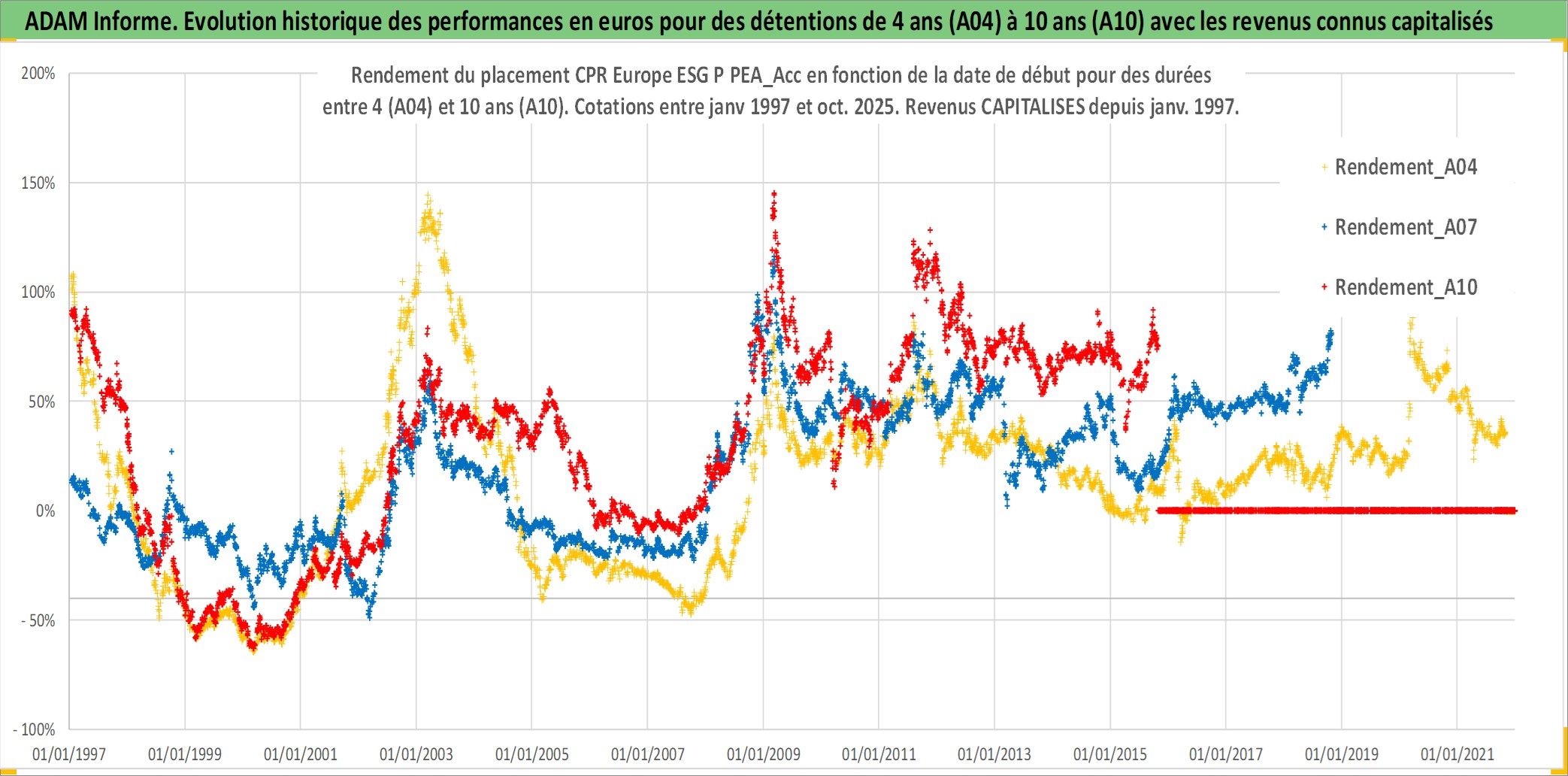 Site dédié aux investisseursPage dédiée sur site financeAnalyse des valorisations hebdomadaires du fonds CPR Europe ESG P PEA_Acc. Cet actif est cote en EUR. Les valorisations couvrent les semaines 1997W01 a 2025W44. Les revenus de cet actif financier sont pris en compte depuis la semaine 1997W01. La note ESG de cet actif n'est pas connue.