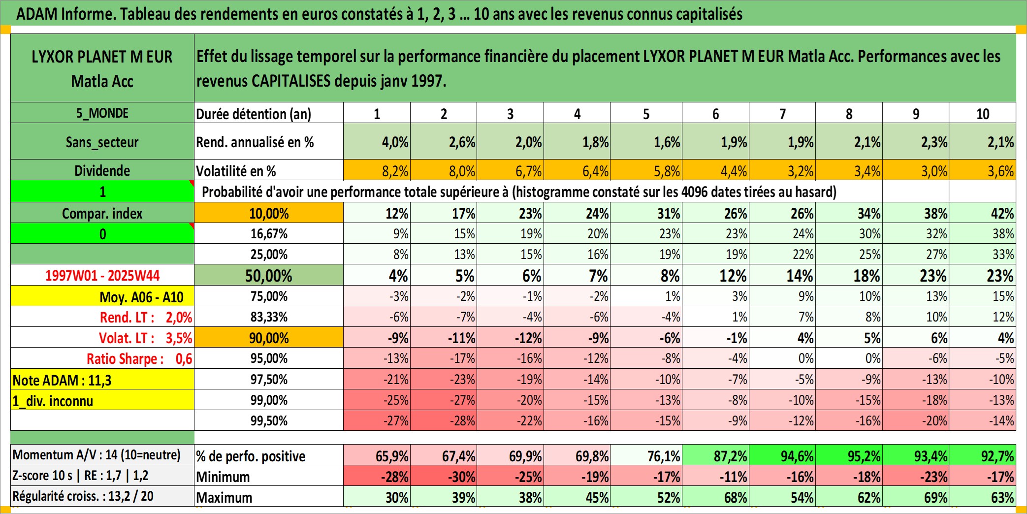 Site dédié aux investisseursPage dédiée sur site financeAnalyse des valorisations hebdomadaires du fonds LYXOR PLANET M EUR Matla Acc. Cet actif est cote en EUR. Les valorisations couvrent les semaines 1997W01 a 2025W44. Les revenus de cet actif financier sont pris en compte depuis la semaine 1997W01. La note ESG de cet actif n'est pas connue.