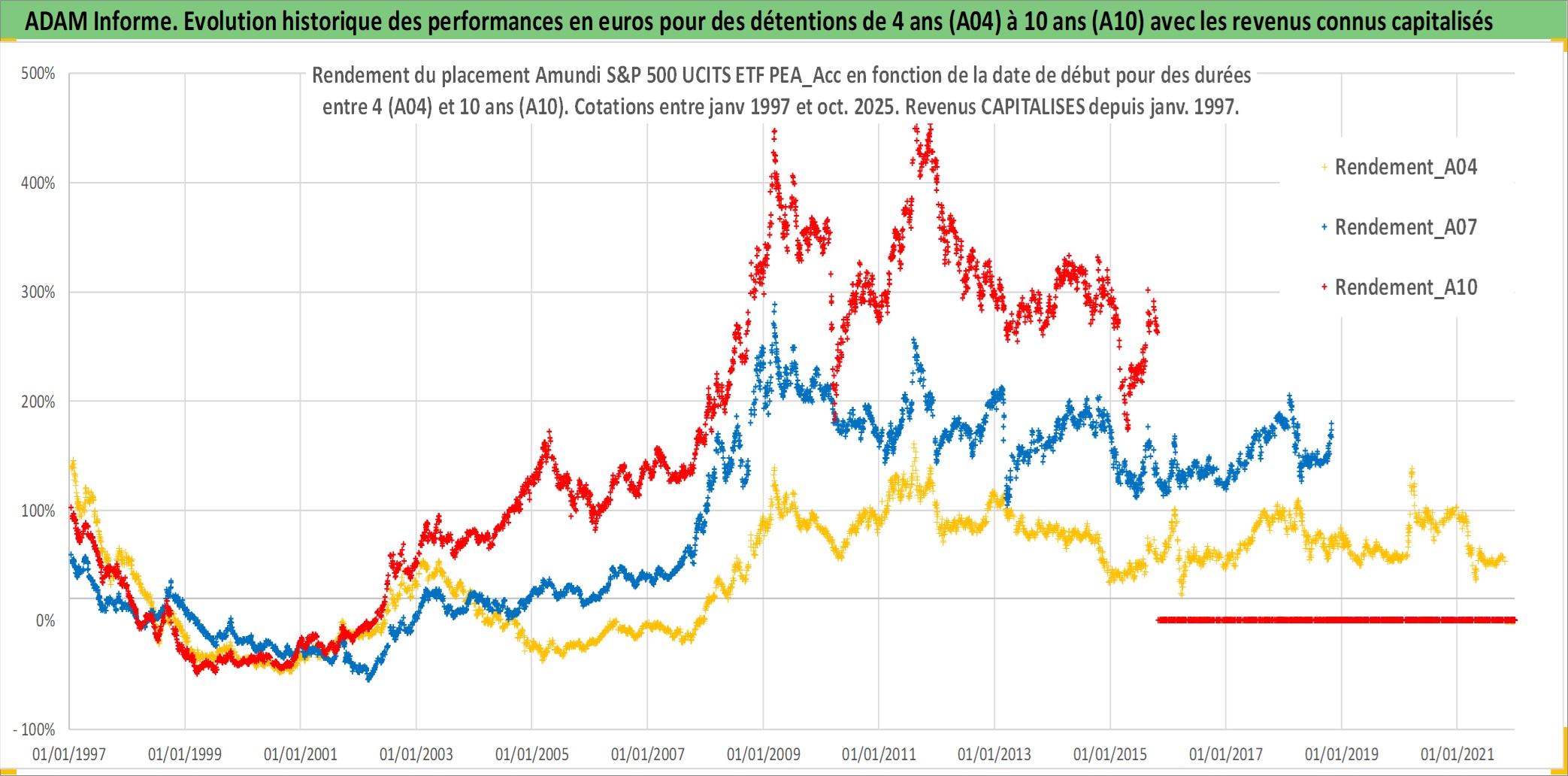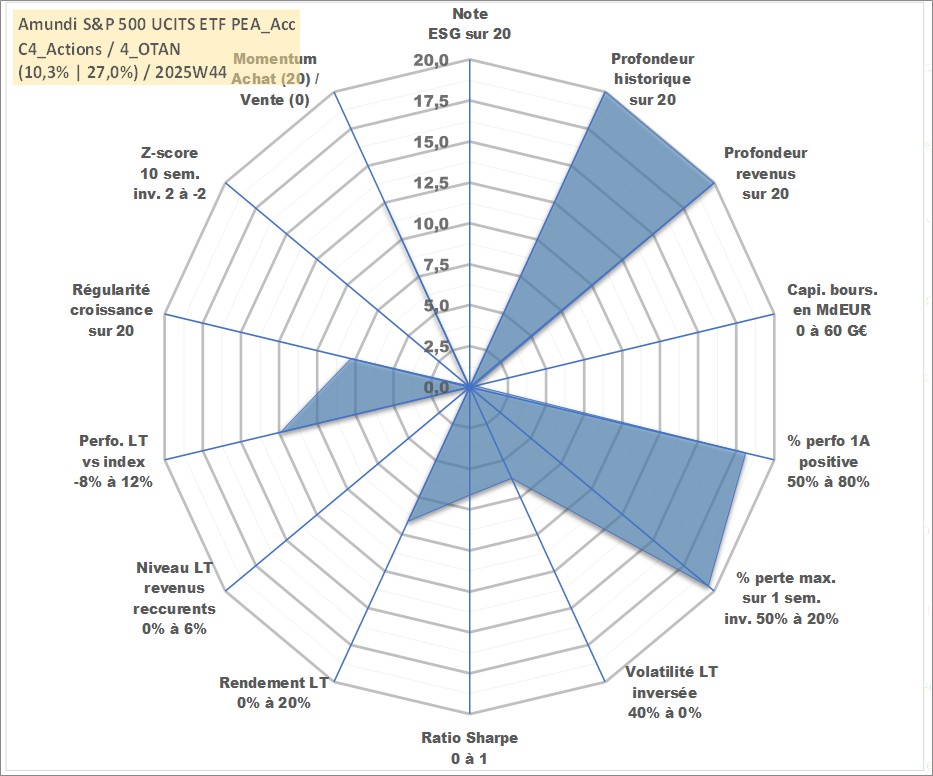 Site dédié aux investisseursPage dédiée sur site financeAnalyse des valorisations hebdomadaires du fonds Amundi S&P 500 UCITS ETF PEA_Acc. Cet actif est cote en EUR. Les valorisations couvrent les semaines 1997W01 a 2025W44. Les revenus de cet actif financier sont pris en compte depuis la semaine 1997W01. La note ESG de cet actif n'est pas connue.