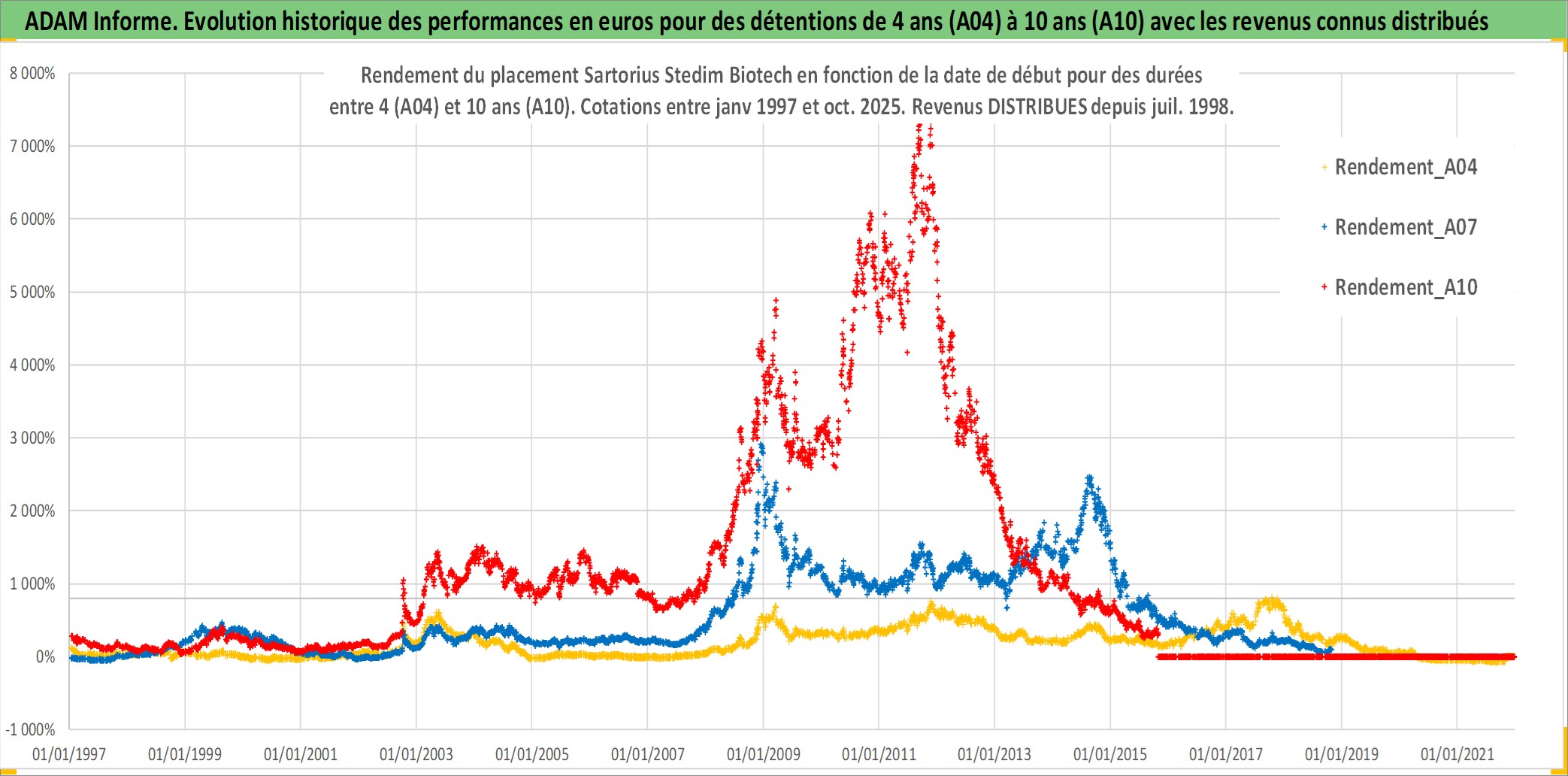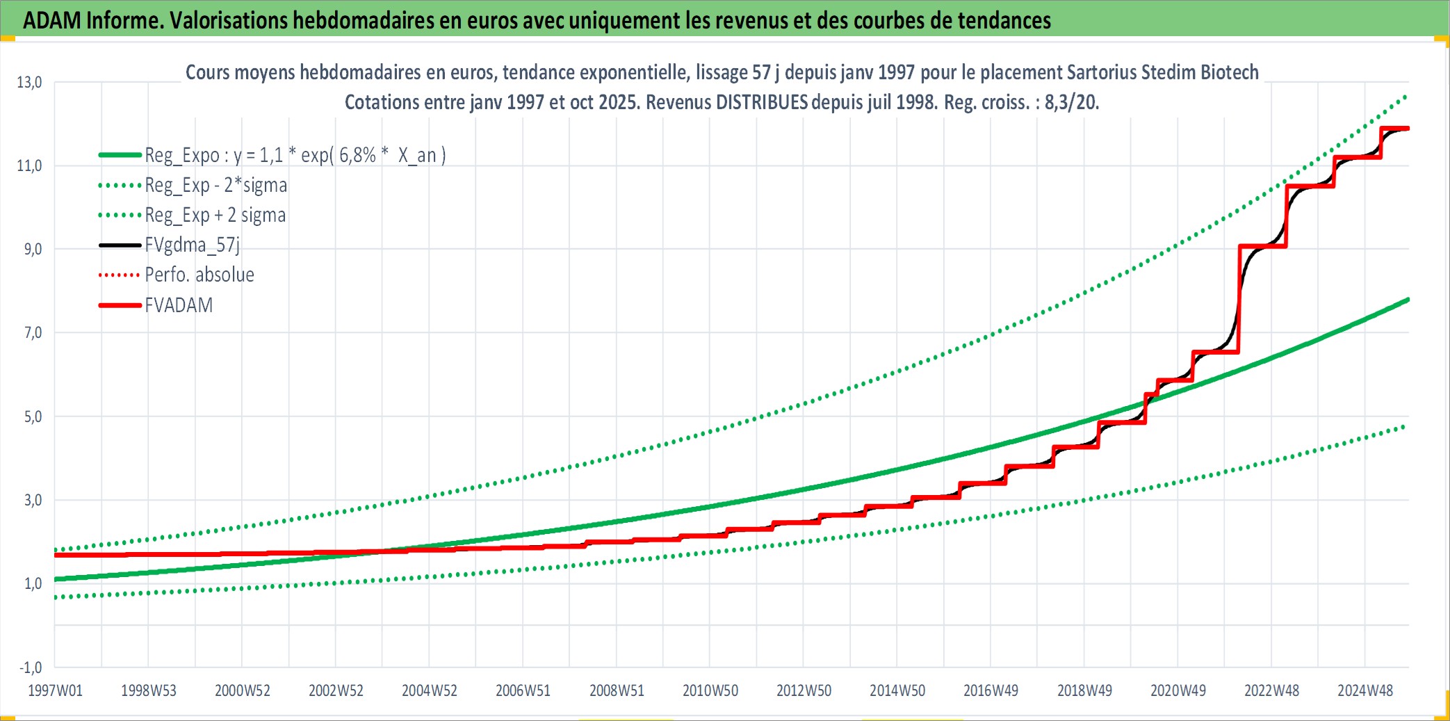 Site dédié aux investisseursPage dédiée sur site financeAnalyse des valorisations hebdomadaires de l'action Sartorius Stedim Biotech. Cet actif est cote en EUR. Les valorisations couvrent les semaines 1997W01 a 2025W44. Les revenus de cet actif financier sont pris en compte depuis la semaine 1998W28. La note globale ESG de cet actif est estimee a 12.0 (apres rebasage entre 0 et 20).