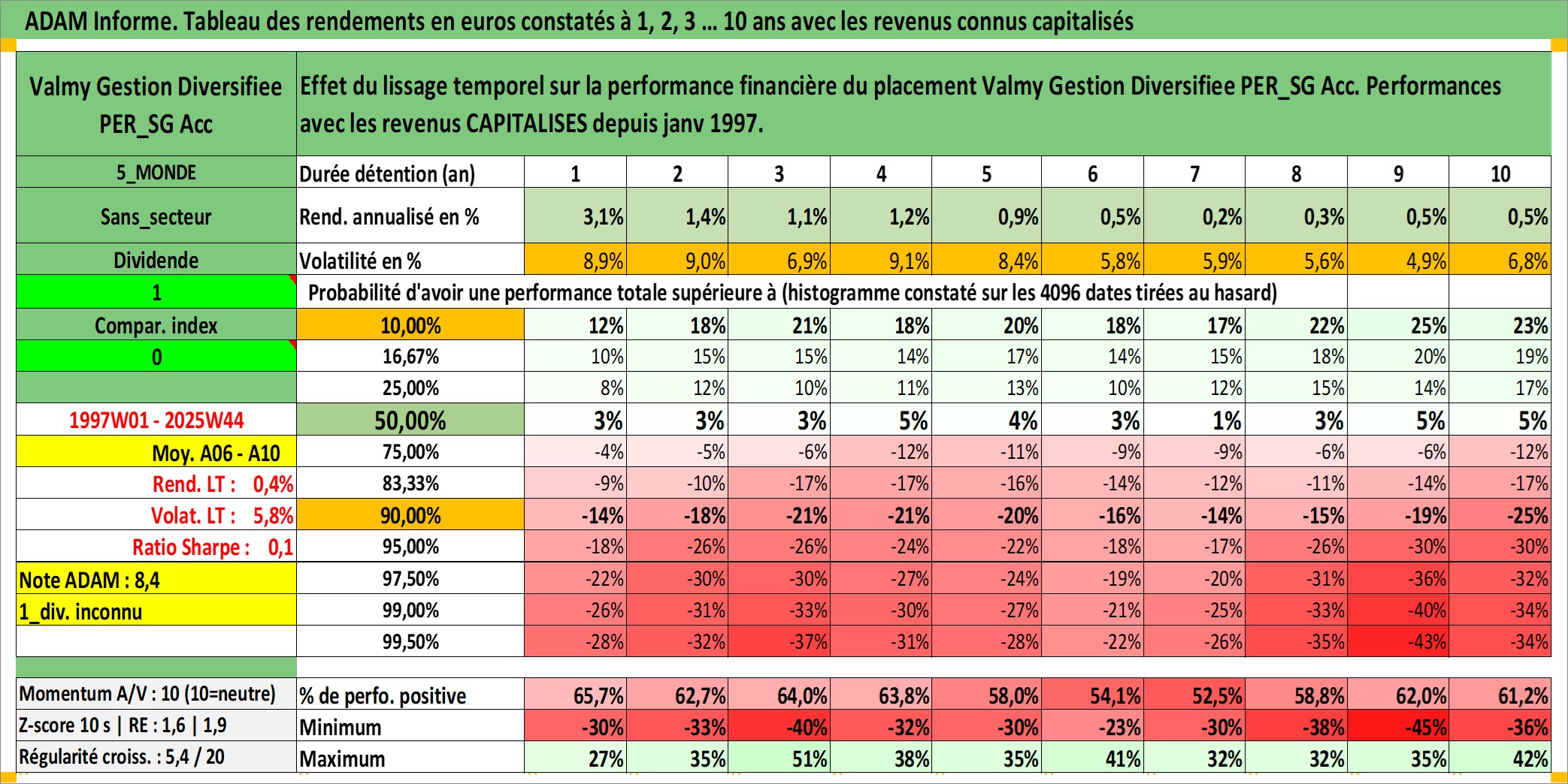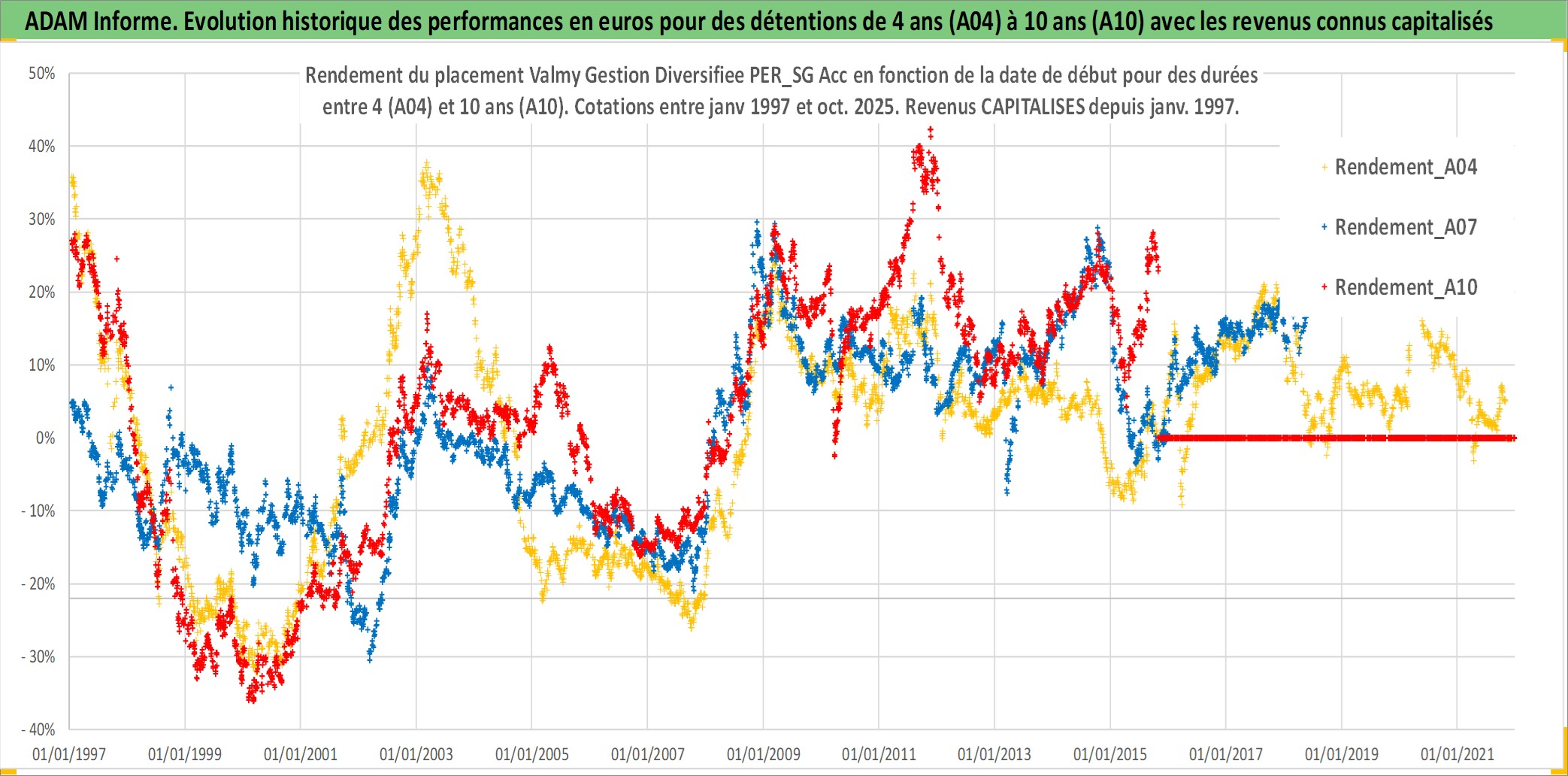 Site dédié aux investisseursPage dédiée sur site financeAnalyse des valorisations hebdomadaires du fonds Valmy Gestion Diversifiee PER_SG Acc. Cet actif est cote en EUR. Les valorisations couvrent les semaines 1997W01 a 2025W44. Les revenus de cet actif financier sont pris en compte depuis la semaine 1997W01. La note ESG de cet actif n'est pas connue.