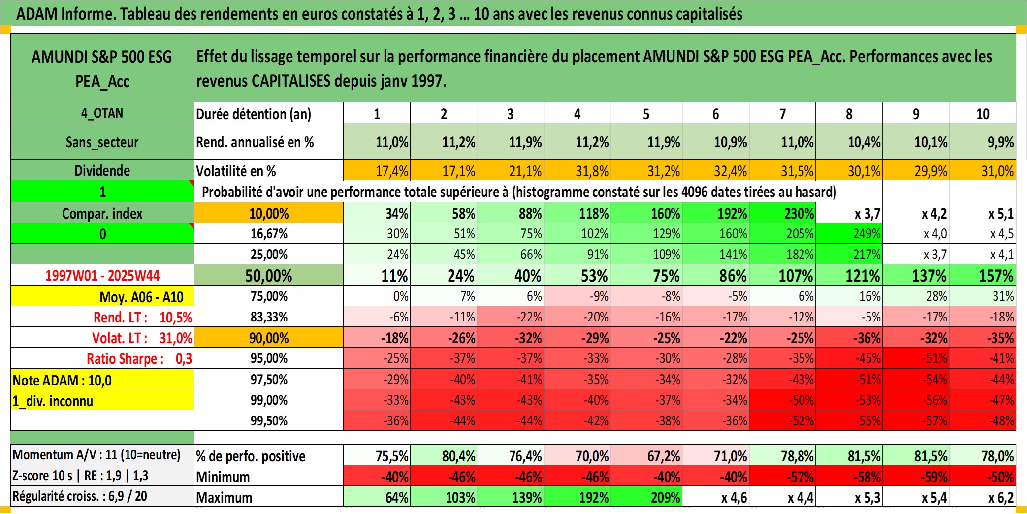 Site dédié aux investisseursPage dédiée sur site financeAnalyse des valorisations hebdomadaires du fonds AMUNDI S&P 500 ESG PEA_Acc. Cet actif est cote en EUR. Les valorisations couvrent les semaines 1997W01 a 2025W44. Les revenus de cet actif financier sont pris en compte depuis la semaine 1997W01. La note ESG de cet actif n'est pas connue.
