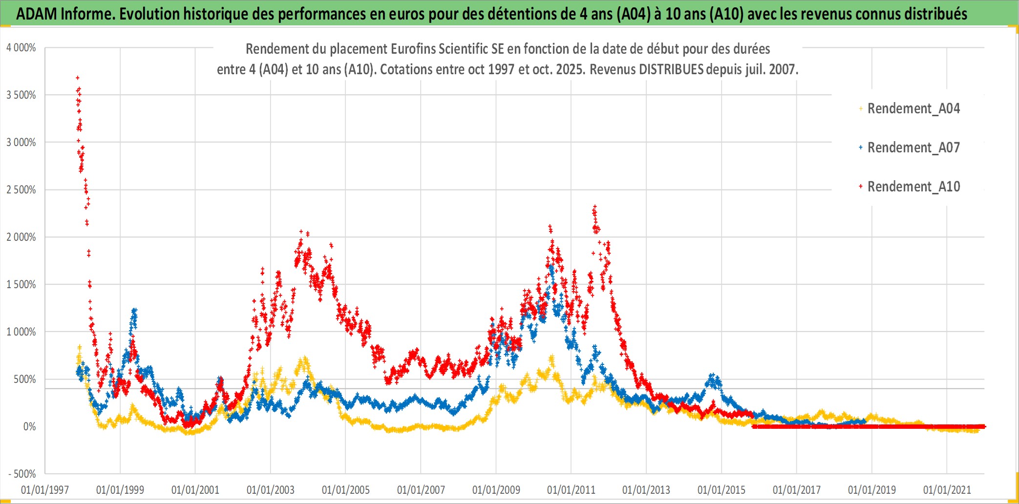 Site dédié aux investisseursPage dédiée sur site financeAnalyse des valorisations hebdomadaires de l'action Eurofins Scientific SE. Cet actif est cote en EUR. Les valorisations couvrent les semaines 1997W44 a 2025W44. Les revenus de cet actif financier sont pris en compte depuis la semaine 2007W30. La note globale ESG de cet actif est estimee a 12.0 (apres rebasage entre 0 et 20).