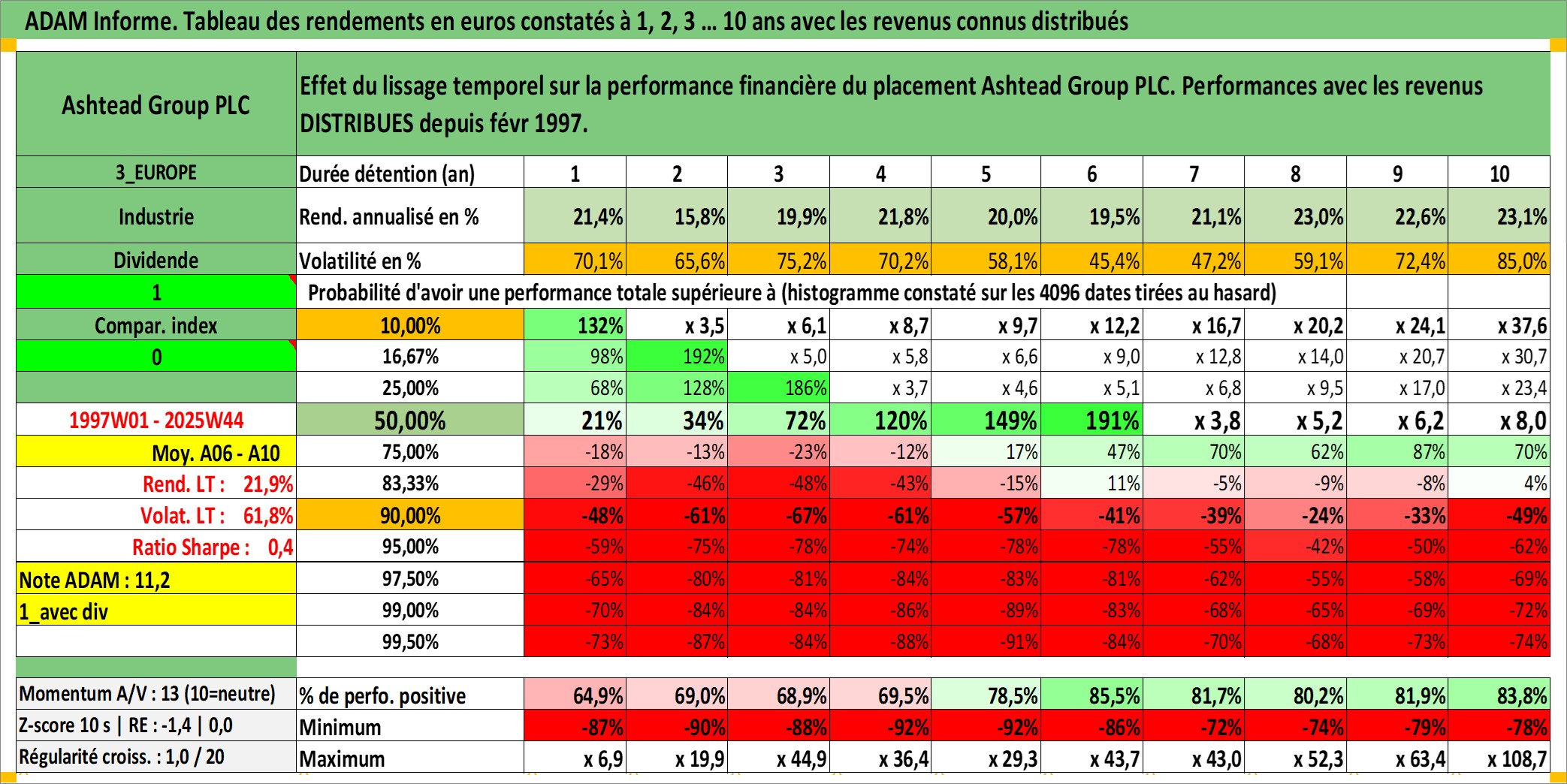 Site dédié aux investisseursPage dédiée sur site financeAnalyse des valorisations hebdomadaires de l'action Ashtead Group PLC. Cet actif est cote en GBX. Les valorisations sont en contrevaleur EURO et couvrent les semaines 1997W01 a 2025W44. Les revenus de cet actif financier sont pris en compte depuis la semaine 1997W09. La note globale ESG de cet actif est estimee a 11.0 (apres rebasage entre 0 et 20).