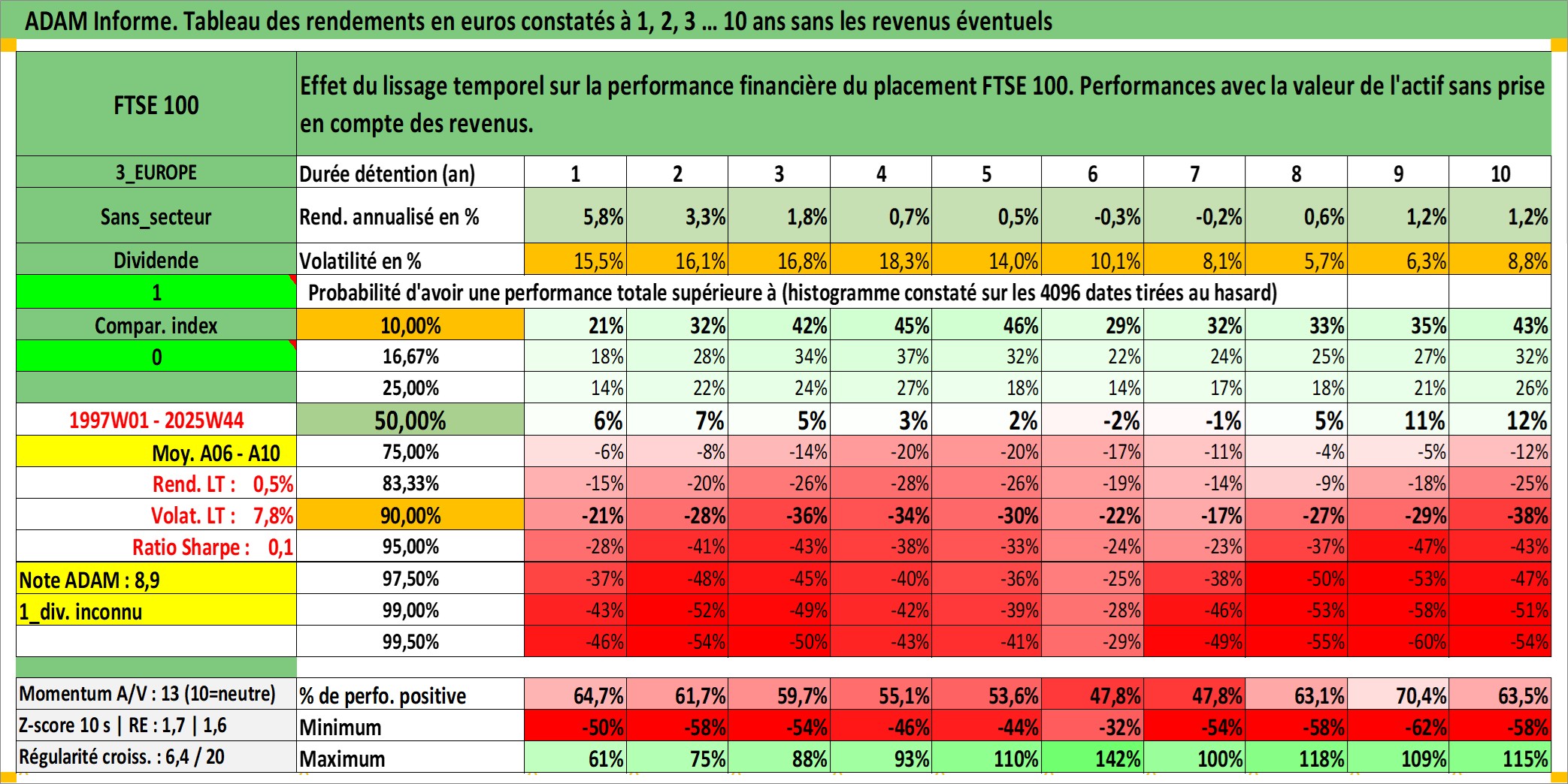 Site dédié aux investisseursPage dédiée sur site financeAnalyse des valorisations hebdomadaires de l'actif FTSE 100. Cet actif est cote en GBP. Les valorisations sont en contrevaleur EURO et couvrent les semaines 1997W01 a 2025W44. Les revenus de cet actif financier ne sont pas connus car non existants ou non disponibles sur le site Yahoo Finance. La note ESG de cet actif n'est pas connue.