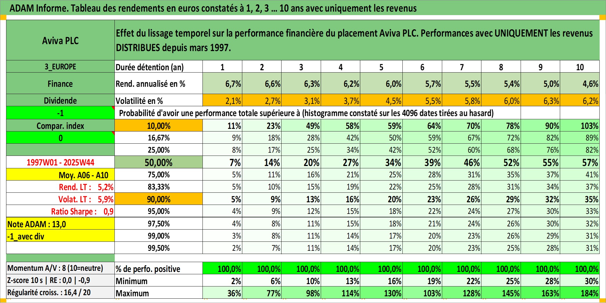 Dernière perfo 10 ans en %