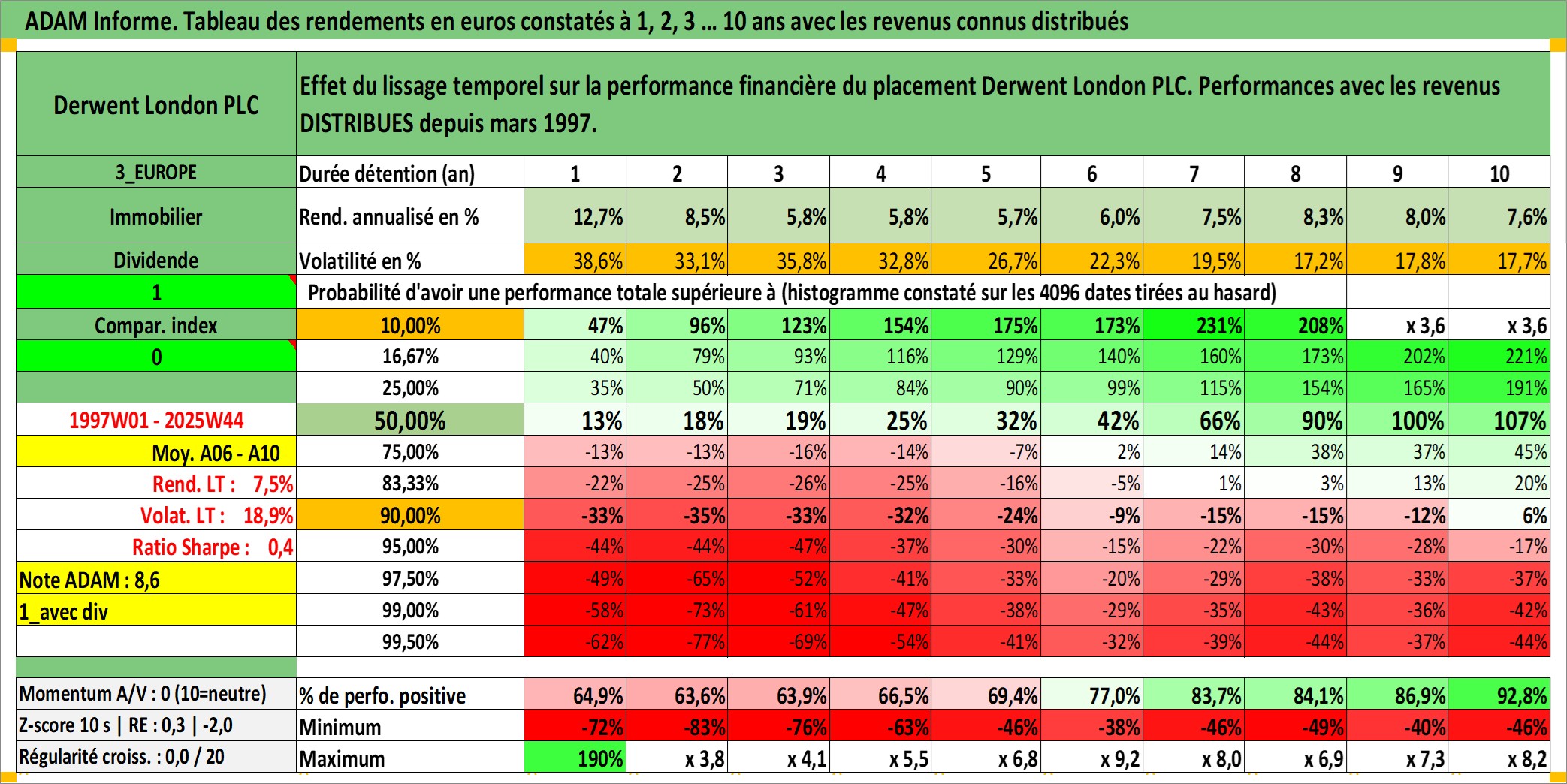 Site dédié aux investisseursPage dédiée sur site financeAnalyse des valorisations hebdomadaires de l'action Derwent London PLC. Cet actif est cote en GBX. Les valorisations sont en contrevaleur EURO et couvrent les semaines 1997W01 a 2025W44. Les revenus de cet actif financier sont pris en compte depuis la semaine 1997W13. La note ESG de cet actif n'est pas connue.