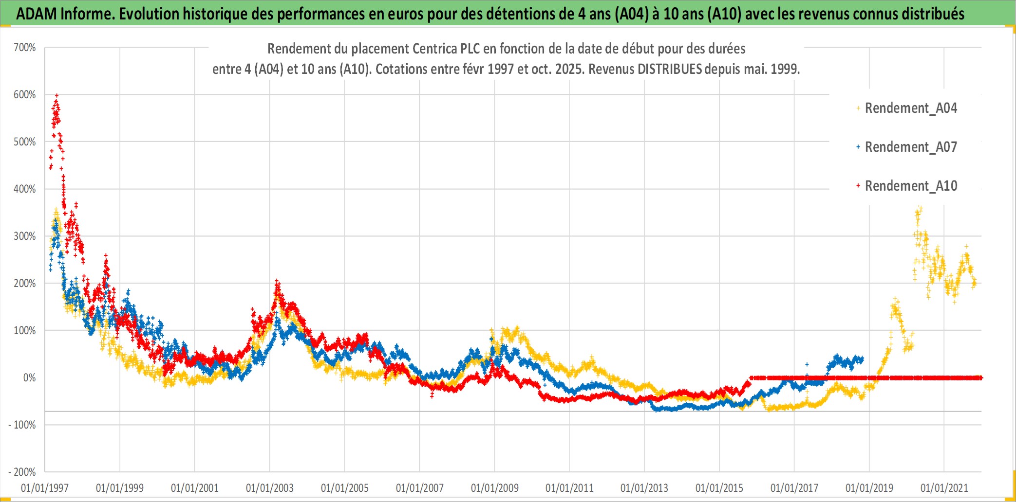 Site dédié aux investisseursPage dédiée sur site financeAnalyse des valorisations hebdomadaires de l'action Centrica PLC. Cet actif est cote en GBX. Les valorisations sont en contrevaleur EURO et couvrent les semaines 1997W07 a 2025W44. Les revenus de cet actif financier sont pris en compte depuis la semaine 1999W19. La note globale ESG de cet actif est estimee a 7.0 (apres rebasage entre 0 et 20).