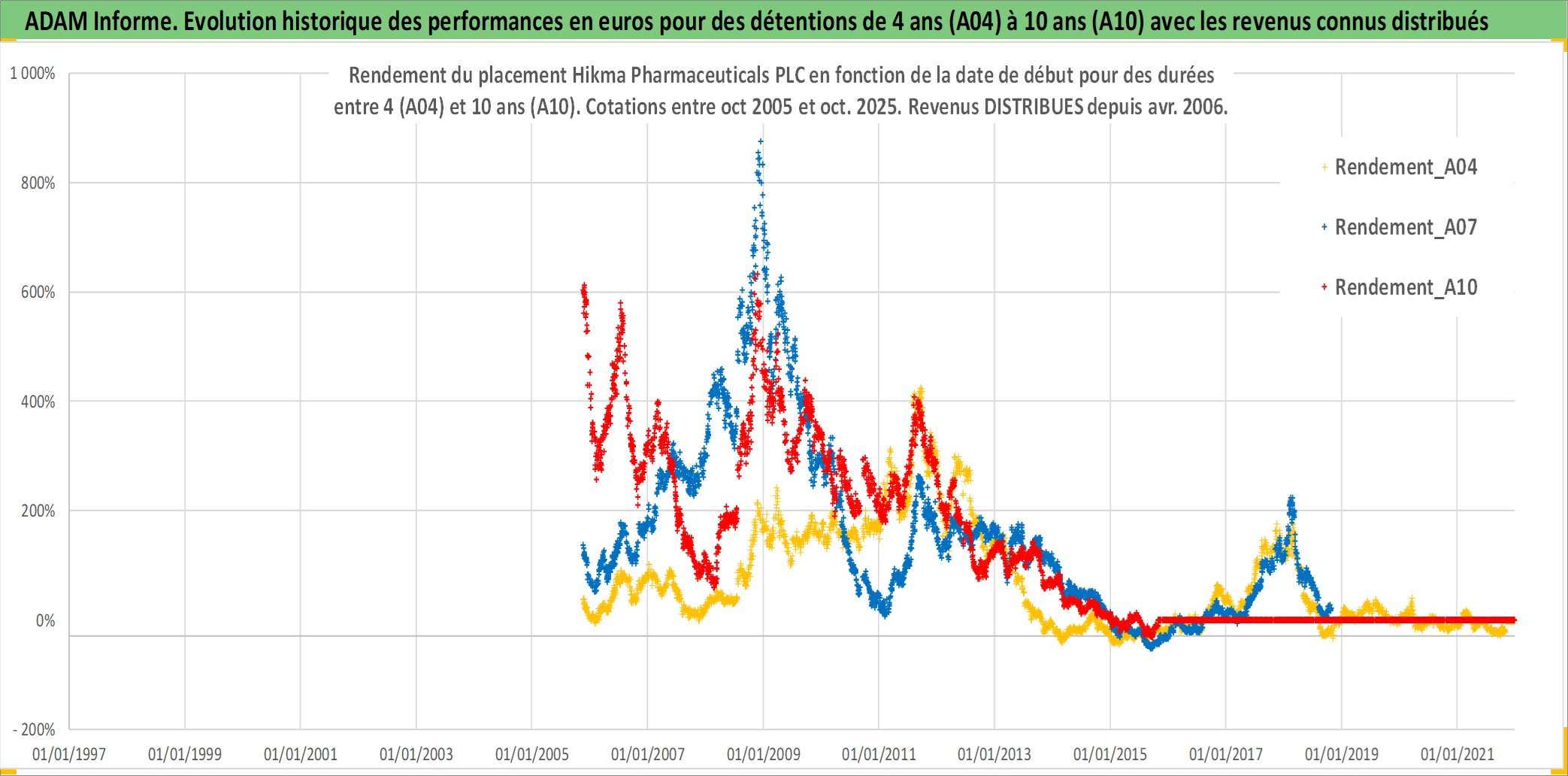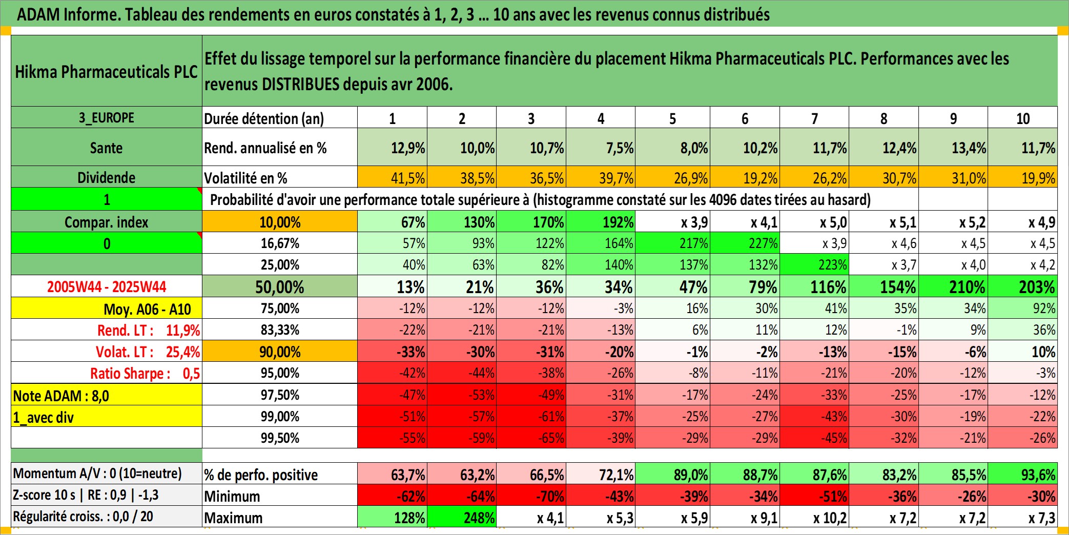 Site dédié aux investisseursPage dédiée sur site financeAnalyse des valorisations hebdomadaires de l'action Hikma Pharmaceuticals PLC. Cet actif est cote en GBX. Les valorisations sont en contrevaleur EURO et couvrent les semaines 2005W44 a 2025W44. Les revenus de cet actif financier sont pris en compte depuis la semaine 2006W17. La note globale ESG de cet actif est estimee a 6.0 (apres rebasage entre 0 et 20).