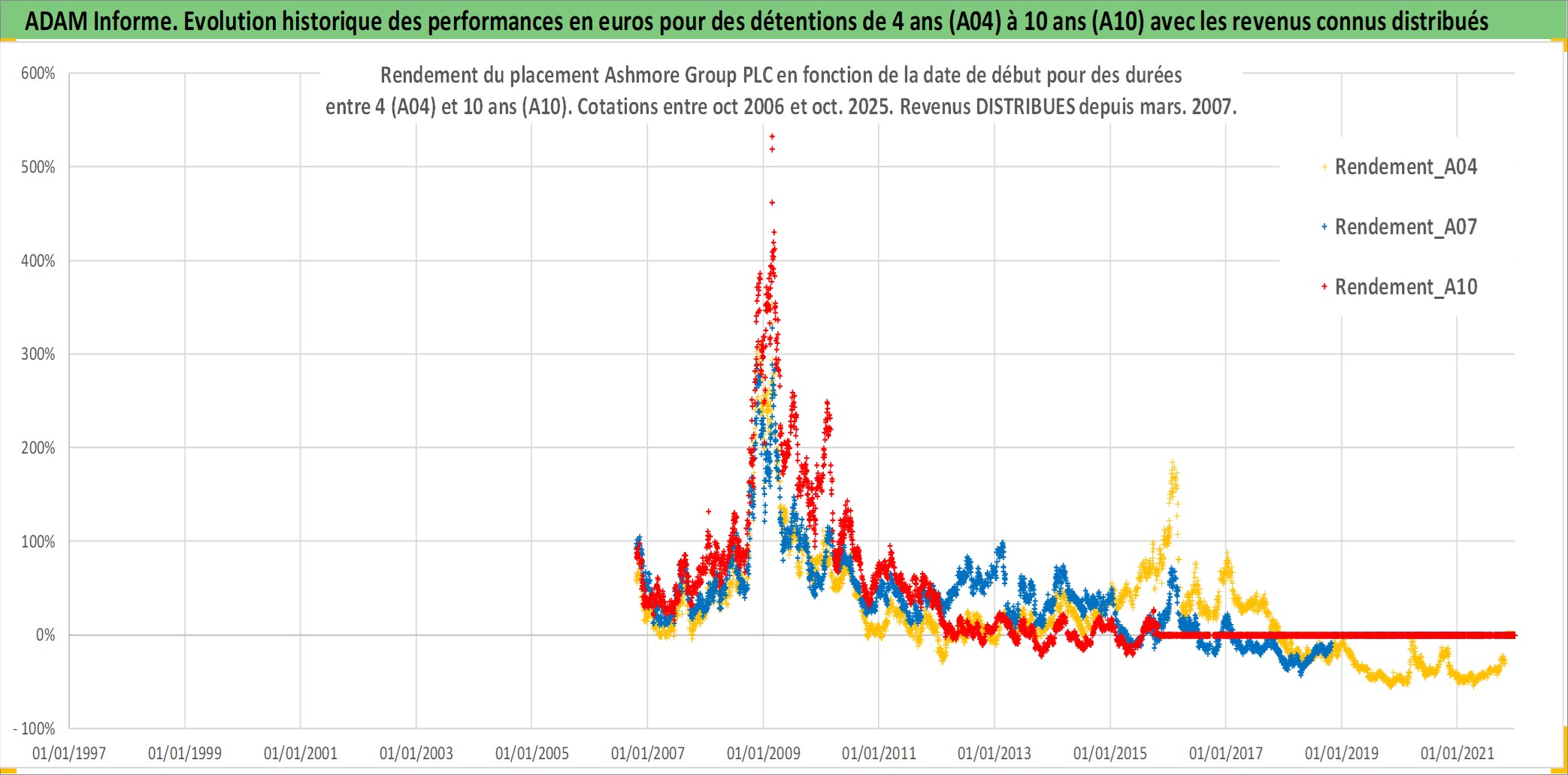 Site dédié aux investisseursPage dédiée sur site financeAnalyse des valorisations hebdomadaires de l'action Ashmore Group PLC. Cet actif est cote en GBX. Les valorisations sont en contrevaleur EURO et couvrent les semaines 2006W41 a 2025W44. Les revenus de cet actif financier sont pris en compte depuis la semaine 2007W13. La note ESG de cet actif n'est pas connue.