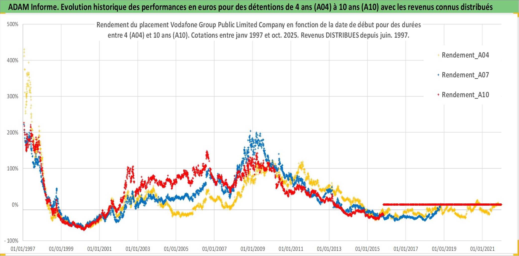 Site dédié aux investisseursPage dédiée sur site financeAnalyse des valorisations hebdomadaires de l'action Vodafone Group Public Limited Company. Cet actif est cote en USD. Les valorisations sont en contrevaleur EURO et couvrent les semaines 1997W01 a 2025W44. Les revenus de cet actif financier sont pris en compte depuis la semaine 1997W24. La note ESG de cet actif n'est pas connue.