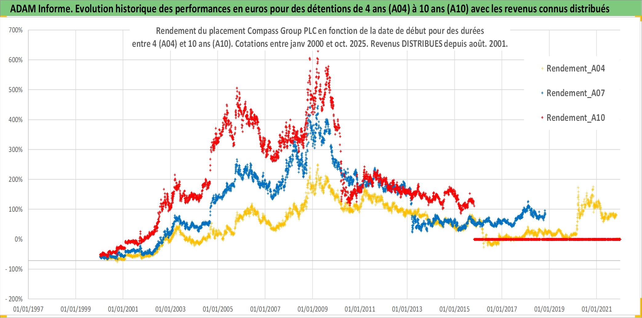 Site dédié aux investisseursPage dédiée sur site financeAnalyse des valorisations hebdomadaires de l'action Compass Group PLC. Cet actif est cote en GBX. Les valorisations sont en contrevaleur EURO et couvrent les semaines 2000W01 a 2025W44. Les revenus de cet actif financier sont pris en compte depuis la semaine 2001W33. La note globale ESG de cet actif est estimee a 11.0 (apres rebasage entre 0 et 20).