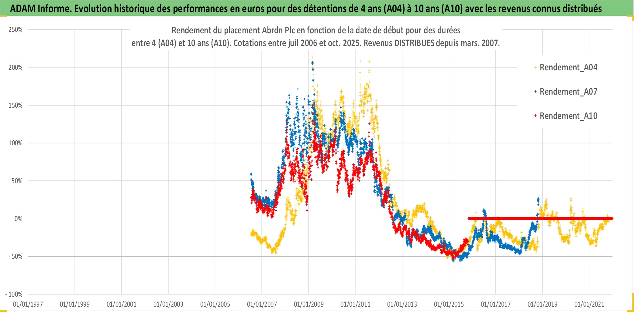 Site dédié aux investisseursPage dédiée sur site financeAnalyse des valorisations hebdomadaires de l'action Abrdn Plc. Cet actif est cote en GBX. Les valorisations sont en contrevaleur EURO et couvrent les semaines 2006W27 a 2025W44. Les revenus de cet actif financier sont pris en compte depuis la semaine 2007W13. La note globale ESG de cet actif est estimee a 12.0 (apres rebasage entre 0 et 20).