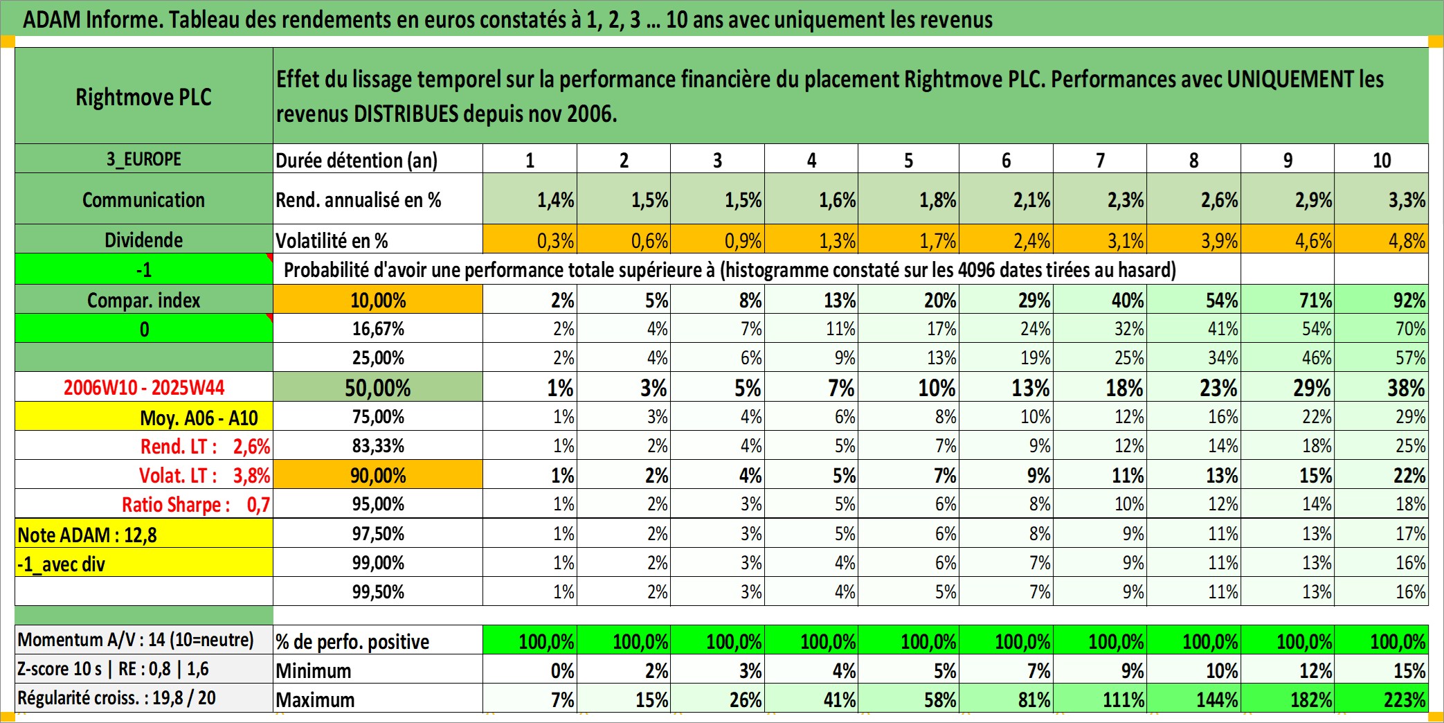 Site dédié aux investisseursPage dédiée sur site financeAnalyse des valorisations hebdomadaires de l'action Rightmove PLC. Cet actif est cote en GBX. Les valorisations sont en contrevaleur EURO et couvrent les semaines 2006W10 a 2025W44. Les revenus de cet actif financier sont pris en compte depuis la semaine 2006W47. La note ESG de cet actif n'est pas connue.