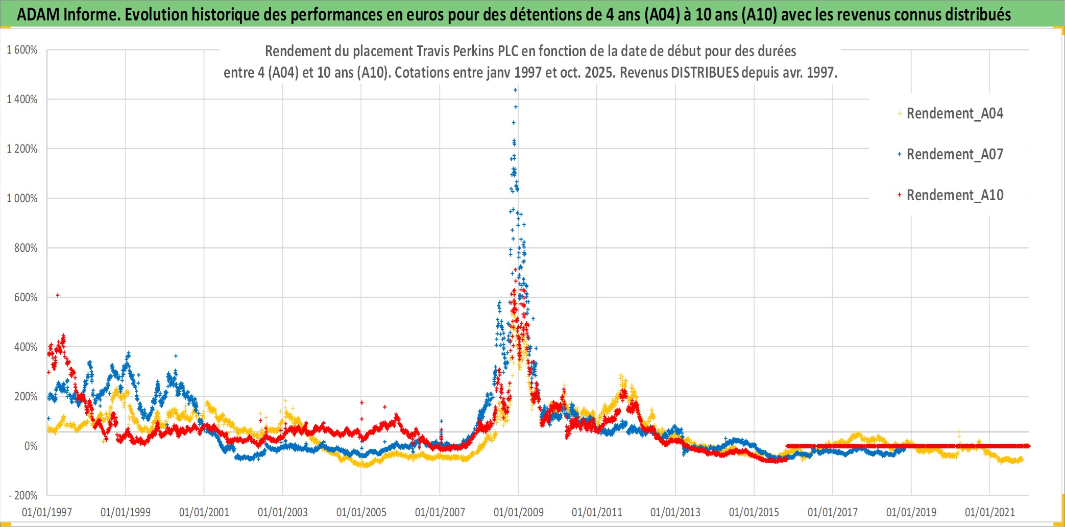 Site dédié aux investisseursPage dédiée sur site financeAnalyse des valorisations hebdomadaires de l'action Travis Perkins PLC. Cet actif est cote en GBX. Les valorisations sont en contrevaleur EURO et couvrent les semaines 1997W01 a 2025W44. Les revenus de cet actif financier sont pris en compte depuis la semaine 1997W15. La note ESG de cet actif n'est pas connue.