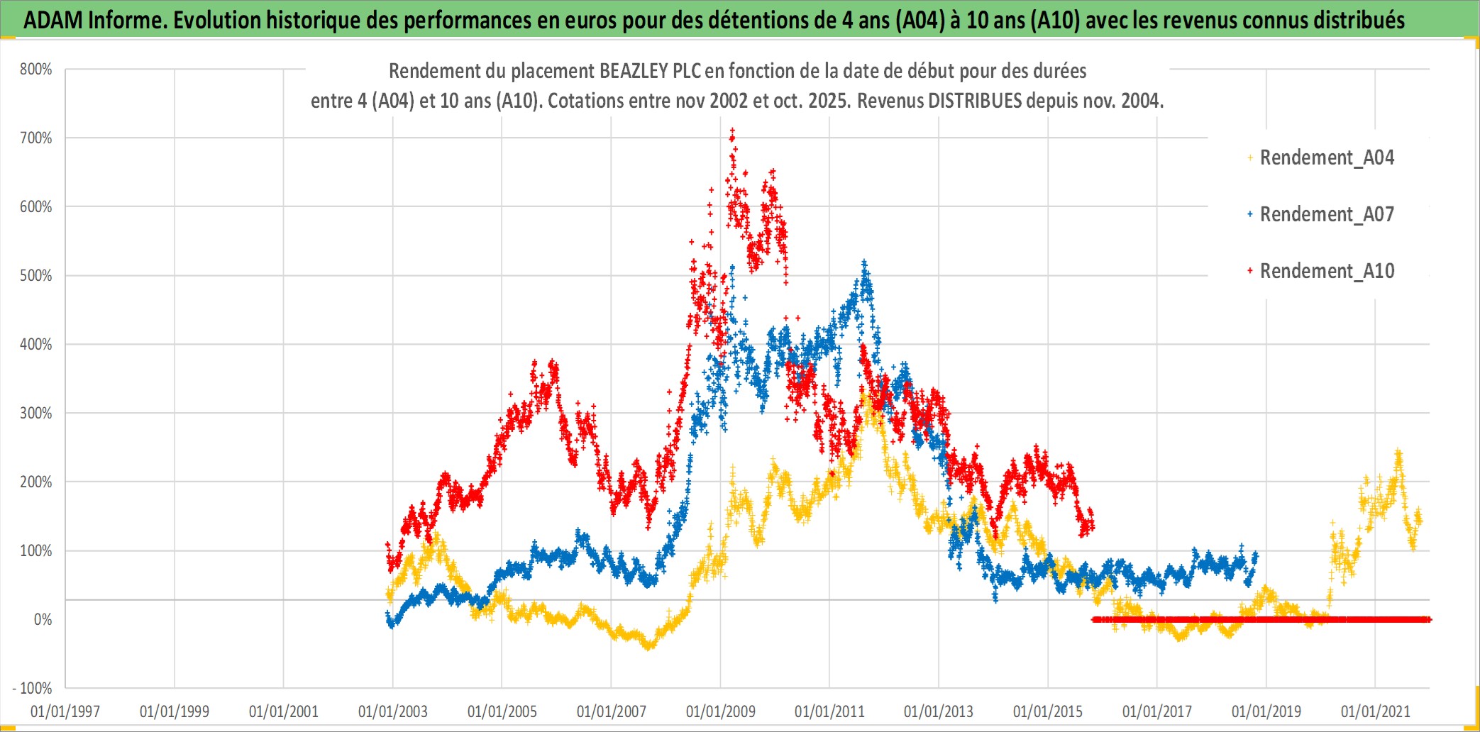 Site dédié aux investisseursPage dédiée sur site financeAnalyse des valorisations hebdomadaires de l'action BEAZLEY PLC. Cet actif est cote en GBX. Les valorisations sont en contrevaleur EURO et couvrent les semaines 2002W46 a 2025W44. Les revenus de cet actif financier sont pris en compte depuis la semaine 2004W45. La note ESG de cet actif n'est pas connue.
