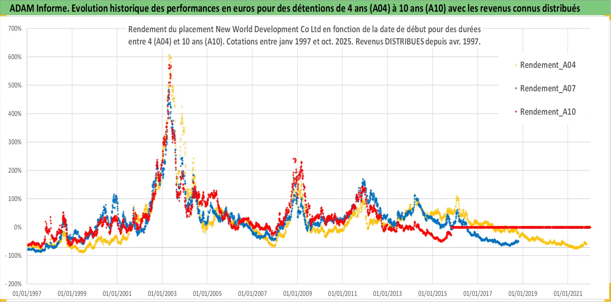 Site dédié aux investisseursPage dédiée sur site financeAnalyse des valorisations hebdomadaires de l'action New World Development Co Ltd. Cet actif est cote en HKD. Les valorisations sont en contrevaleur EURO et couvrent les semaines 1997W01 a 2025W44. Les revenus de cet actif financier sont pris en compte depuis la semaine 1997W15. La note globale ESG de cet actif est estimee a 14.0 (apres rebasage entre 0 et 20).
