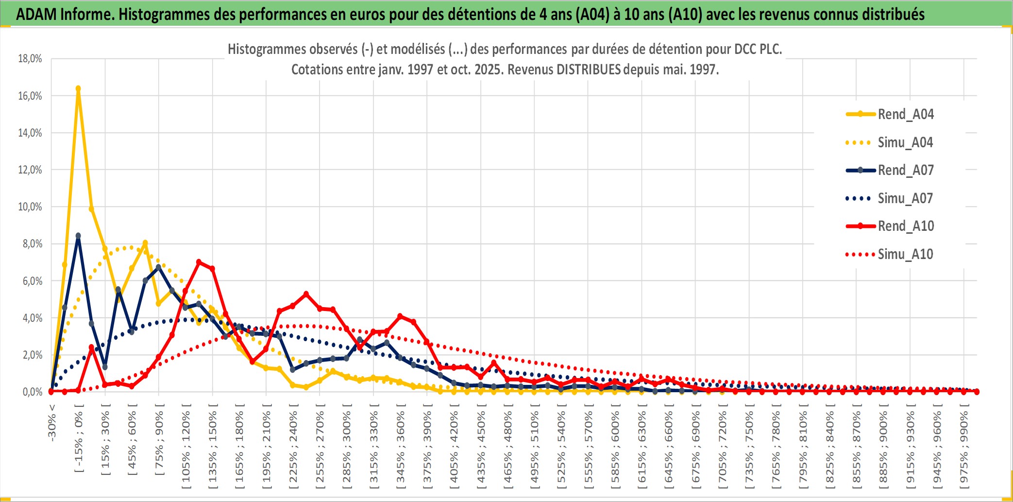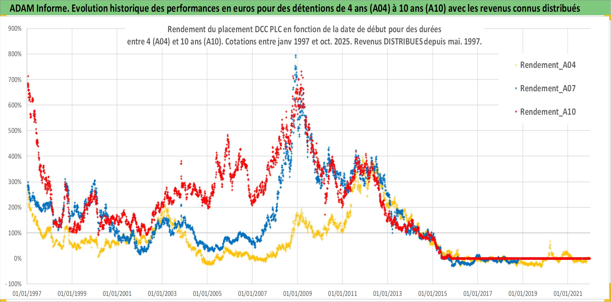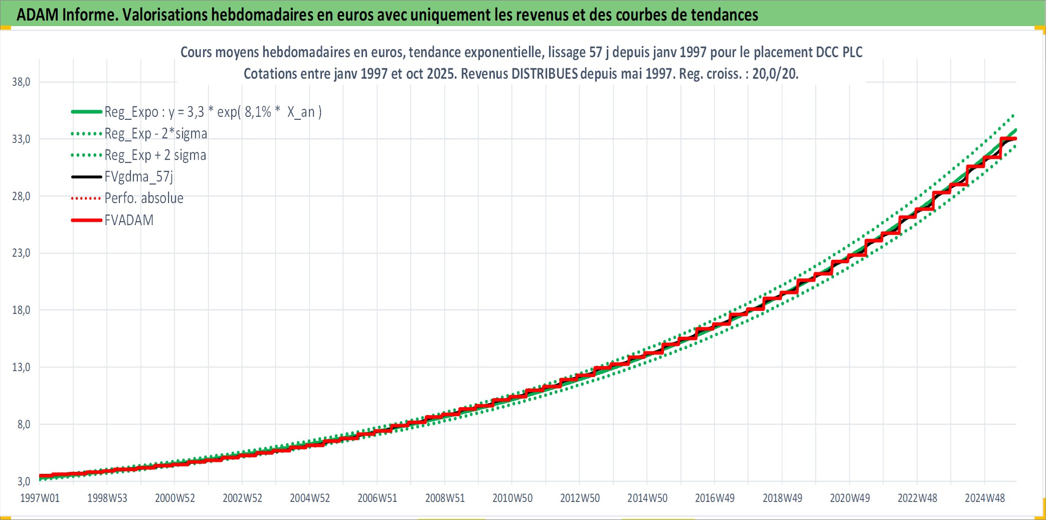 Site dédié aux investisseursPage dédiée sur site financeAnalyse des valorisations hebdomadaires de l'action DCC PLC. Cet actif est cote en GBX. Les valorisations sont en contrevaleur EURO et couvrent les semaines 1997W01 a 2025W44. Les revenus de cet actif financier sont pris en compte depuis la semaine 1997W21. La note globale ESG de cet actif est estimee a 9.0 (apres rebasage entre 0 et 20).
