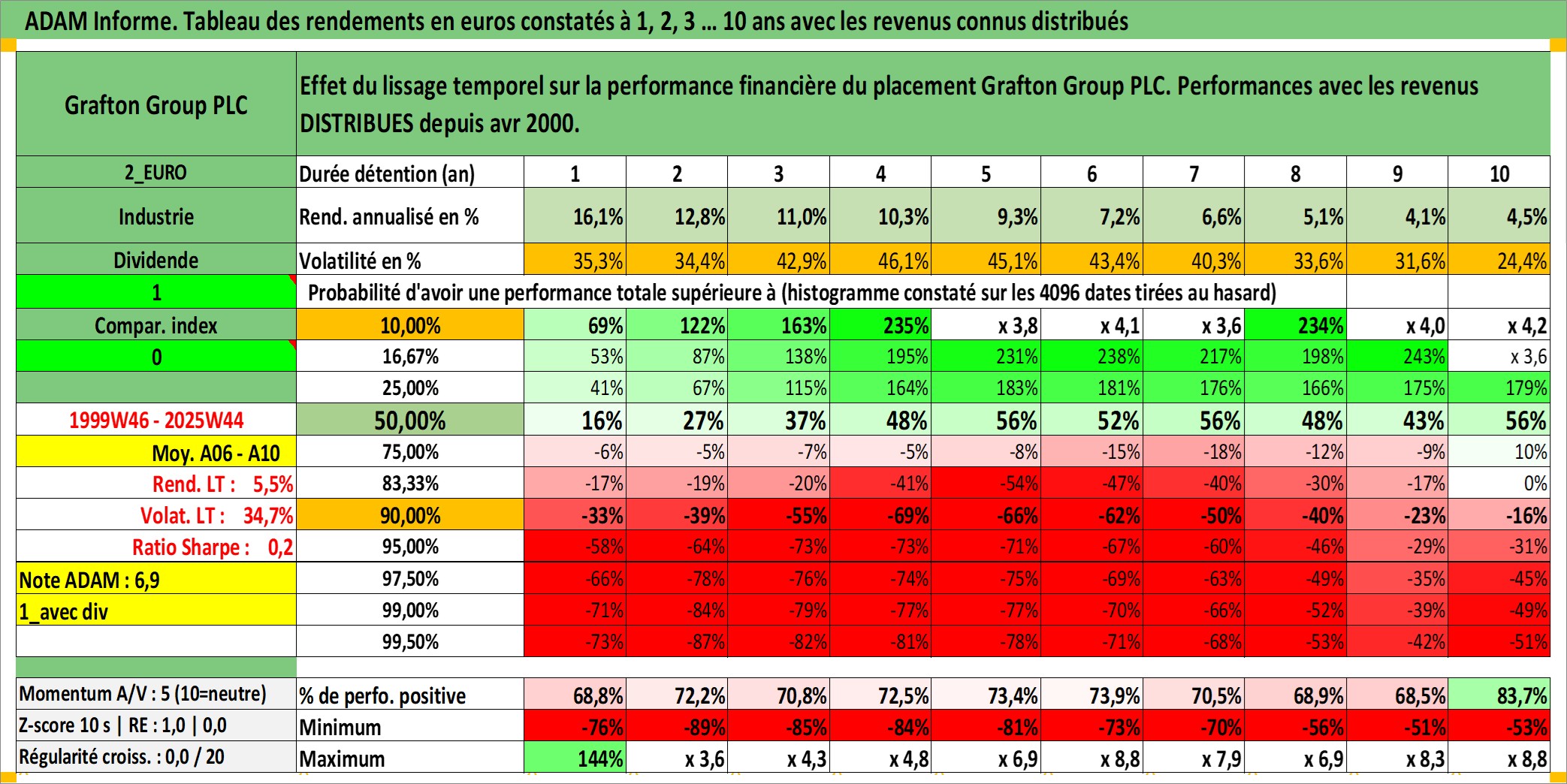 Site dédié aux investisseursPage dédiée sur site financeAnalyse des valorisations hebdomadaires de l'action Grafton Group PLC. Cet actif est cote en GBX. Les valorisations sont en contrevaleur EURO et couvrent les semaines 1999W46 a 2025W44. Les revenus de cet actif financier sont pris en compte depuis la semaine 2000W14. La note ESG de cet actif n'est pas connue.