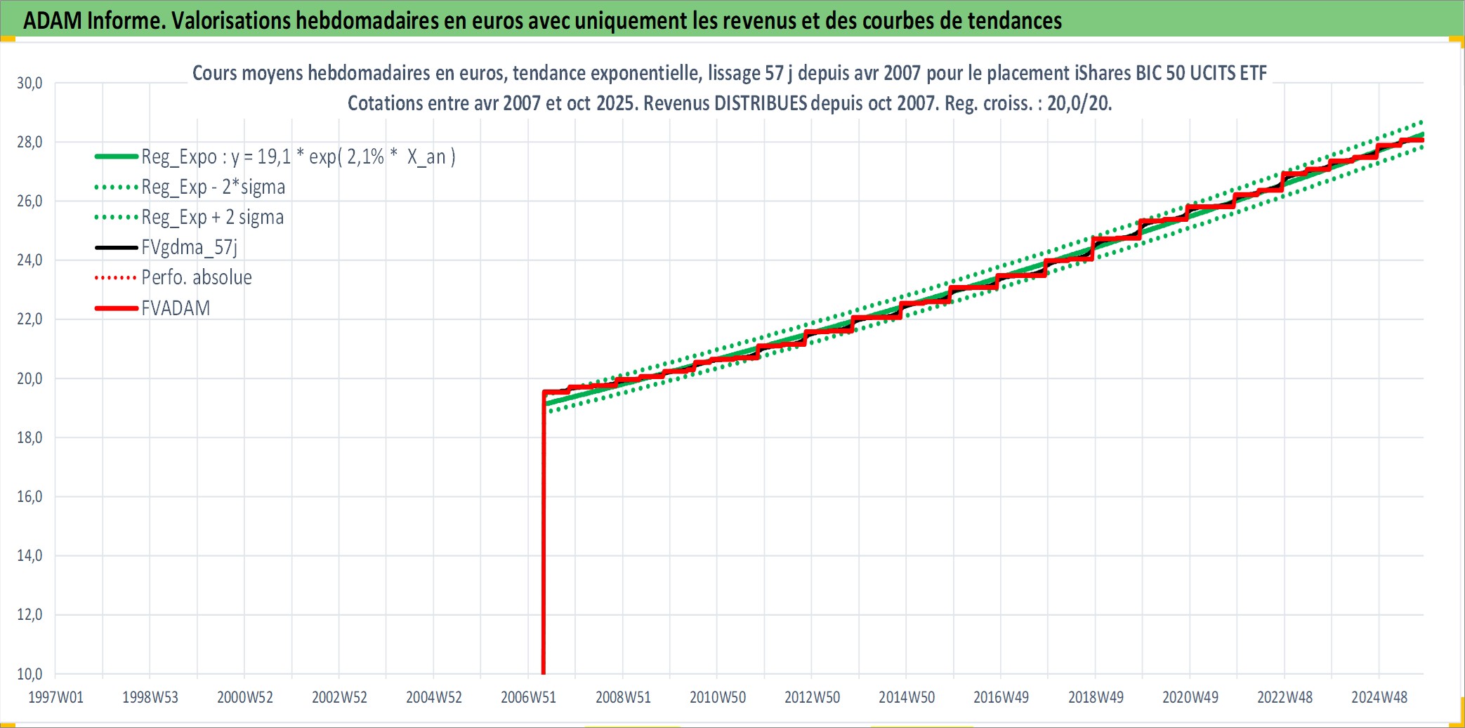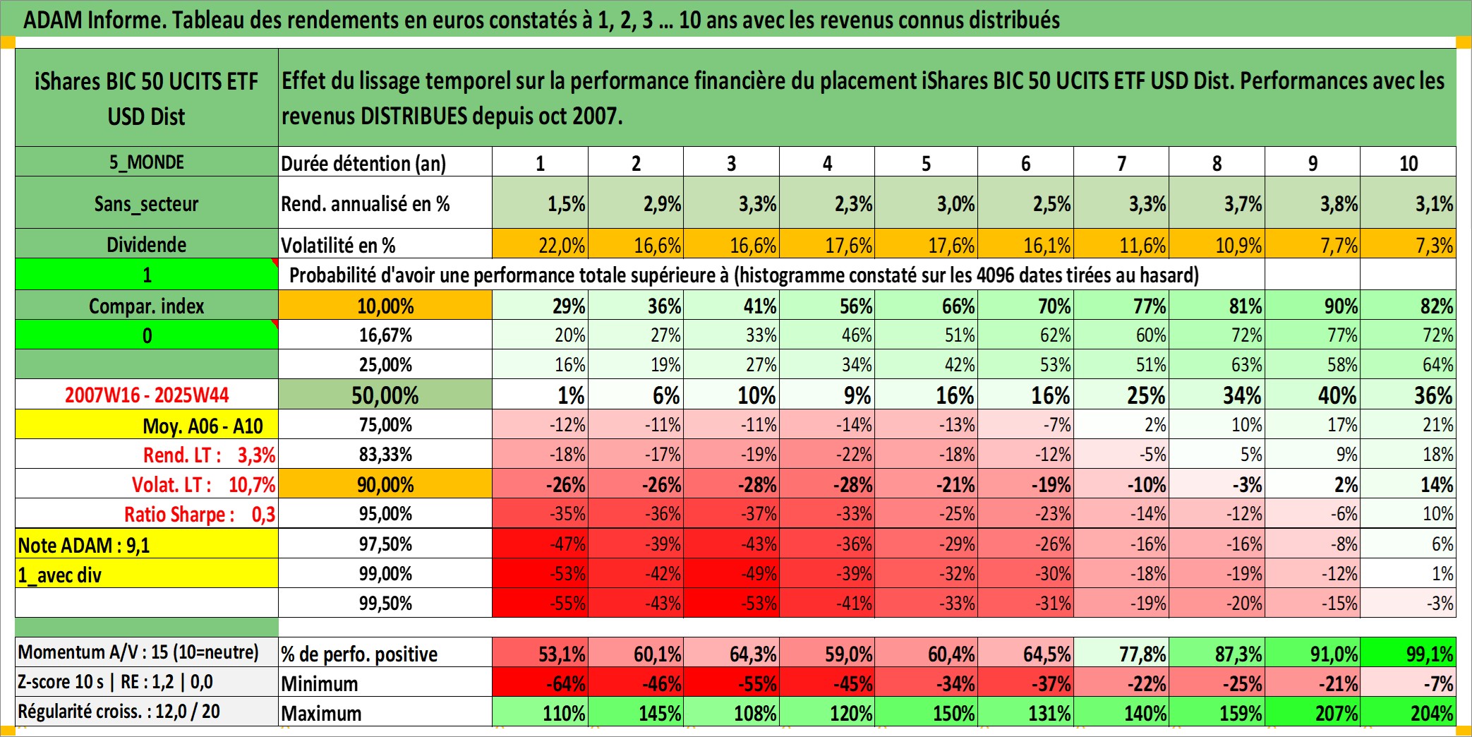 Site dédié aux investisseursPage dédiée sur site financeAnalyse des valorisations hebdomadaires du fonds iShares BIC 50 UCITS ETF USD Dist. Cet actif est cote en USD. Les valorisations sont en contrevaleur EURO et couvrent les semaines 2007W16 a 2025W44. Les revenus de cet actif financier sont pris en compte depuis la semaine 2007W44. La note ESG de cet actif n'est pas connue.