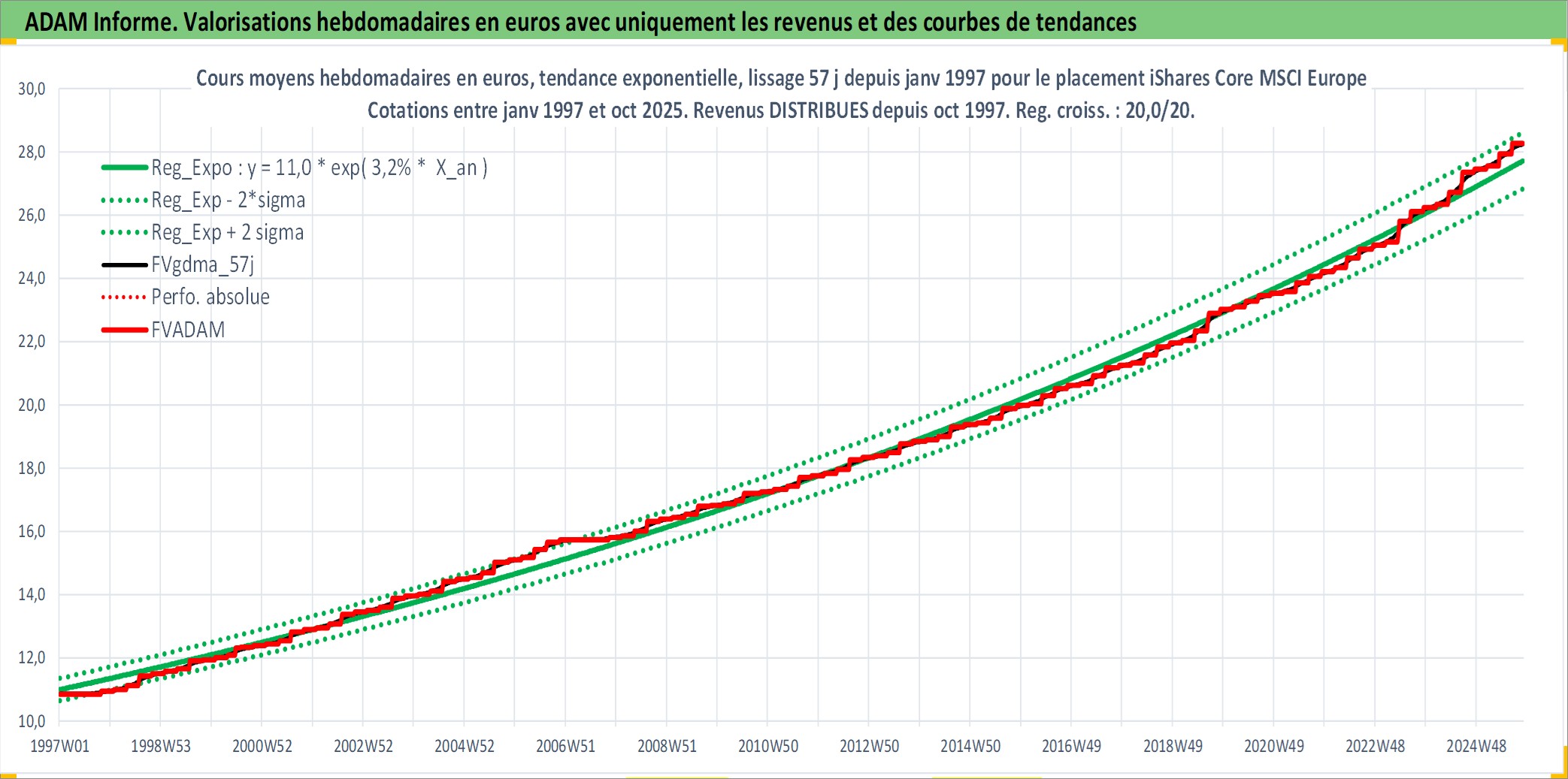 Site dédié aux investisseursPage dédiée sur site financeAnalyse des valorisations hebdomadaires du fonds iShares Core MSCI Europe UCITS ETF Dist. Cet actif est cote en EUR. Les valorisations couvrent les semaines 1997W01 a 2025W44. Les revenus de cet actif financier sont pris en compte depuis la semaine 1997W44. La note ESG de cet actif n'est pas connue.