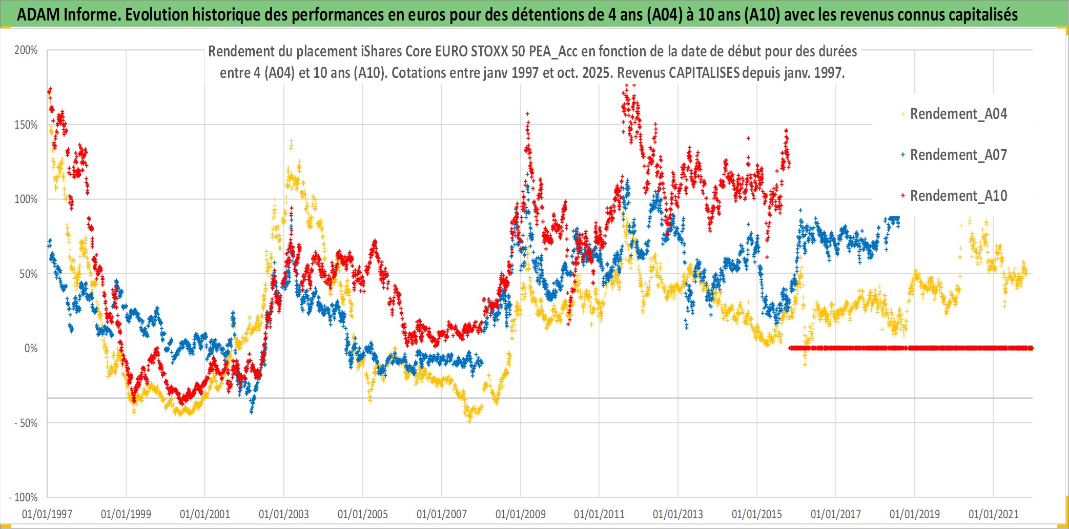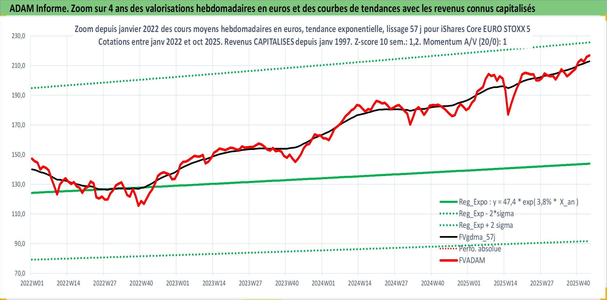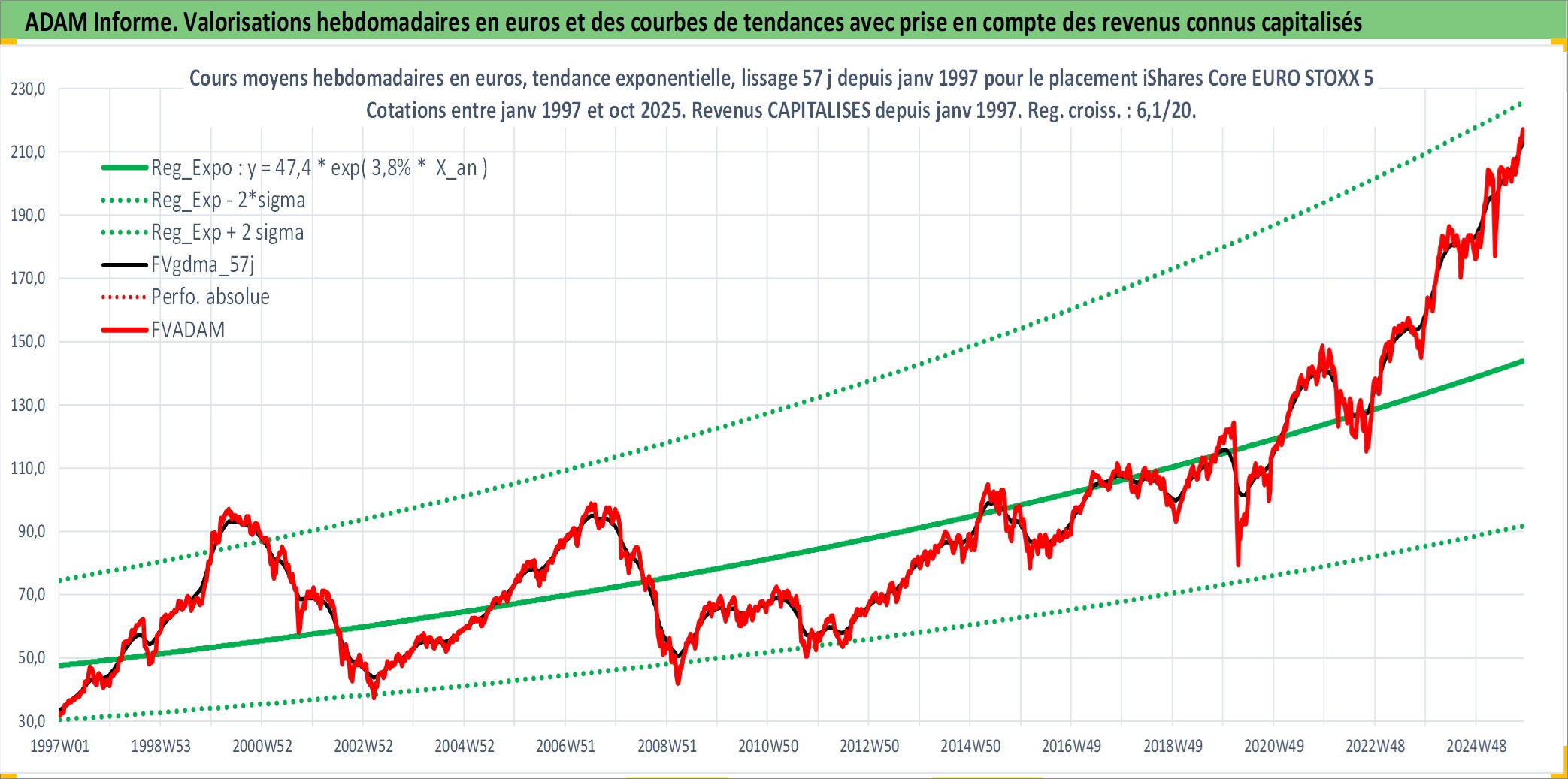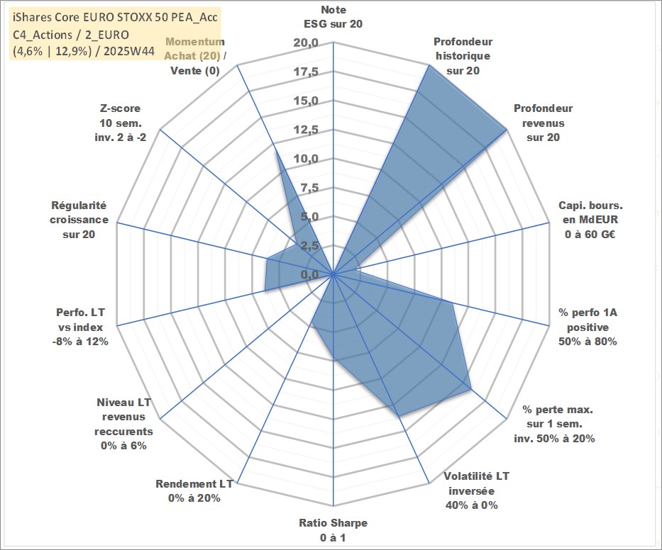 Site dédié aux investisseursPage dédiée sur site financeAnalyse des valorisations hebdomadaires du fonds iShares Core EURO STOXX 50 PEA_Acc. Cet actif est cote en EUR. Les valorisations couvrent les semaines 1997W01 a 2025W44. Les revenus de cet actif financier sont pris en compte depuis la semaine 1997W01. La note ESG de cet actif n'est pas connue.