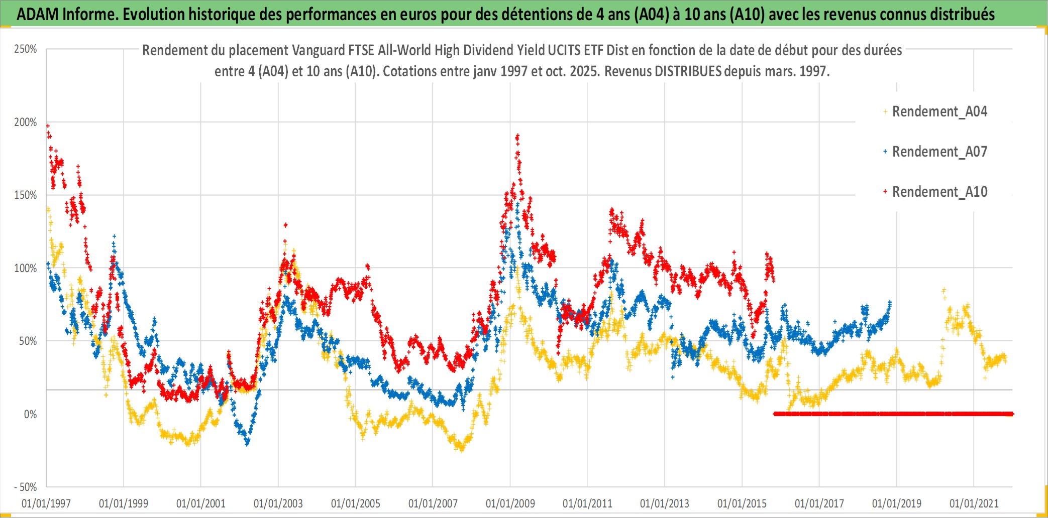 Site dédié aux investisseursPage dédiée sur site financeAnalyse des valorisations hebdomadaires du fonds Vanguard FTSE All-World High Dividend Yield UCITS ETF Dist. Cet actif est cote en GBP. Les valorisations sont en contrevaleur EURO et couvrent les semaines 1997W01 a 2025W44. Les revenus de cet actif financier sont pris en compte depuis la semaine 1997W12. La note ESG de cet actif n'est pas connue.