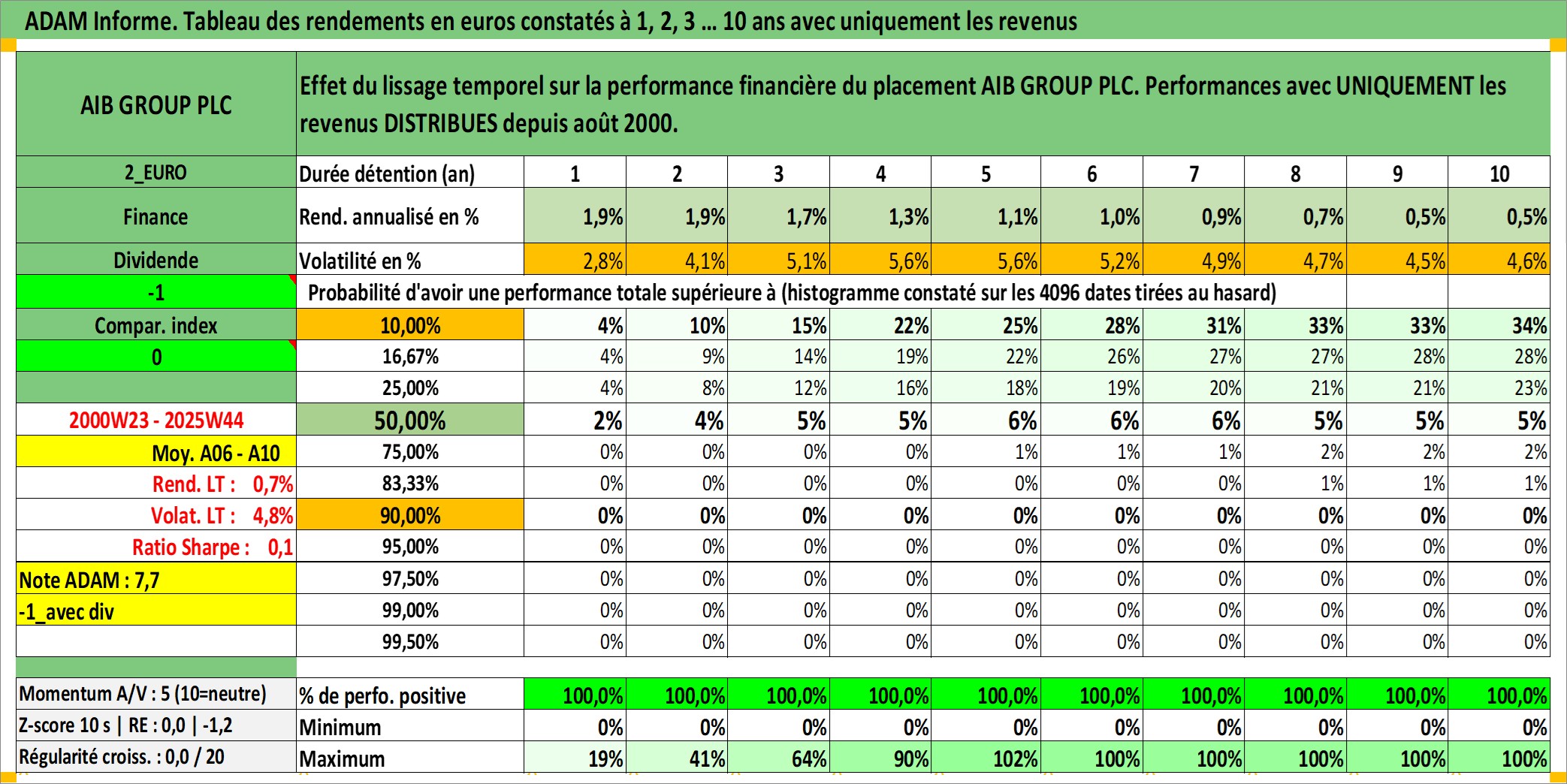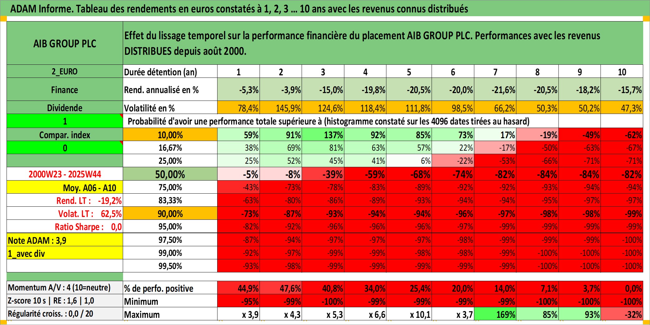 Site dédié aux investisseursPage dédiée sur site financeAnalyse des valorisations hebdomadaires de l'action AIB GROUP PLC. Cet actif est cote en EUR. Les valorisations couvrent les semaines 2000W23 a 2025W44. Les revenus de cet actif financier sont pris en compte depuis la semaine 2000W32. La note ESG de cet actif n'est pas connue.