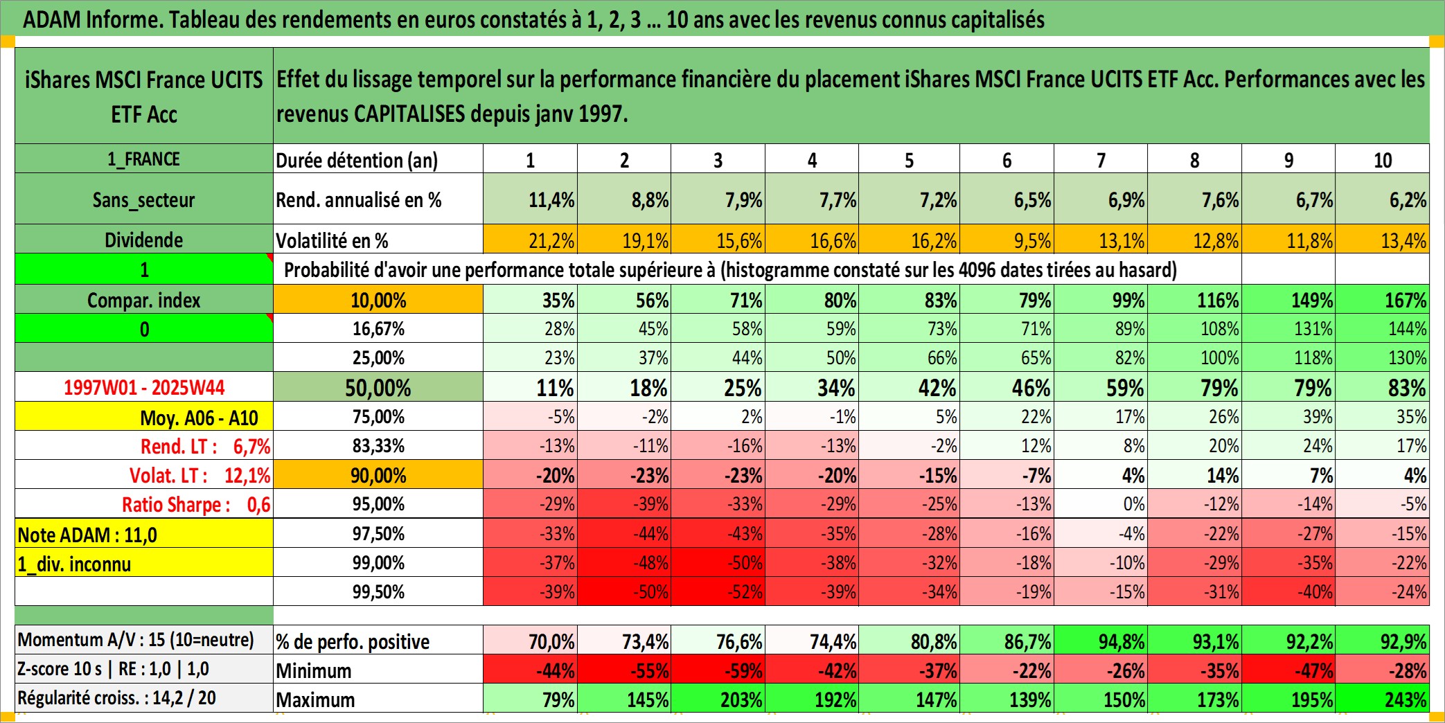 Site dédié aux investisseursPage dédiée sur site financeAnalyse des valorisations hebdomadaires du fonds iShares MSCI France UCITS ETF Acc. Cet actif est cote en EUR. Les valorisations couvrent les semaines 1997W01 a 2025W44. Les revenus de cet actif financier sont pris en compte depuis la semaine 1997W01. La note ESG de cet actif n'est pas connue.