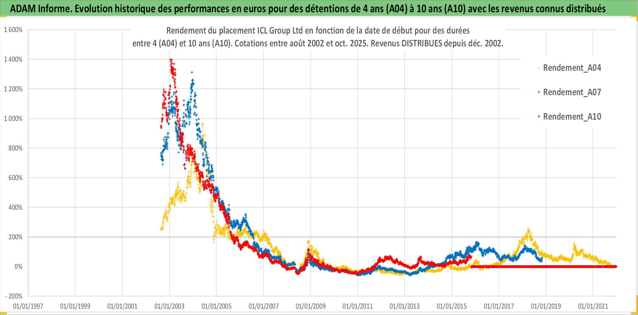 Site dédié aux investisseursPage dédiée sur site financeAnalyse des valorisations hebdomadaires de l'action ICL Group Ltd. Cet actif est cote en ILA. Les valorisations sont en contrevaleur EURO et couvrent les semaines 2002W33 a 2025W44. Les revenus de cet actif financier sont pris en compte depuis la semaine 2002W51. La note globale ESG de cet actif est estimee a 5.0 (apres rebasage entre 0 et 20).