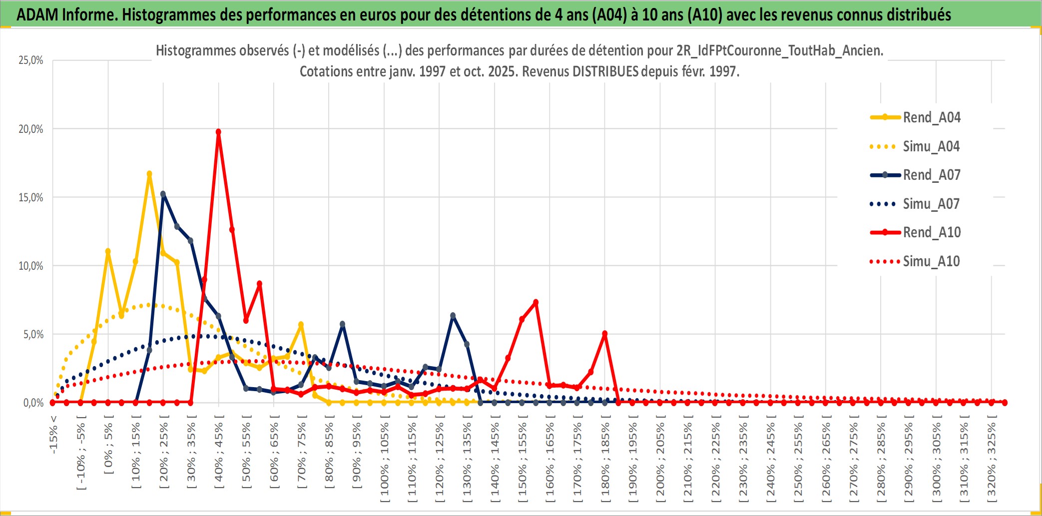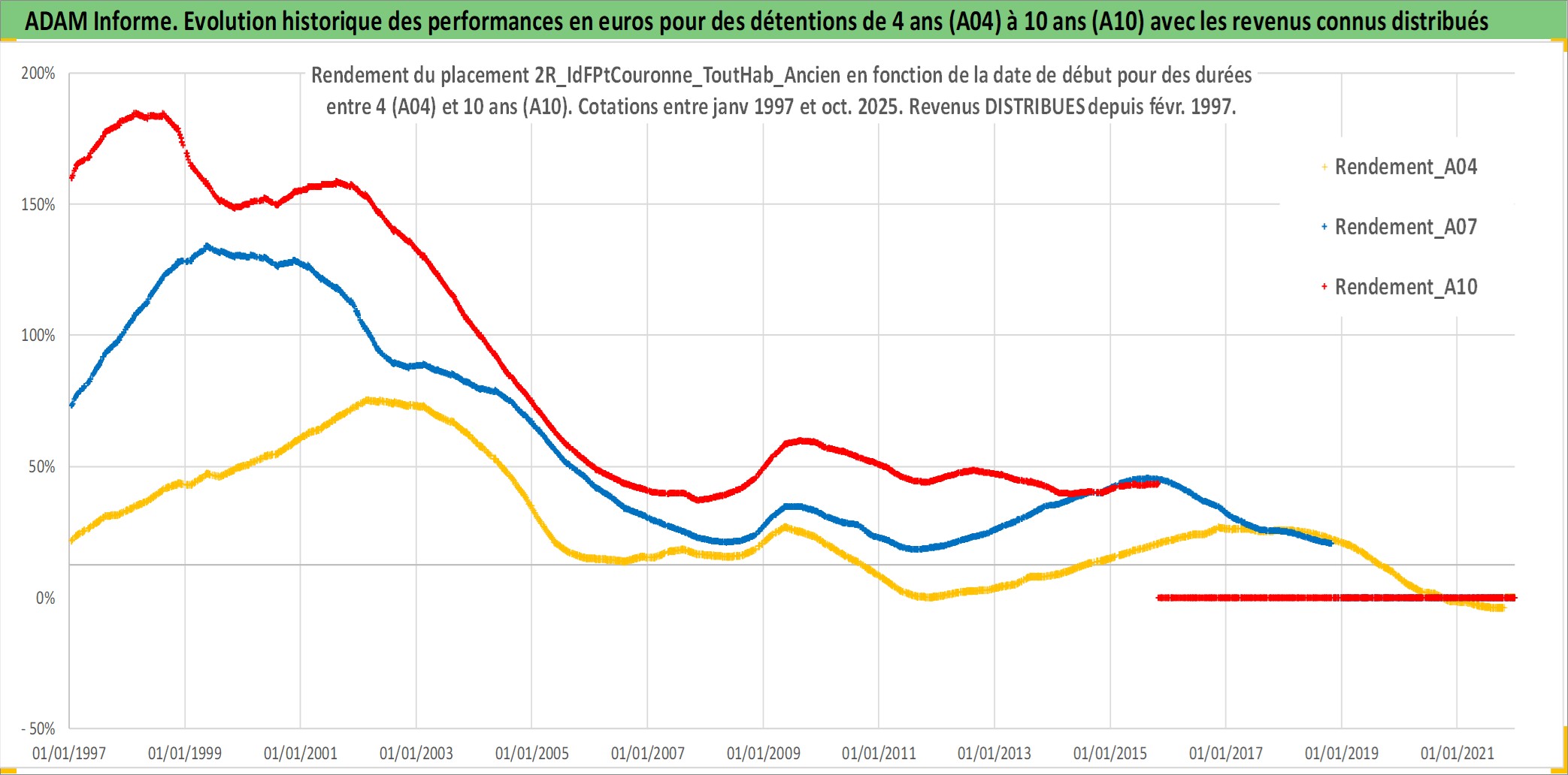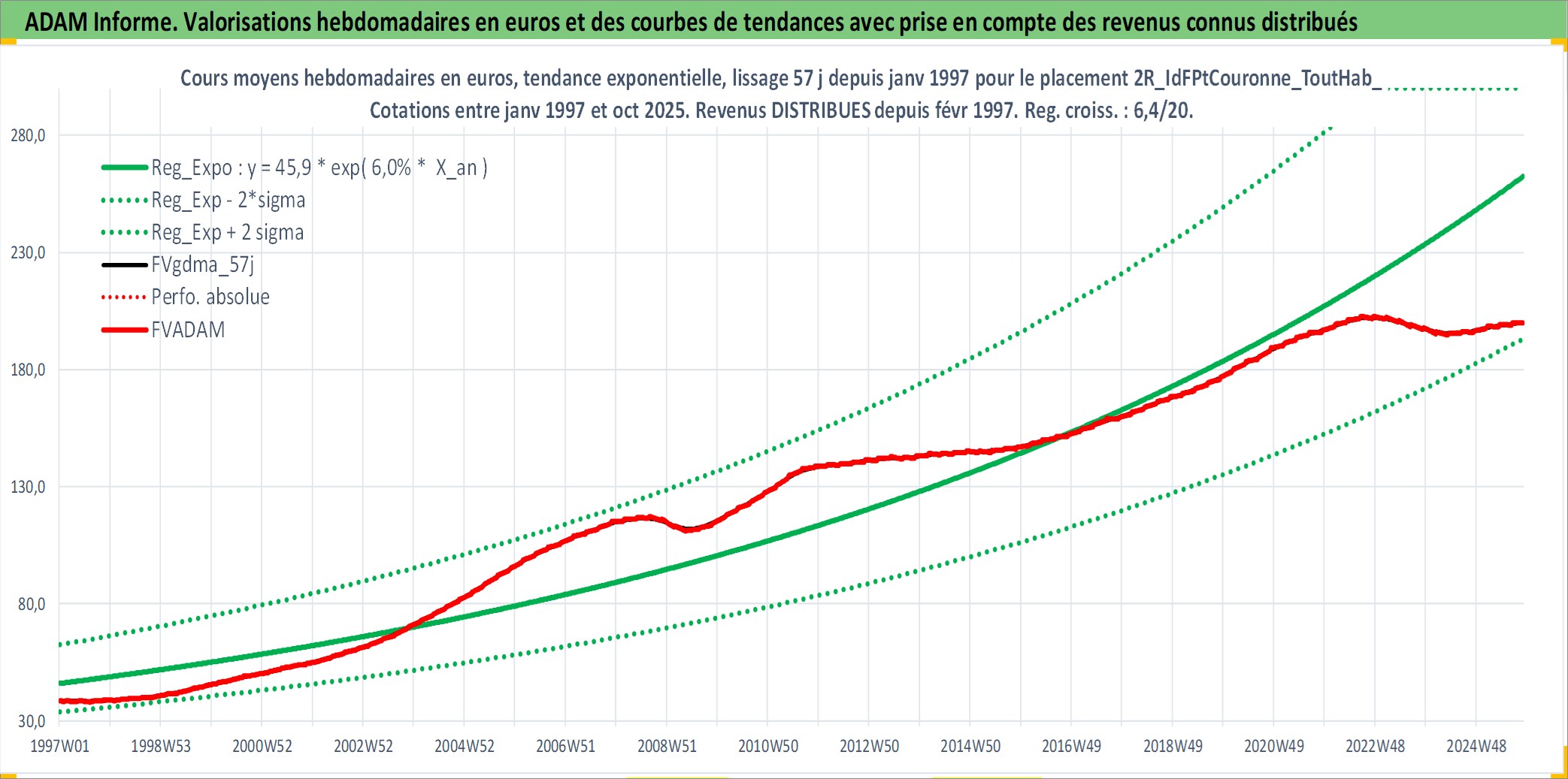 Site dédié aux investisseursPage dédiée sur site financeAnalyse des valorisations hebdomadaires de l'actif 2R_IdFPtCouronne_ToutHab_Ancien. Cet actif est cote en EUR. Les valorisations couvrent les semaines 1997W01 a 2025W44. Les loyers de cet actif immobilier sont pris egaux a 3,33% annuels de la valeur venale du logement.