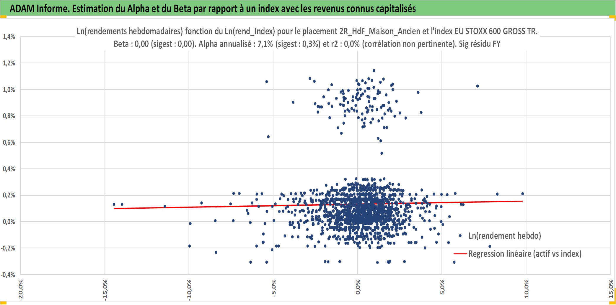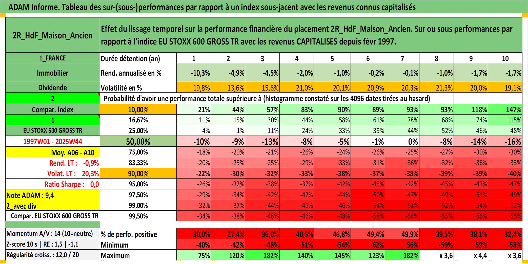 Site dédié aux investisseursPage dédiée sur site financeAnalyse des valorisations hebdomadaires de l'actif 2R_HdF_Maison_Ancien. Cet actif est cote en EUR. Les valorisations couvrent les semaines 1997W01 a 2025W44. Les loyers de cet actif immobilier sont pris egaux a 3,33% annuels de la valeur venale du logement.