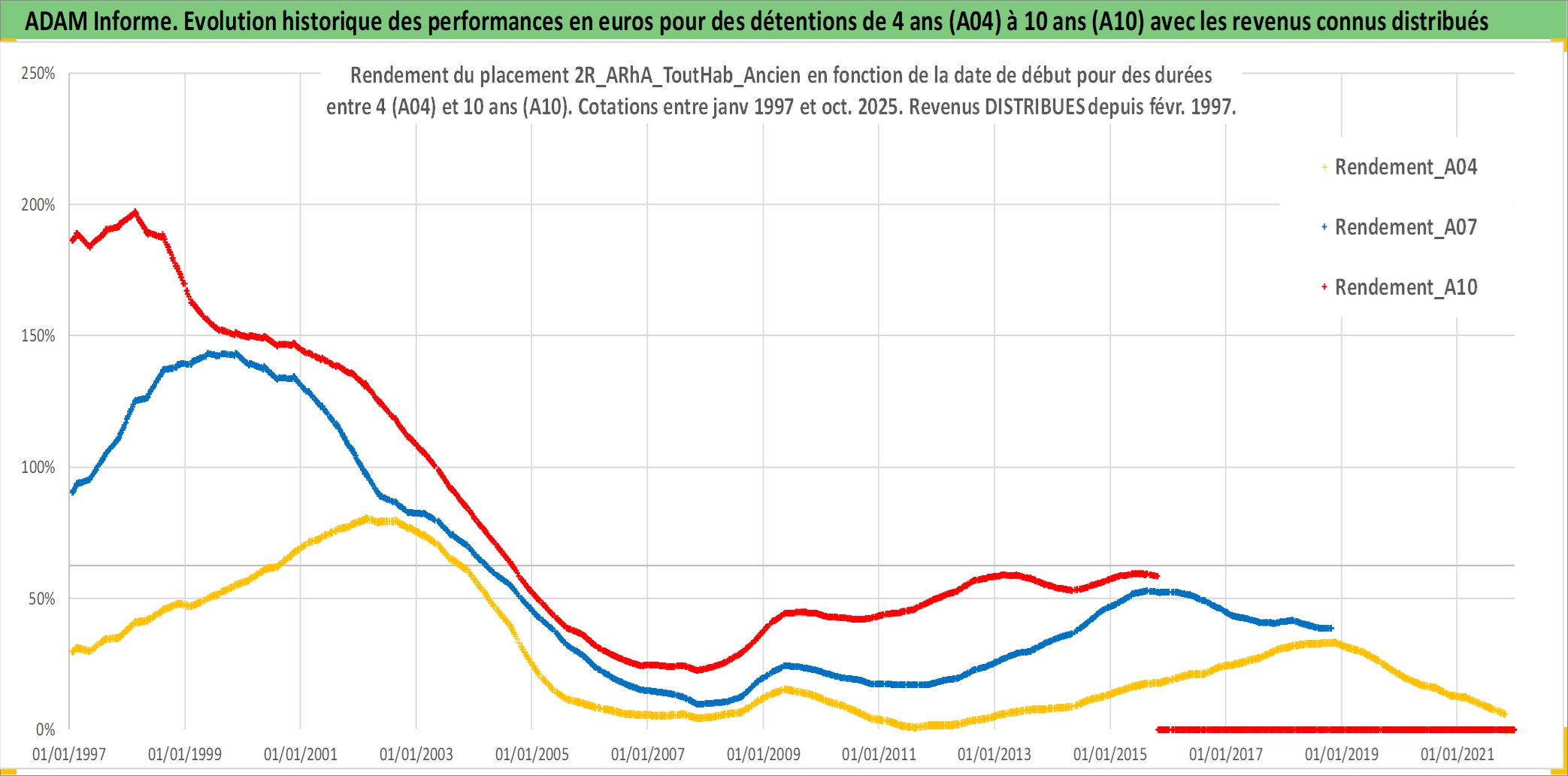 Site dédié aux investisseursPage dédiée sur site financeAnalyse des valorisations hebdomadaires de l'actif 2R_ARhA_ToutHab_Ancien. Cet actif est cote en EUR. Les valorisations couvrent les semaines 1997W01 a 2025W44. Les loyers de cet actif immobilier sont pris egaux a 3,33% annuels de la valeur venale du logement.