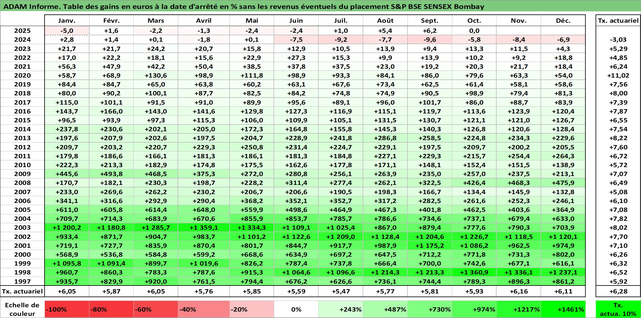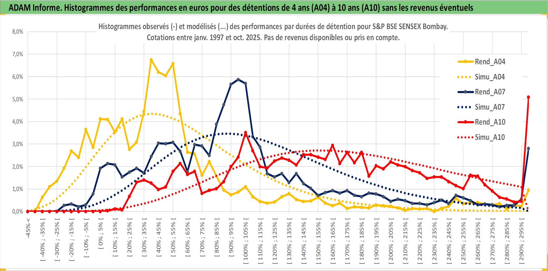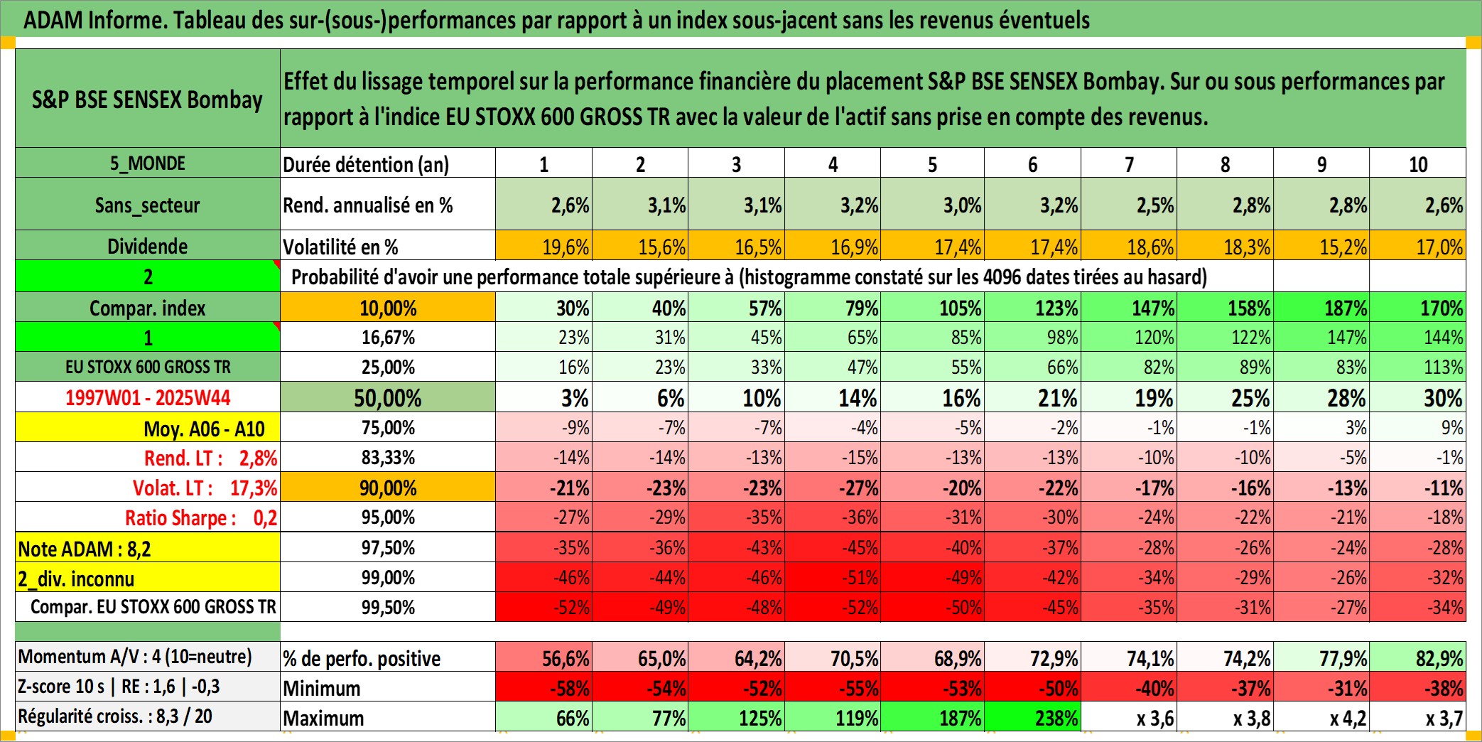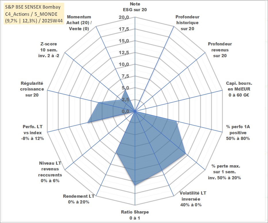 Site dédié aux investisseursPage dédiée sur site financeAnalyse des valorisations hebdomadaires de l'actif S&P BSE SENSEX Bombay. Cet actif est cote en INR. Les valorisations sont en contrevaleur EURO et couvrent les semaines 1997W01 a 2025W44. Les revenus de cet actif financier ne sont pas connus car non existants ou non disponibles sur le site Yahoo Finance. La note ESG de cet actif n'est pas connue.