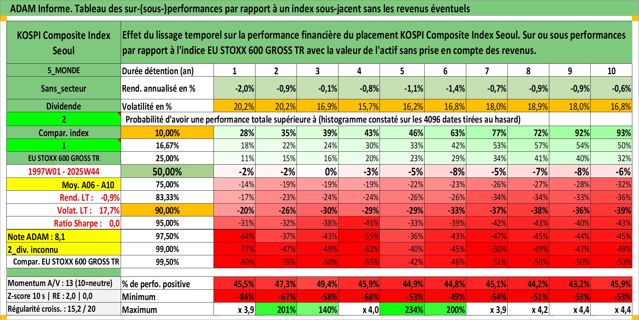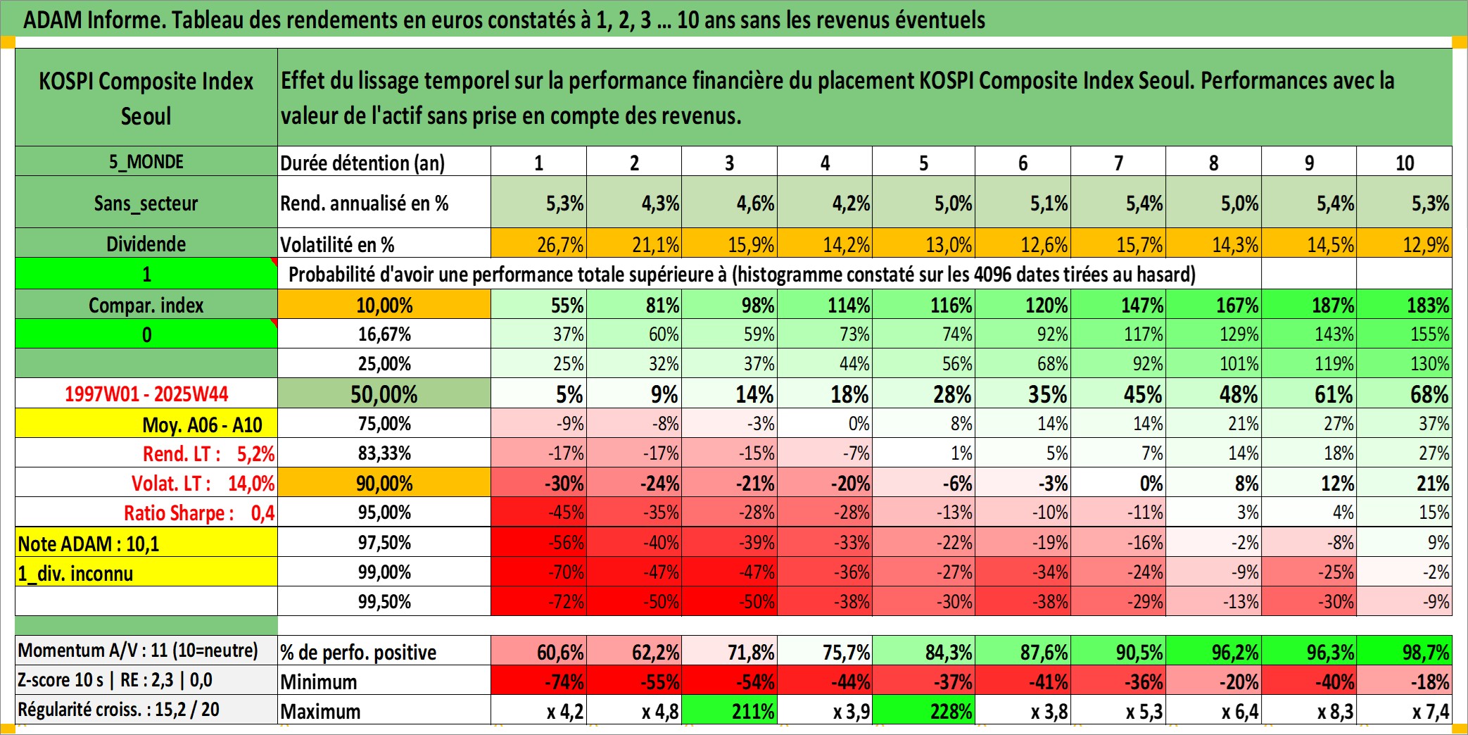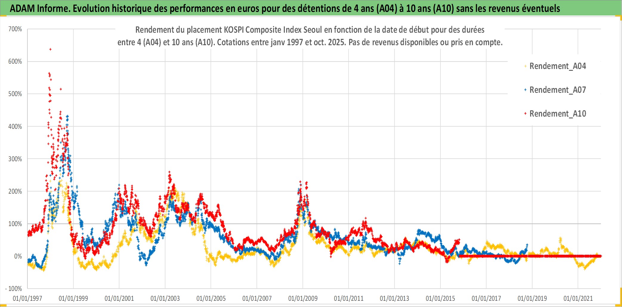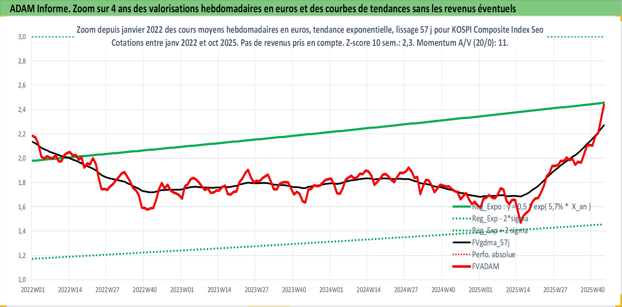 Site dédié aux investisseursPage dédiée sur site financeAnalyse des valorisations hebdomadaires de l'actif KOSPI Composite Index Seoul. Cet actif est cote en KRW. Les valorisations sont en contrevaleur EURO et couvrent les semaines 1997W01 a 2025W44. Les revenus de cet actif financier ne sont pas connus car non existants ou non disponibles sur le site Yahoo Finance. La note ESG de cet actif n'est pas connue.