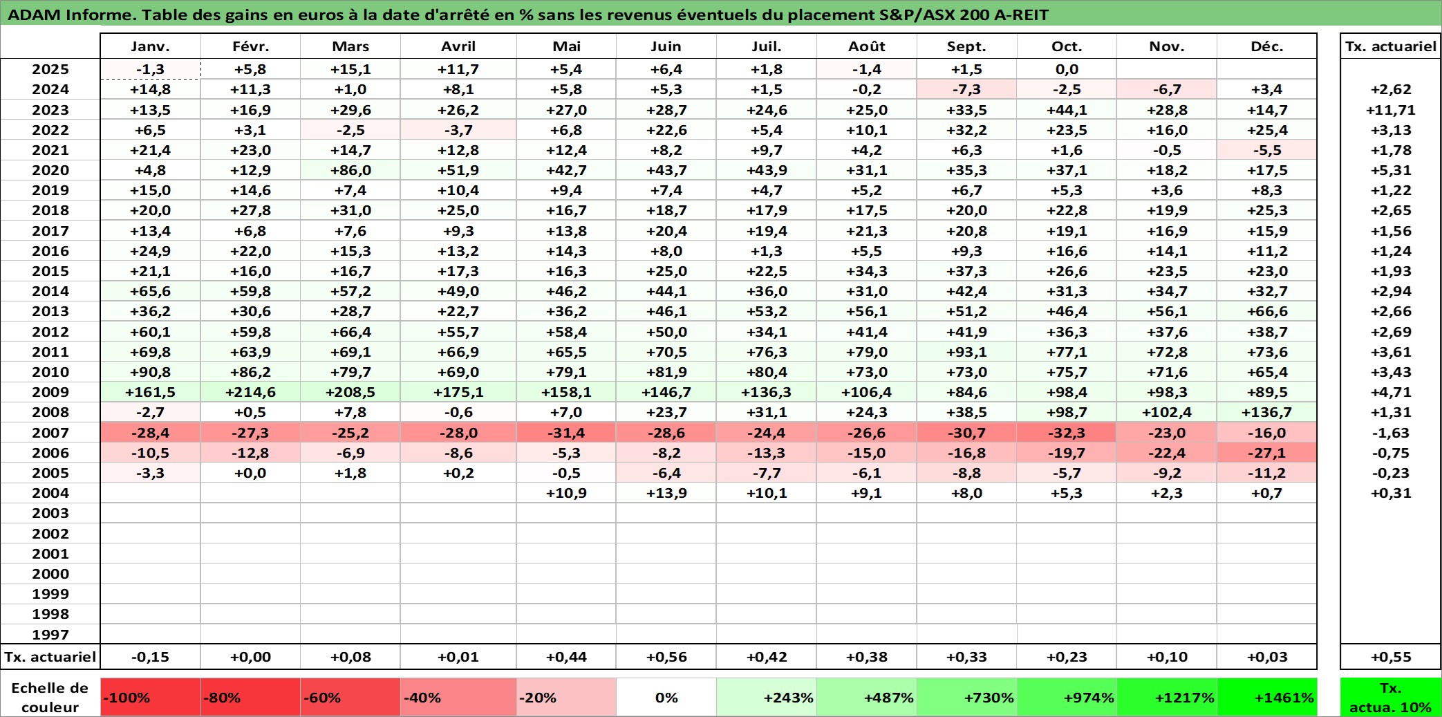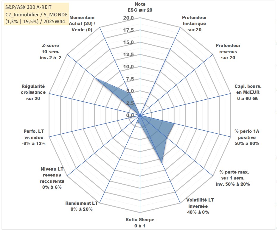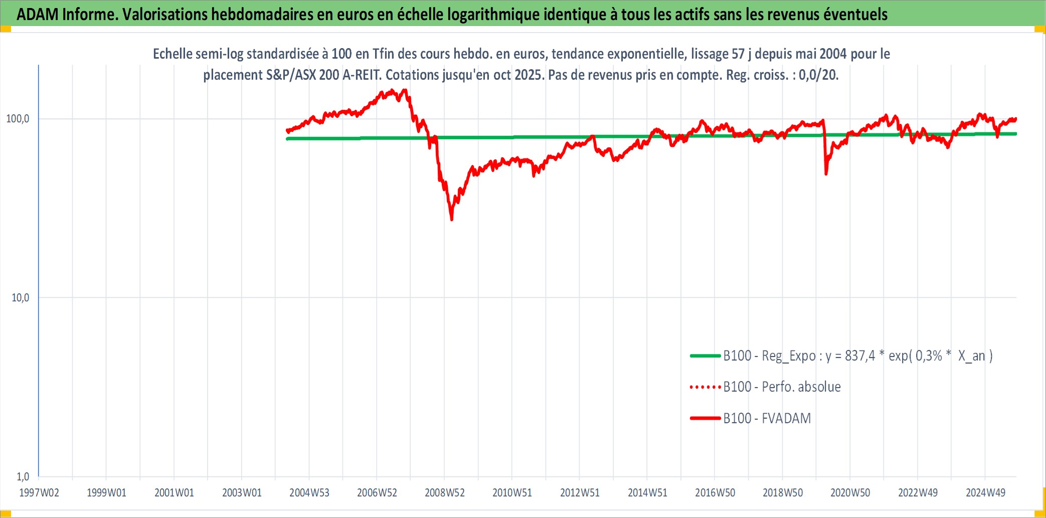Site dédié aux investisseursPage dédiée sur site financeAnalyse des valorisations hebdomadaires de l'actif S&P/ASX 200 A-REIT. Cet actif est cote en AUD. Les valorisations sont en contrevaleur EURO et couvrent les semaines 2004W19 a 2025W44. Les revenus de cet actif financier ne sont pas connus car non existants ou non disponibles sur le site Yahoo Finance. La note ESG de cet actif n'est pas connue.