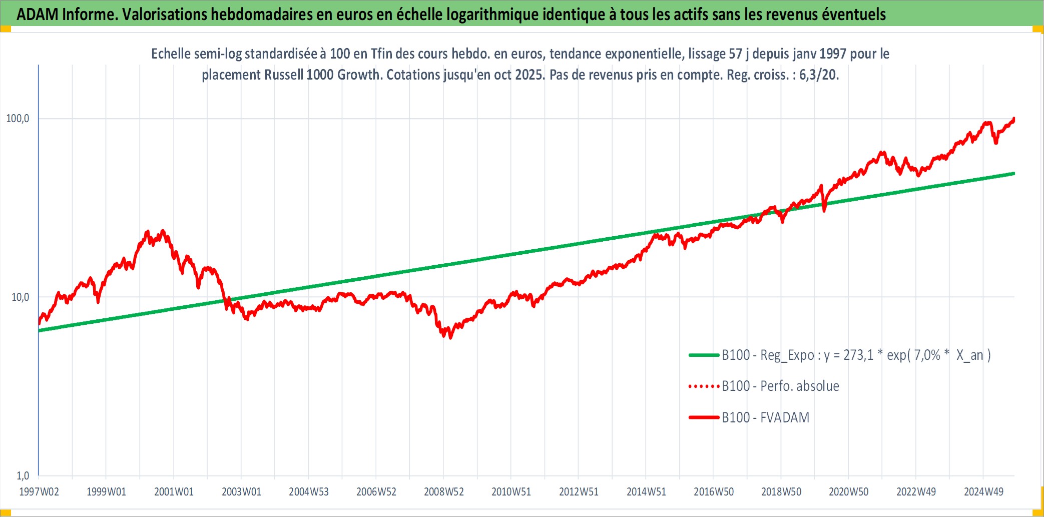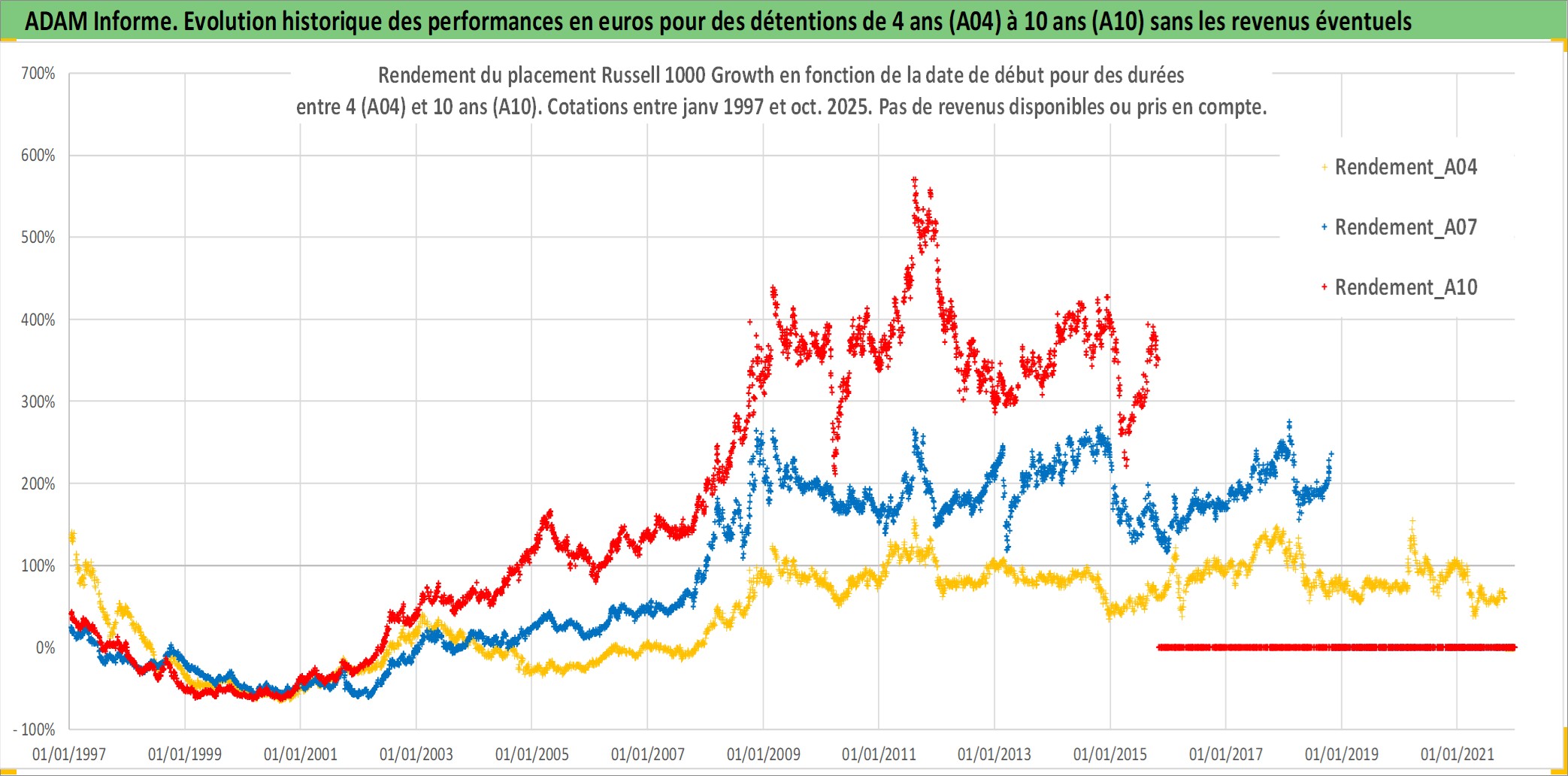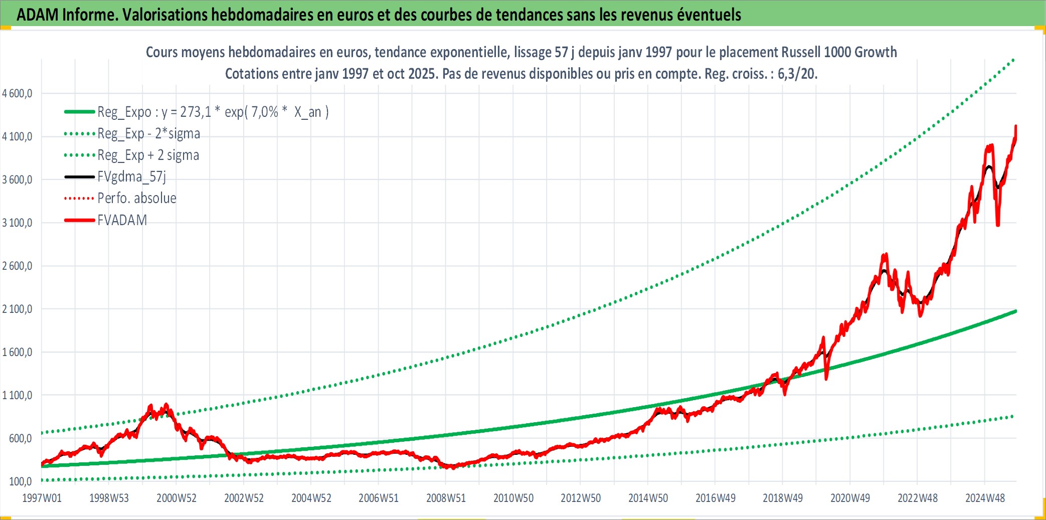 Site dédié aux investisseursPage dédiée sur site financeAnalyse des valorisations hebdomadaires de l'actif Russell 1000 Growth. Cet actif est cote en USD. Les valorisations sont en contrevaleur EURO et couvrent les semaines 1997W01 a 2025W44. Les revenus de cet actif financier ne sont pas connus car non existants ou non disponibles sur le site Yahoo Finance. La note ESG de cet actif n'est pas connue.