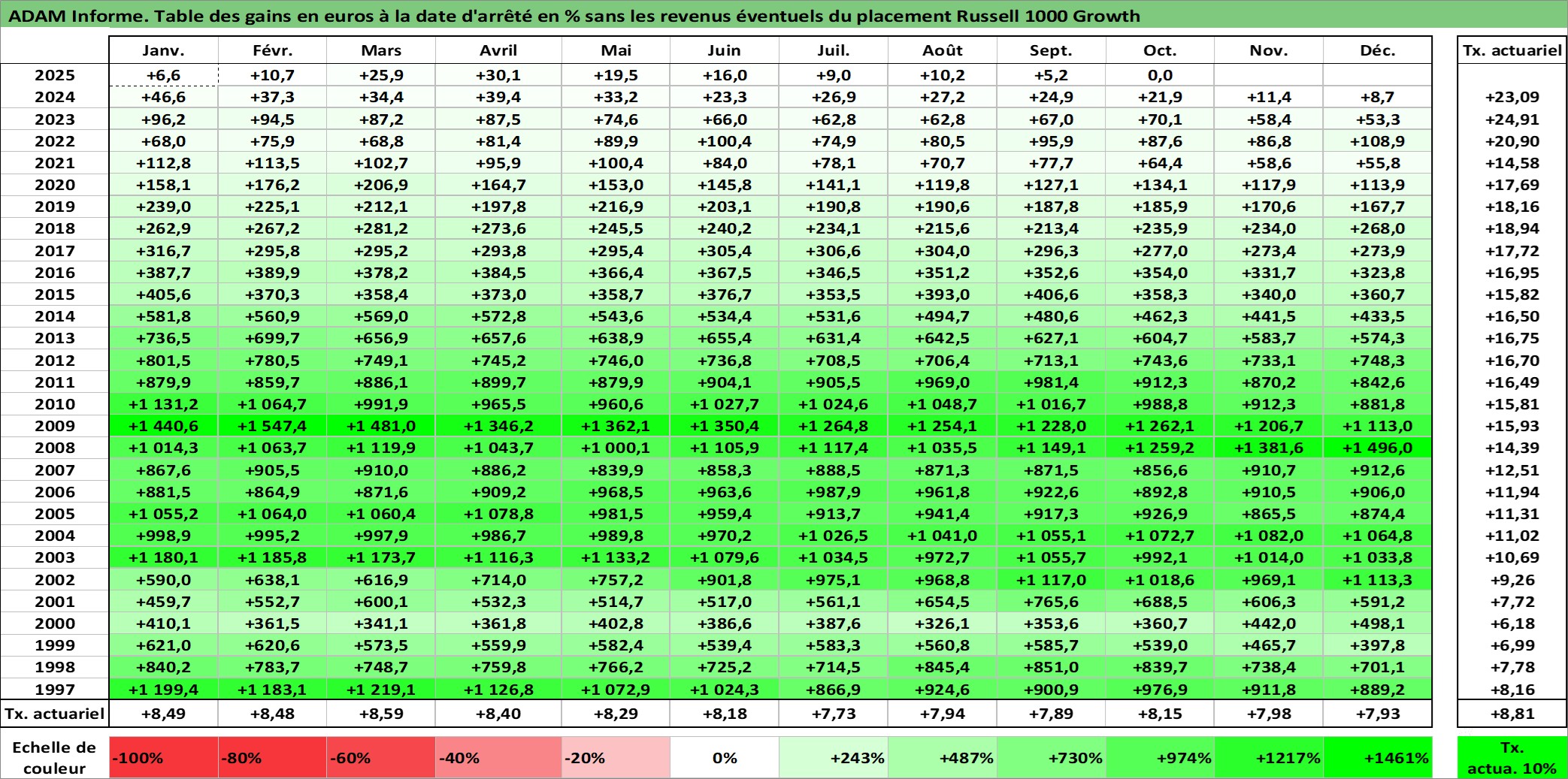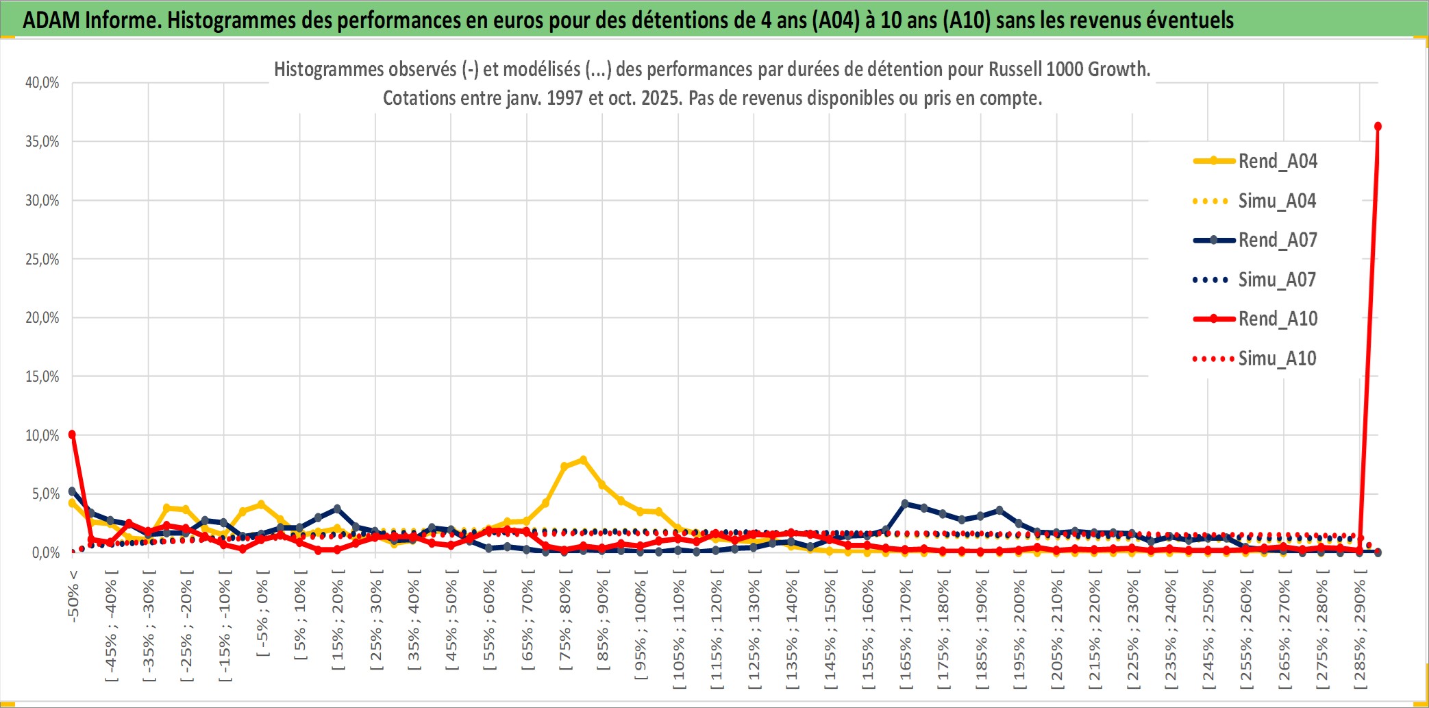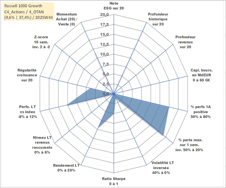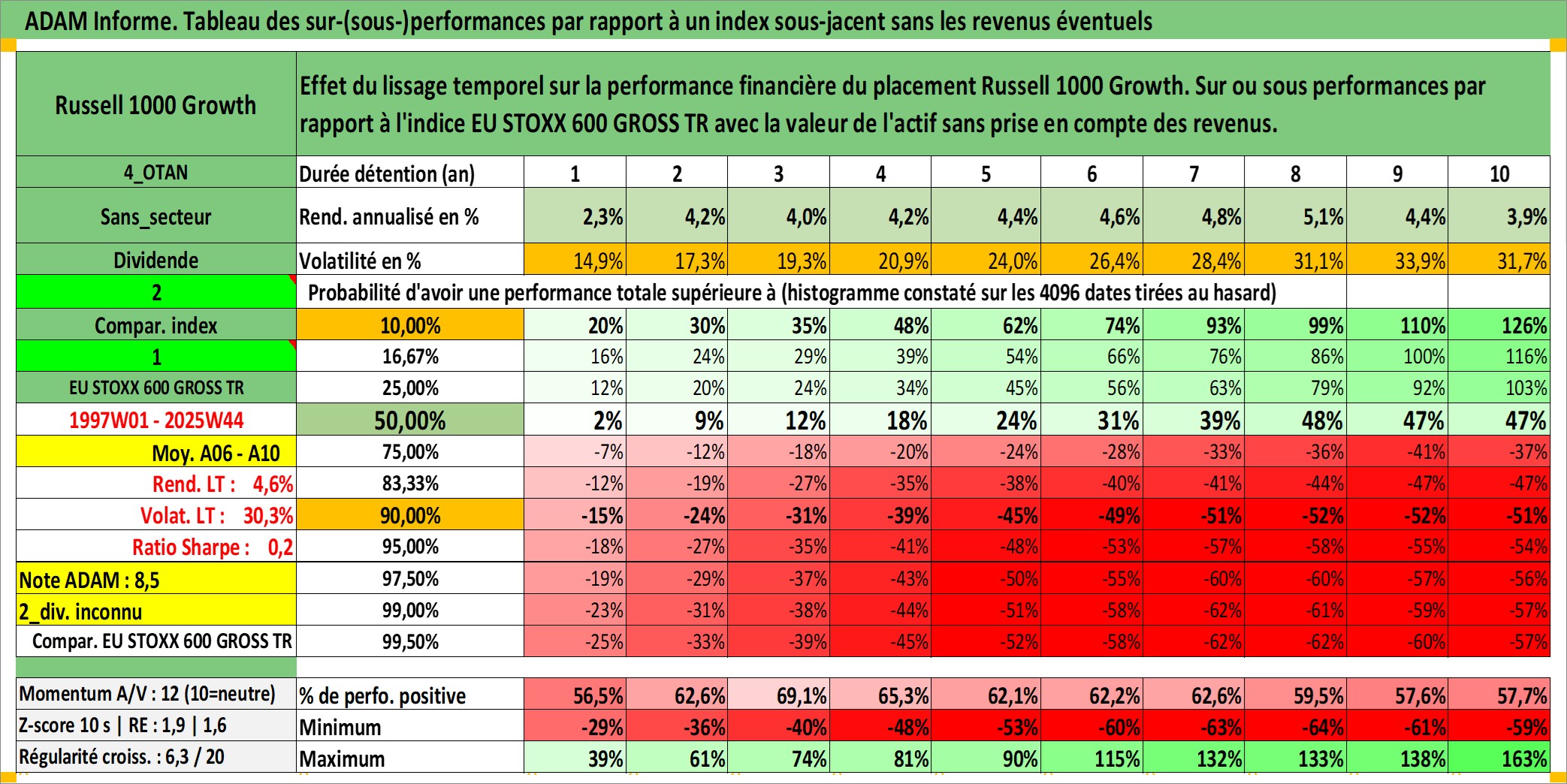 Site dédié aux investisseursPage dédiée sur site financeAnalyse des valorisations hebdomadaires de l'actif Russell 1000 Growth. Cet actif est cote en USD. Les valorisations sont en contrevaleur EURO et couvrent les semaines 1997W01 a 2025W44. Les revenus de cet actif financier ne sont pas connus car non existants ou non disponibles sur le site Yahoo Finance. La note ESG de cet actif n'est pas connue.