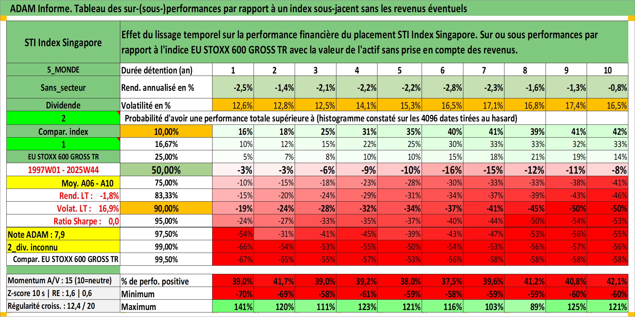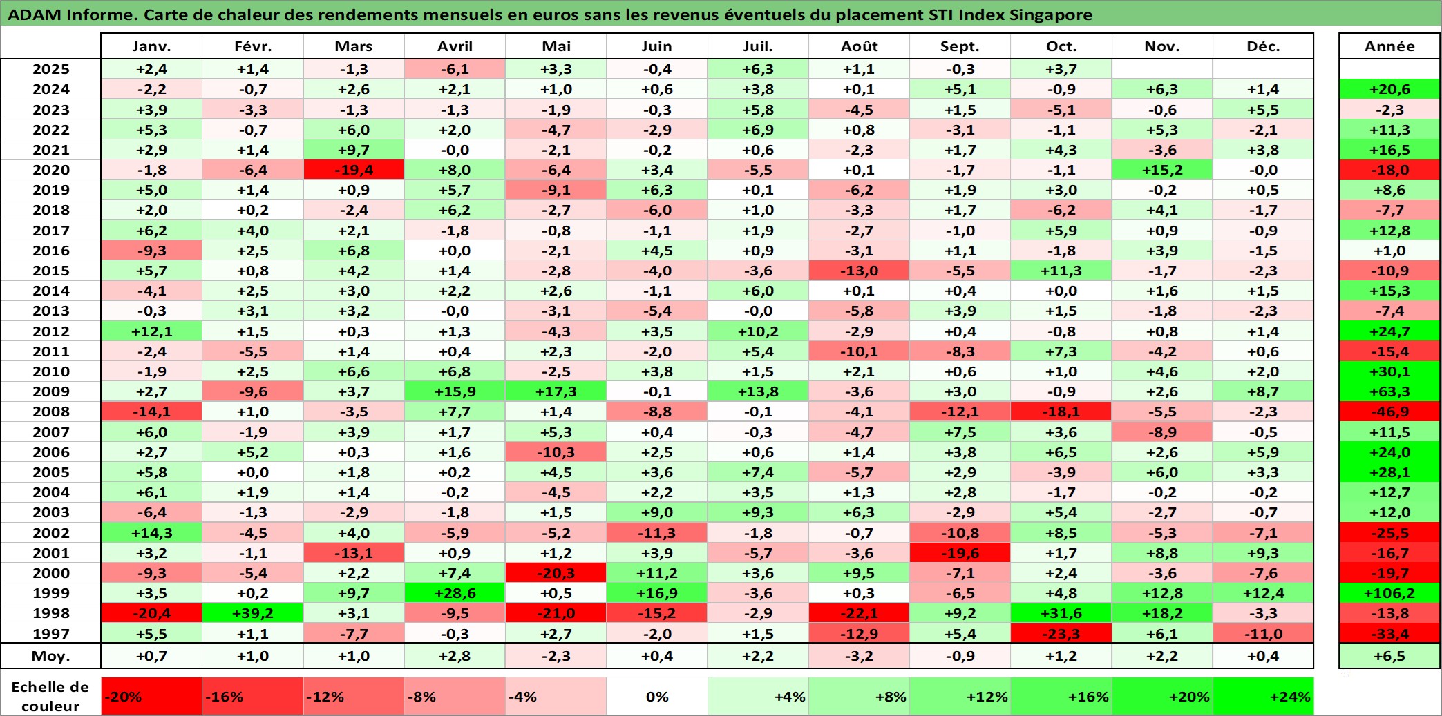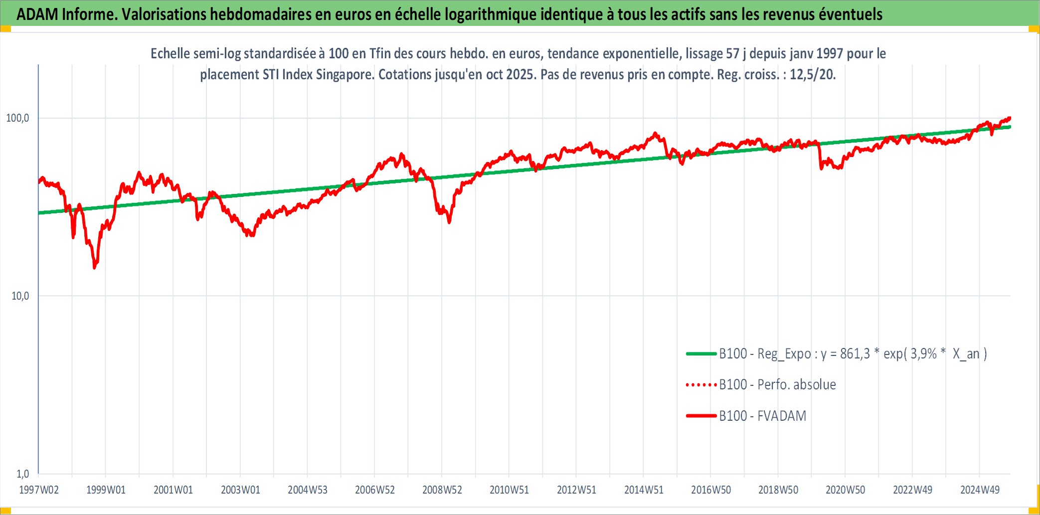 Site dédié aux investisseursPage dédiée sur site financeAnalyse des valorisations hebdomadaires de l'actif STI Index Singapore. Cet actif est cote en SGD. Les valorisations sont en contrevaleur EURO et couvrent les semaines 1997W01 a 2025W44. Les revenus de cet actif financier ne sont pas connus car non existants ou non disponibles sur le site Yahoo Finance. La note ESG de cet actif n'est pas connue.