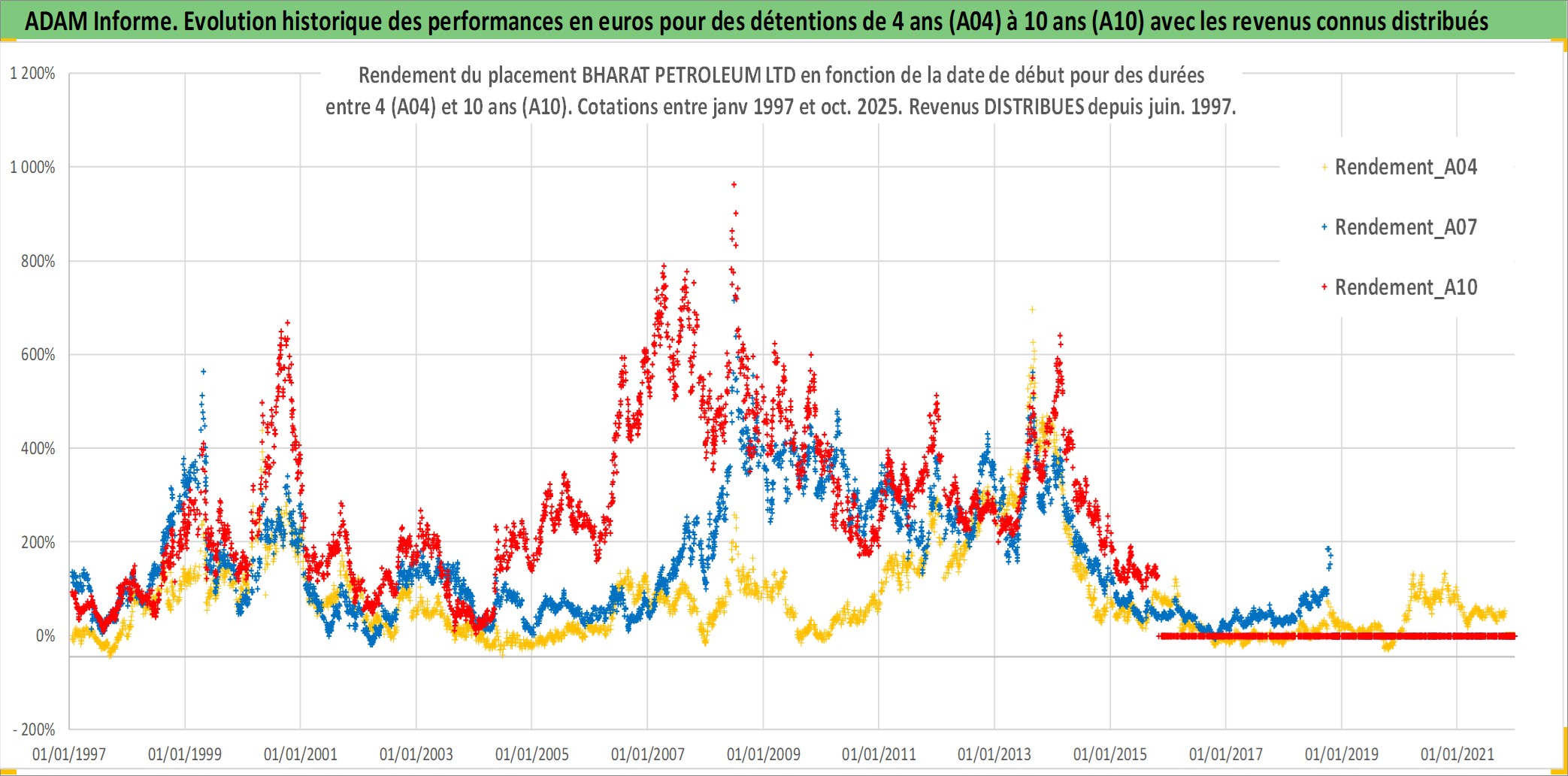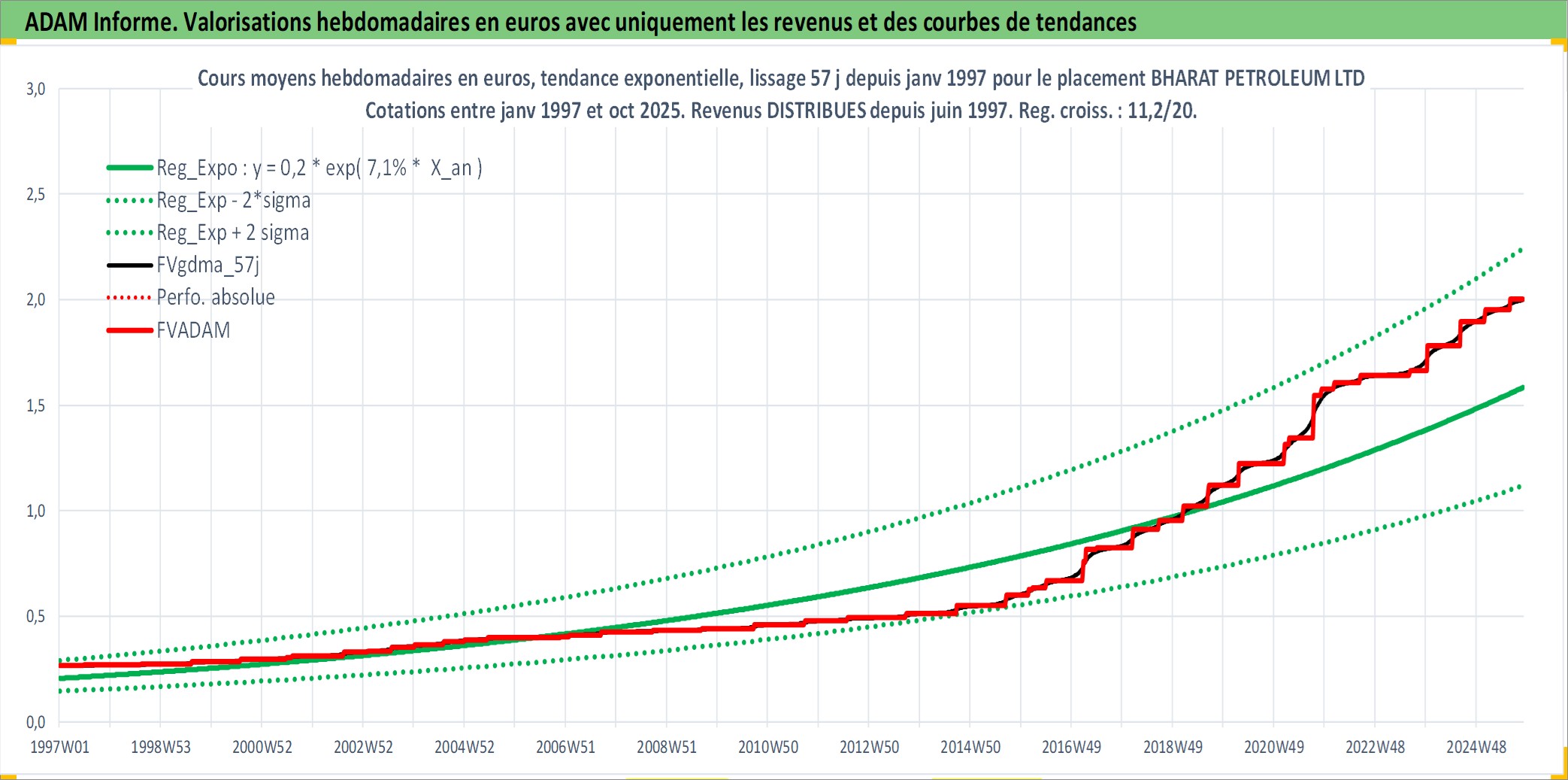 Site dédié aux investisseursPage dédiée sur site financeAnalyse des valorisations hebdomadaires de l'action BHARAT PETROLEUM LTD. Cet actif est cote en INR. Les valorisations sont en contrevaleur EURO et couvrent les semaines 1997W01 a 2025W44. Les revenus de cet actif financier sont pris en compte depuis la semaine 1997W26. La note globale ESG de cet actif est estimee a 3.0 (apres rebasage entre 0 et 20).