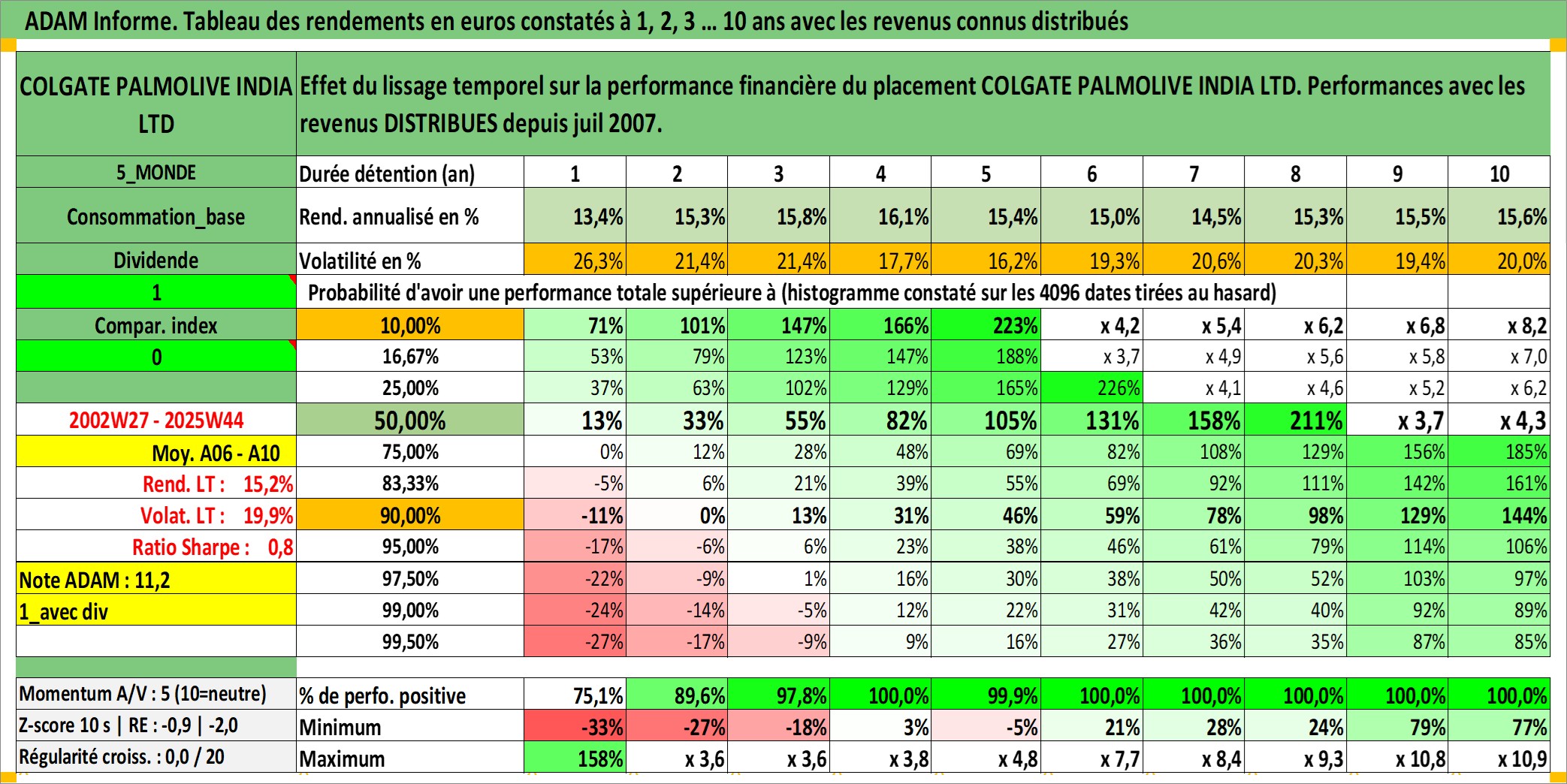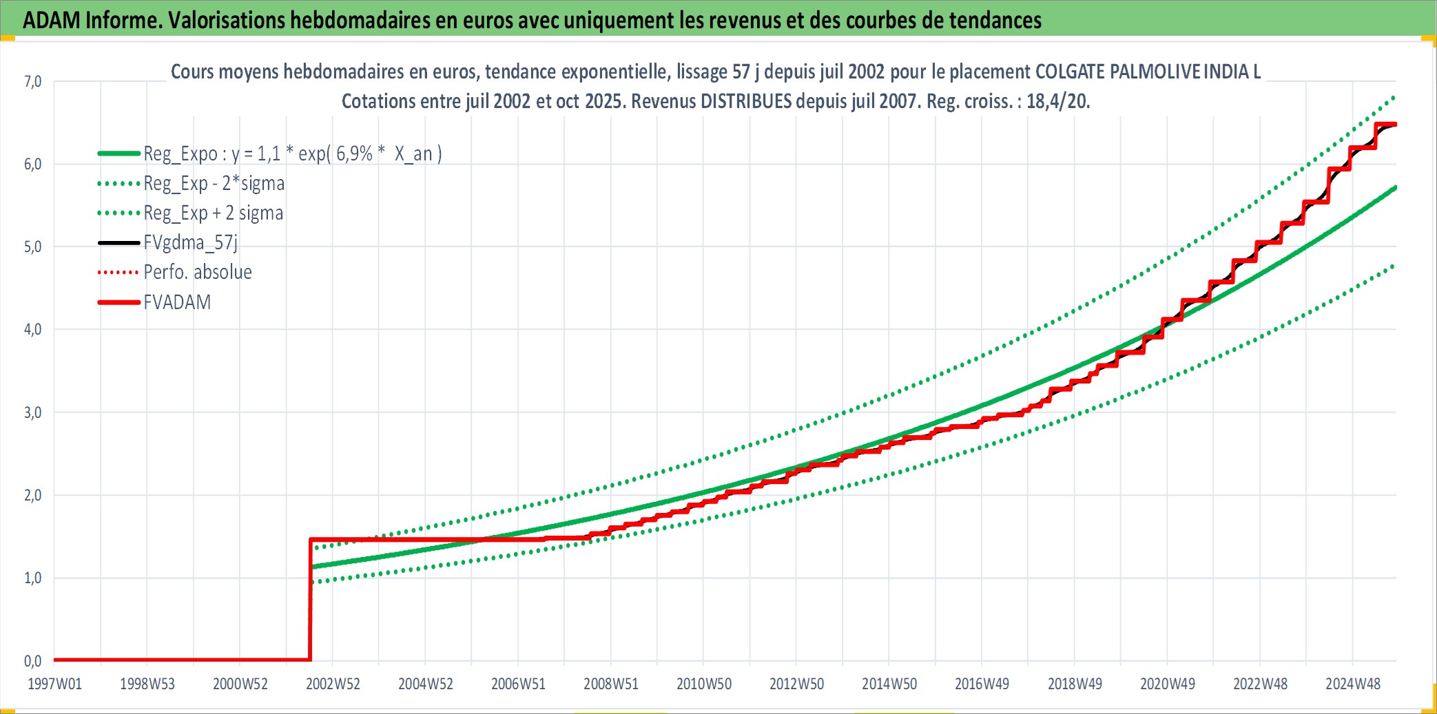 Site dédié aux investisseursPage dédiée sur site financeAnalyse des valorisations hebdomadaires de l'action COLGATE PALMOLIVE INDIA LTD. Cet actif est cote en INR. Les valorisations sont en contrevaleur EURO et couvrent les semaines 2002W27 a 2025W44. Les revenus de cet actif financier sont pris en compte depuis la semaine 2007W29. La note ESG de cet actif n'est pas connue.