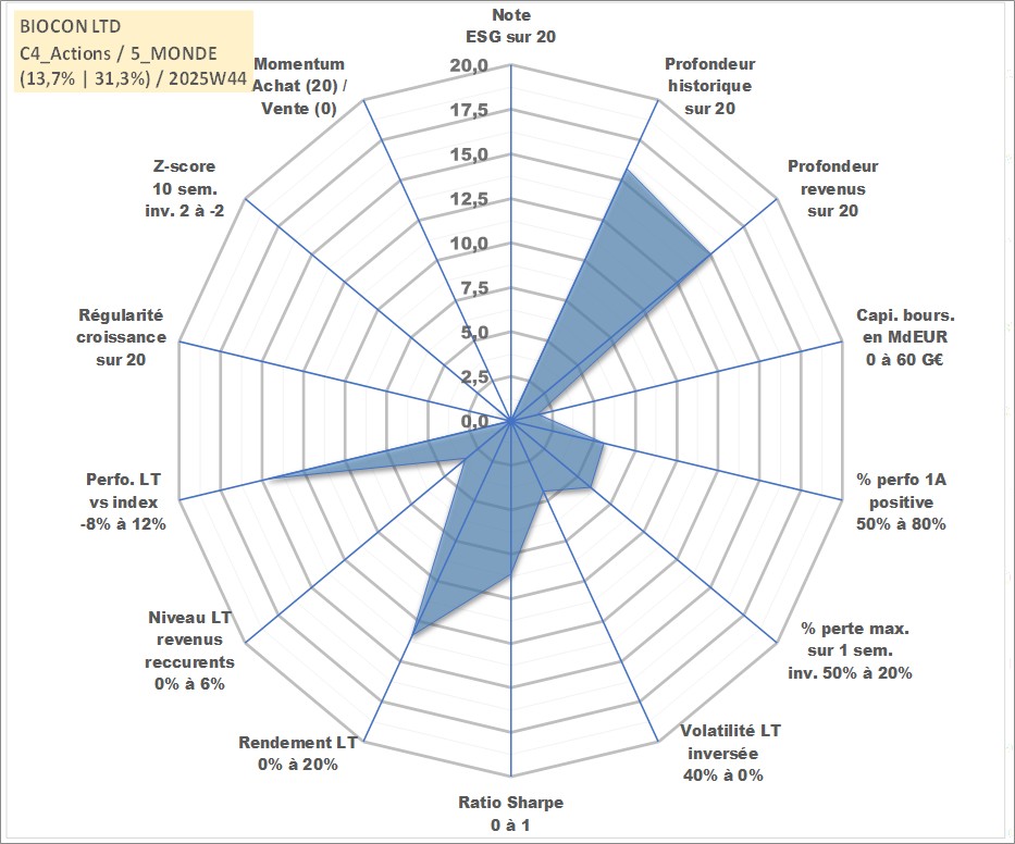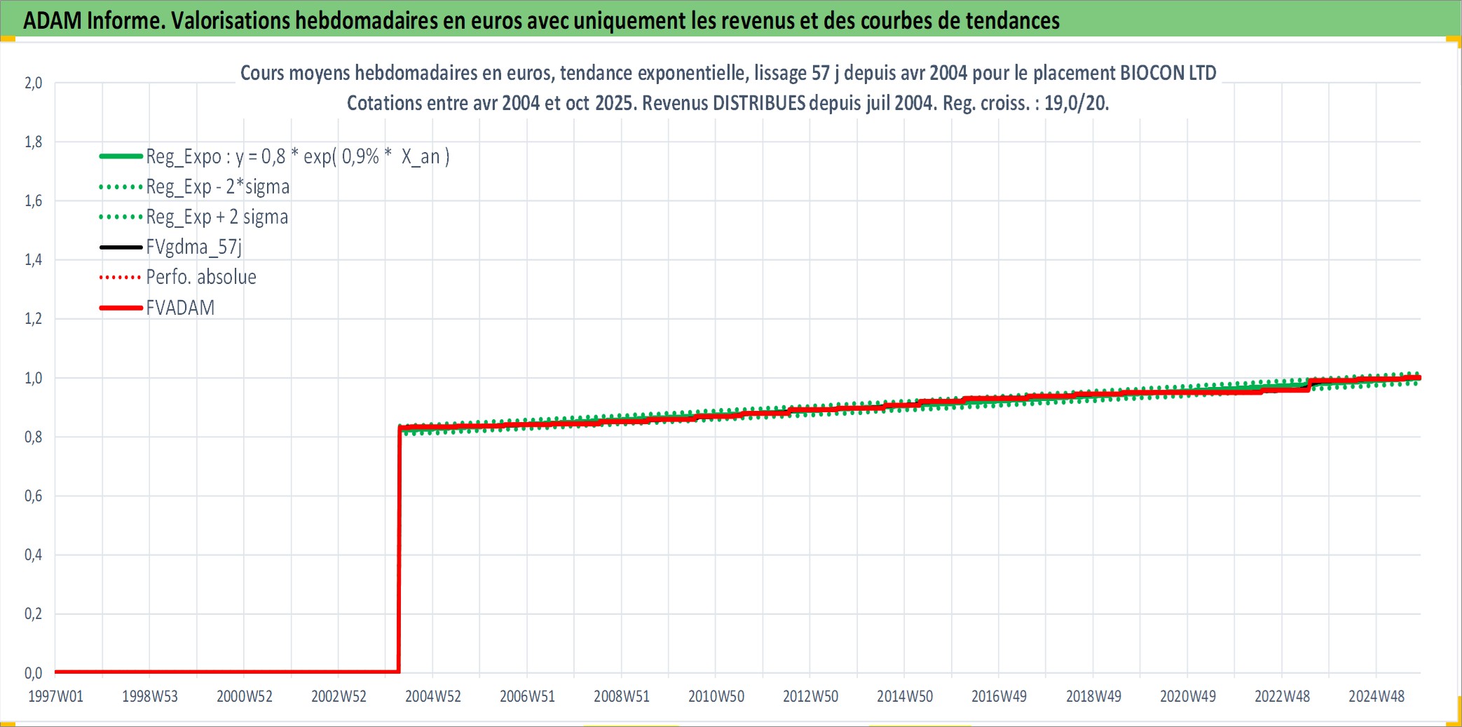 Site dédié aux investisseursPage dédiée sur site financeAnalyse des valorisations hebdomadaires de l'action BIOCON LTD. Cet actif est cote en INR. Les valorisations sont en contrevaleur EURO et couvrent les semaines 2004W15 a 2025W44. Les revenus de cet actif financier sont pris en compte depuis la semaine 2004W27. La note ESG de cet actif n'est pas connue.