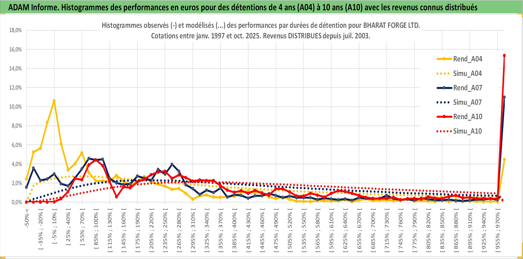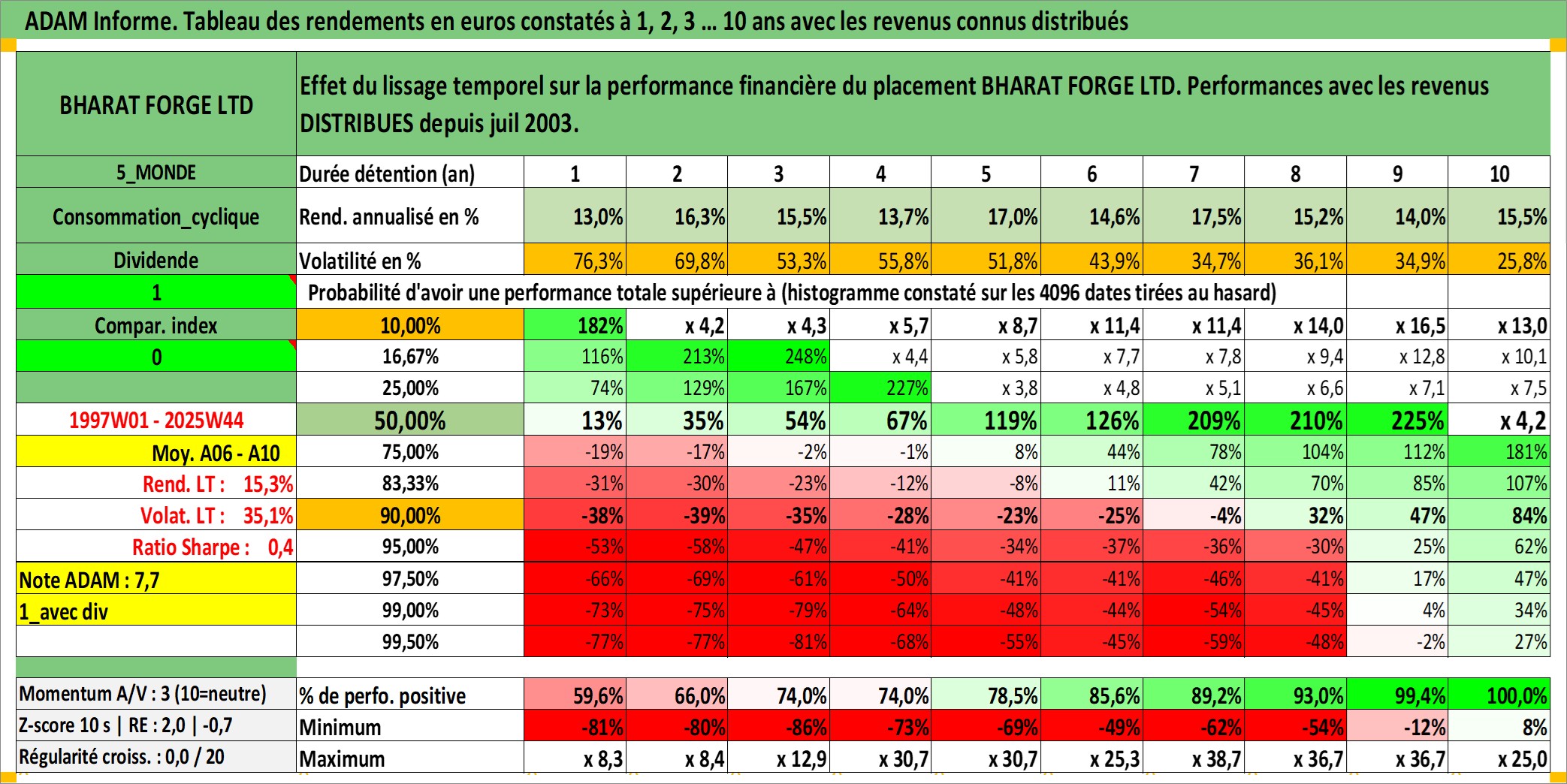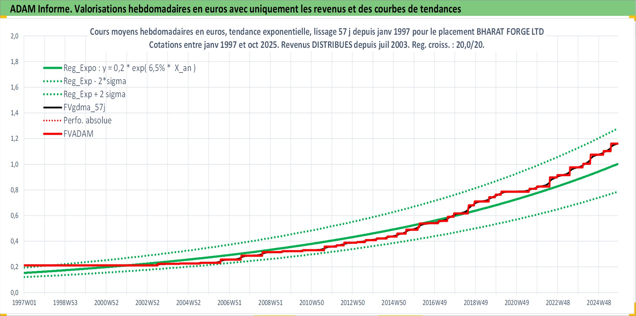 Site dédié aux investisseursPage dédiée sur site financeAnalyse des valorisations hebdomadaires de l'action BHARAT FORGE LTD. Cet actif est cote en INR. Les valorisations sont en contrevaleur EURO et couvrent les semaines 1997W01 a 2025W44. Les revenus de cet actif financier sont pris en compte depuis la semaine 2003W27. La note ESG de cet actif n'est pas connue.