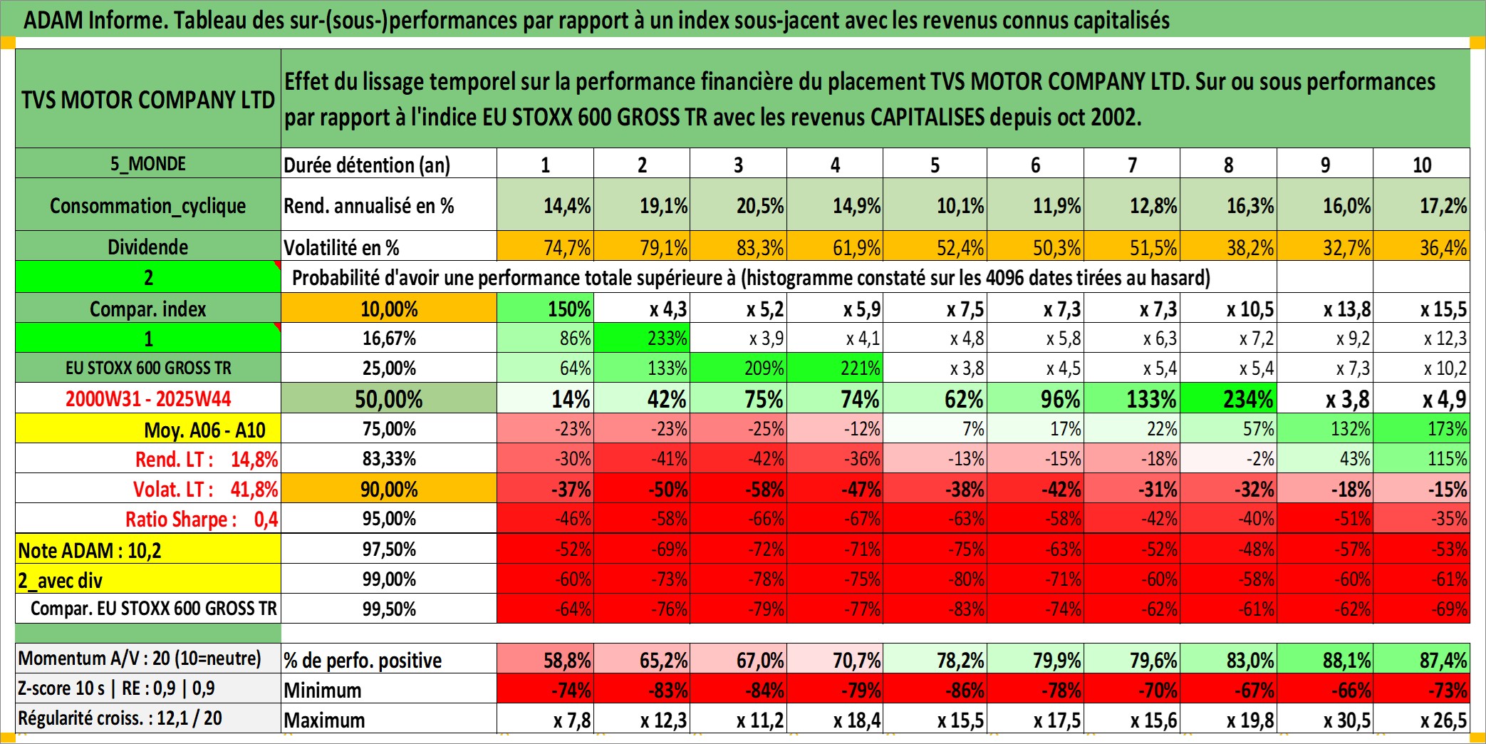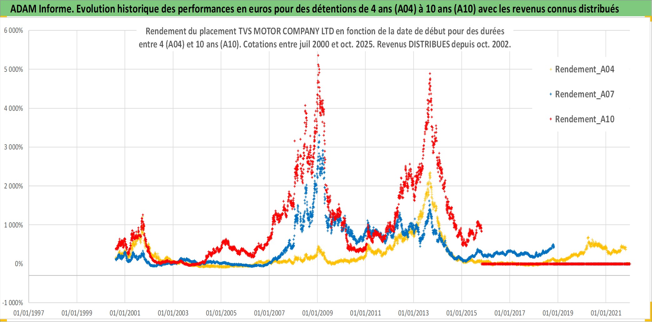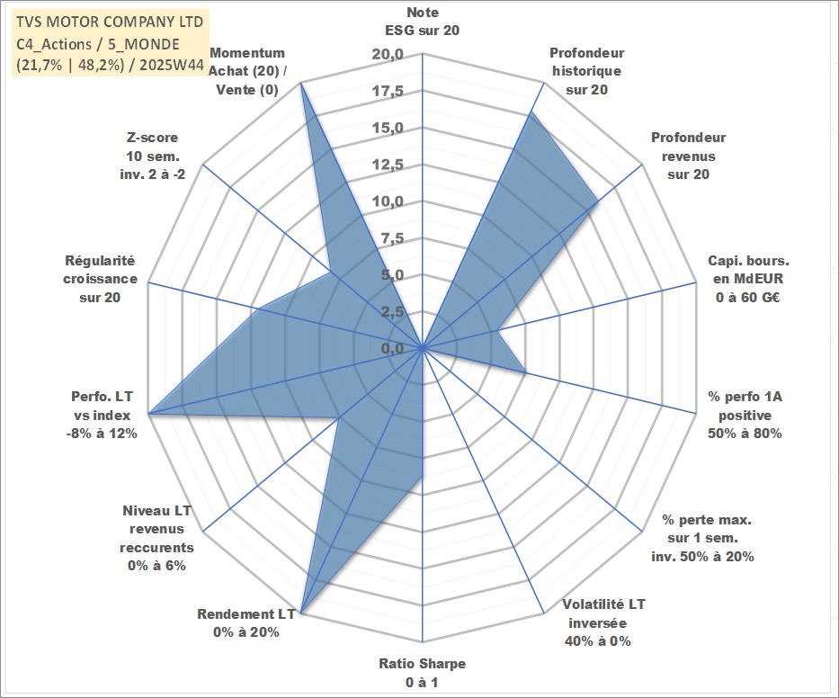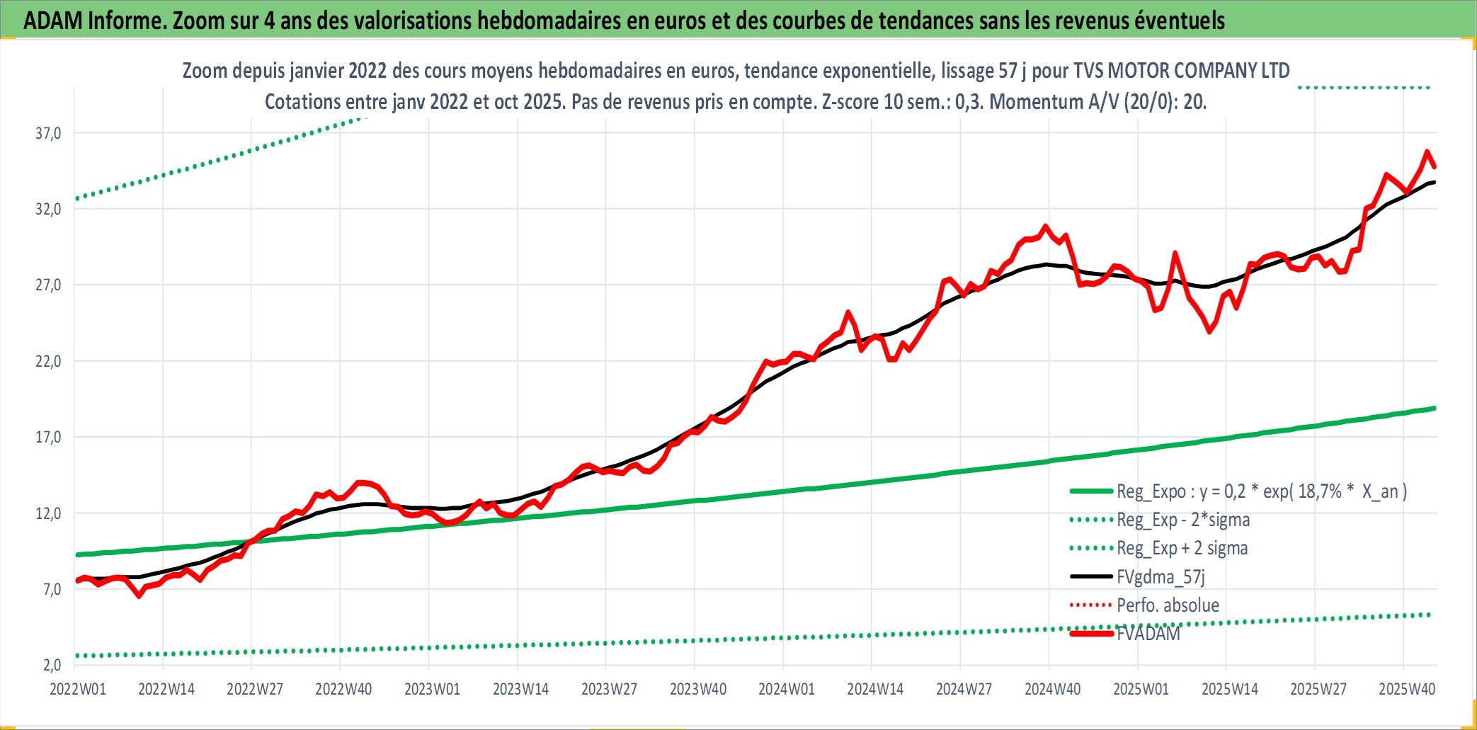 Site dédié aux investisseursPage dédiée sur site financeAnalyse des valorisations hebdomadaires de l'action TVS MOTOR COMPANY LTD. Cet actif est cote en INR. Les valorisations sont en contrevaleur EURO et couvrent les semaines 2000W31 a 2025W44. Les revenus de cet actif financier sont pris en compte depuis la semaine 2002W43. La note ESG de cet actif n'est pas connue.