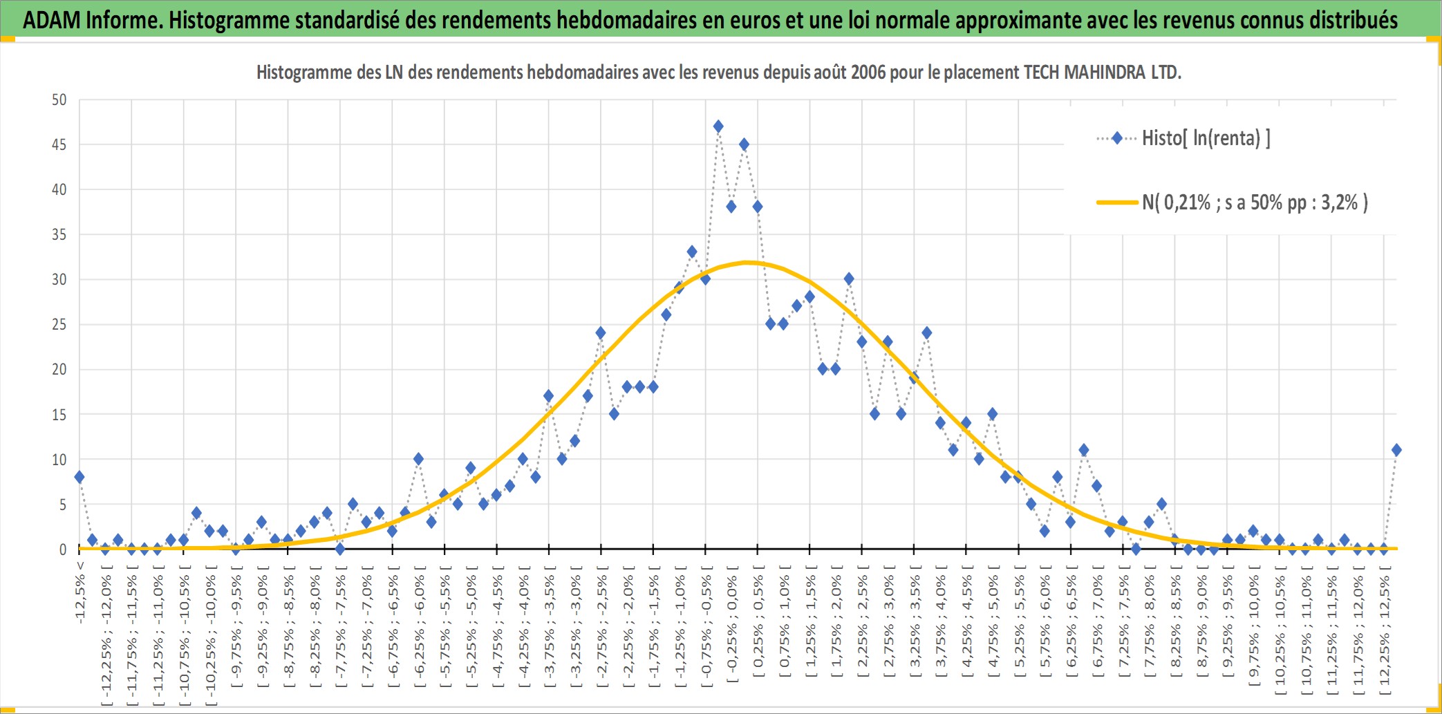 Site dédié aux investisseursPage dédiée sur site financeAnalyse des valorisations hebdomadaires de l'action TECH MAHINDRA LTD. Cet actif est cote en INR. Les valorisations sont en contrevaleur EURO et couvrent les semaines 2006W35 a 2025W44. Les revenus de cet actif financier sont pris en compte depuis la semaine 2007W12. La note globale ESG de cet actif est estimee a 15.0 (apres rebasage entre 0 et 20).